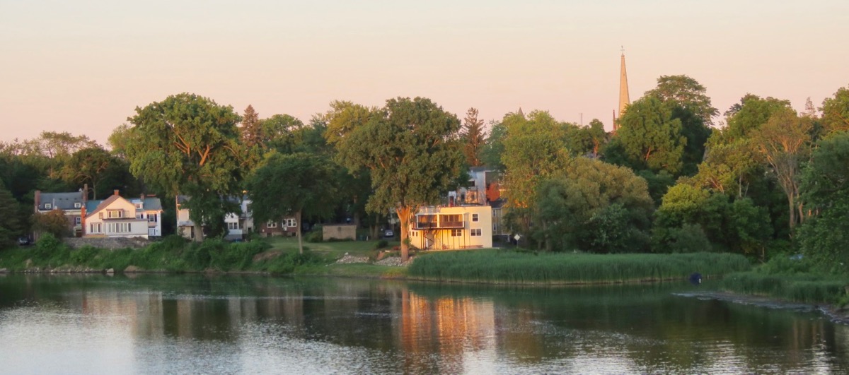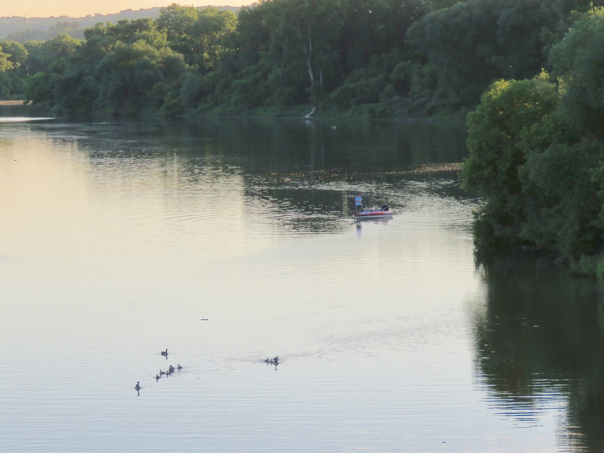 Finally, I snapped quite a few shots that evening from the County’s Gateway Park, f/k/a Gateway Landing, and was surprised to see it was posted with a No Trespassing sign. (Perhaps an over-reaction to its dock being destroyed in the Jan-Feb ice jam flooding.) Its lovely gazebo was empty, but some geese ignored the signs and enjoyed the Park and riverbank.