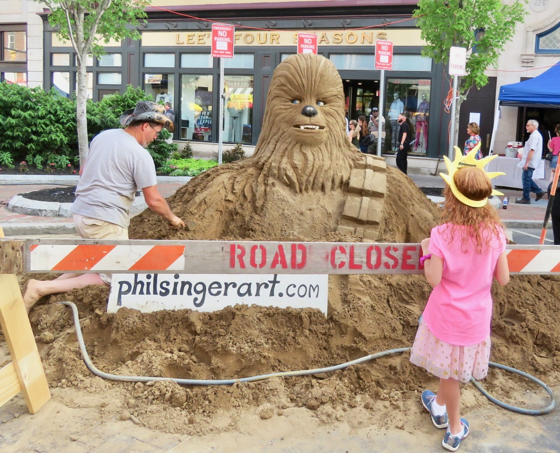 . . above: Phil Singer’s sand sculpture again got a lot of attention and smiles; Chewbacca was featured this year, and last year, he brought us stately sand version of Wonder Woman . .