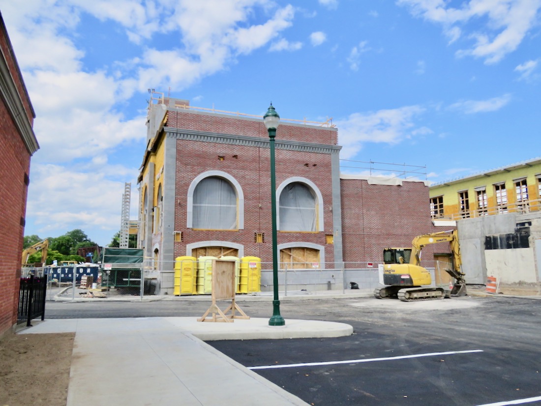 I had hope that the front façade of the Station would be fully bricked when I headed back on July 17, but that may take a few more days.