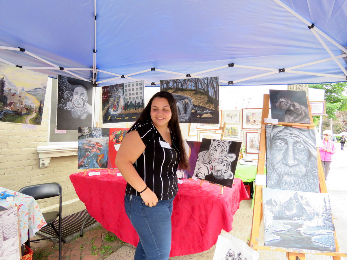 Below are a few “thumbnail” photos of two new “Youth” exhibitors, who I had the pleasure to meet at the Outdoor Art Show, and who I hope will be back often, even though their talents will clearly soon take them to a much wider audience. Janinna (in black top below) and Christina are from Mohonasen High in Rotterdam. Click on an image for a larger version.