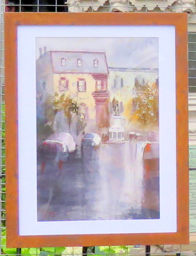 p.s. A special mea culpa to Val and Andrea Robert. After joking with them about schmoozing so much I sometimes forget to snap a photo, I did just that at their exhibit on Green Street on Saturday. To the left, you can see the Man in the Orange Shirt at the Winners Circle in 2017. Find images of many of his fine works here.