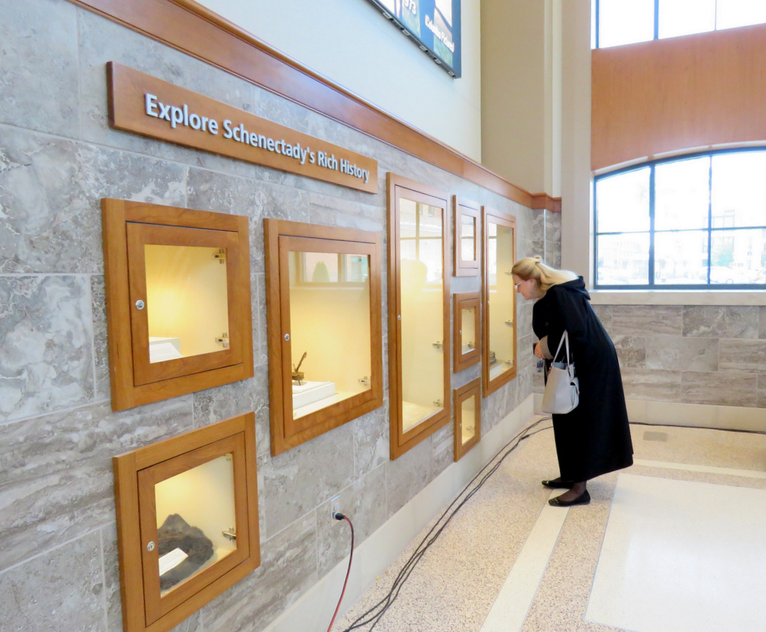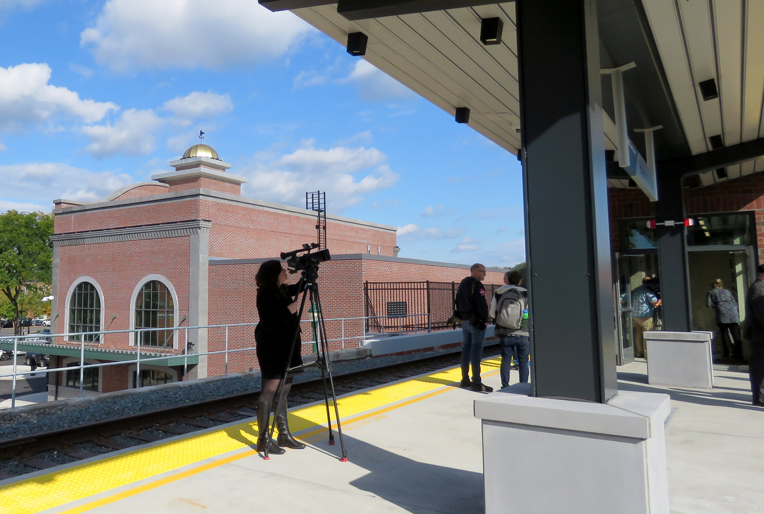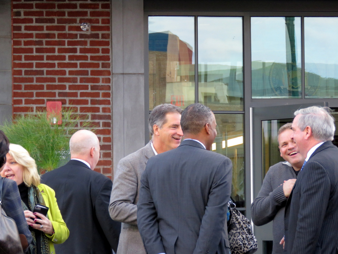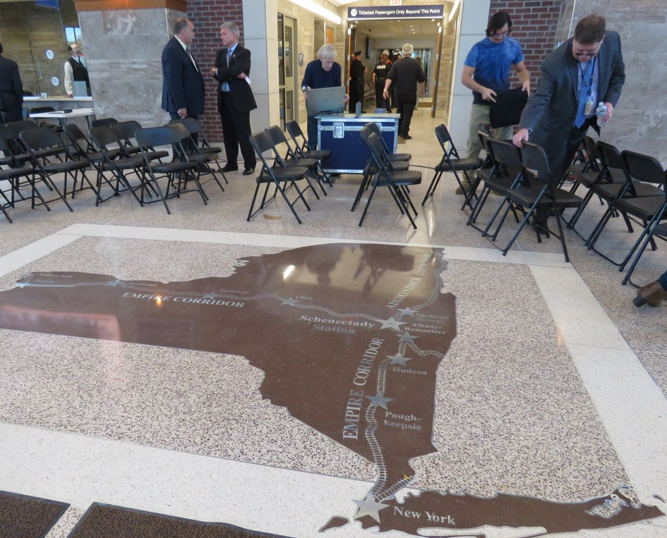 Most of the opening-day dignitaries were still there, when I arrived about 10:30 AM (Oct. 17) at the new Schenectady Train Station. The 10 AM Opening Ceremony was attended by Lt. Gov. Kathy Hochul, U.S. Rep. Paul Tonko, Mayor Gary McCarthy and many other local and state officials. See “Schenectady train station officially opens” (Daily Gazette, by Andrew Beam & Steven Cook, Oct. 17. 2018).