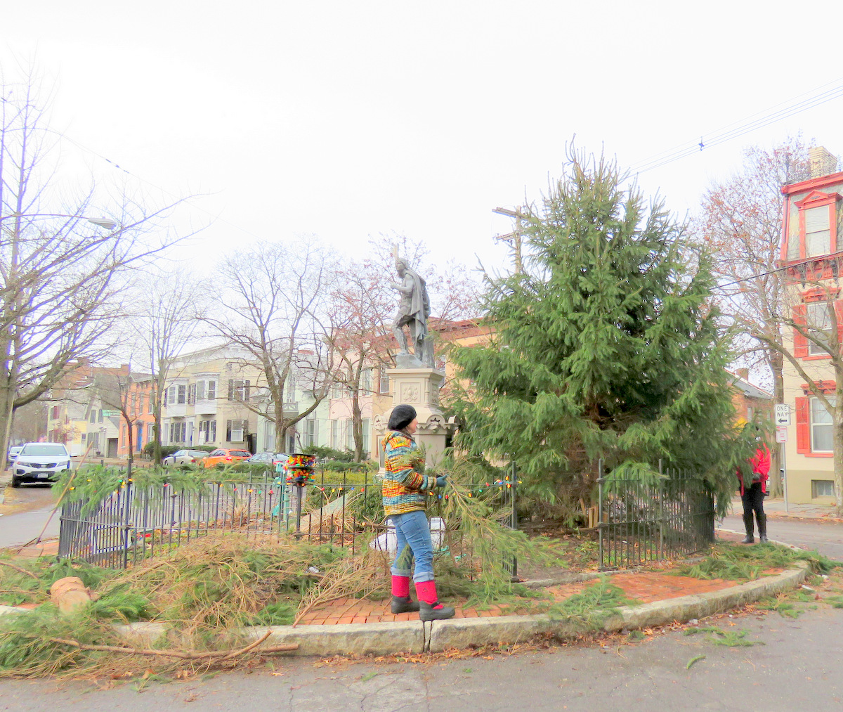 - And to the New York State Tree Nursery at Saratoga, which again provided a fine tree. This year’s tree is tall and broad, and makes quite a statement next to the patient Lawrence the Indian.