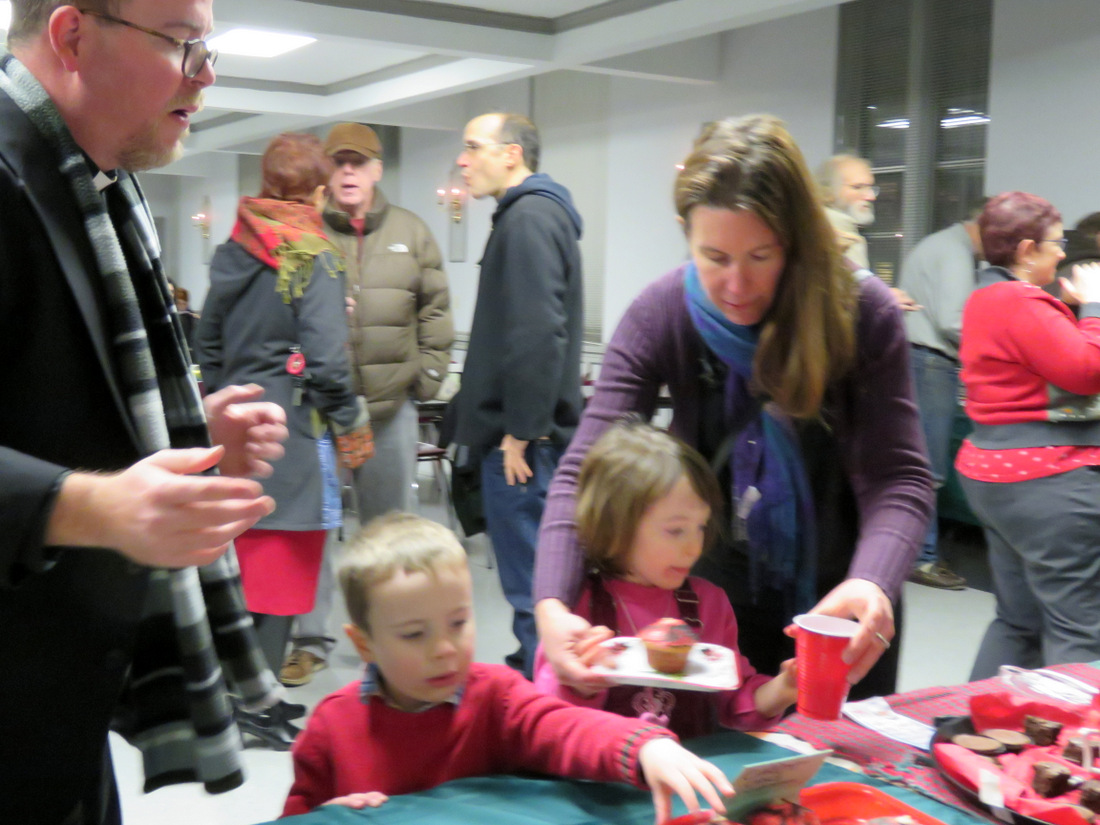 Here are images from this evening’s festive Lighting of the Stockade Holiday-Christmas Tree, and the now-traditional Afterglow get-together in the Great Hall of St. George’s Episcopal Church.