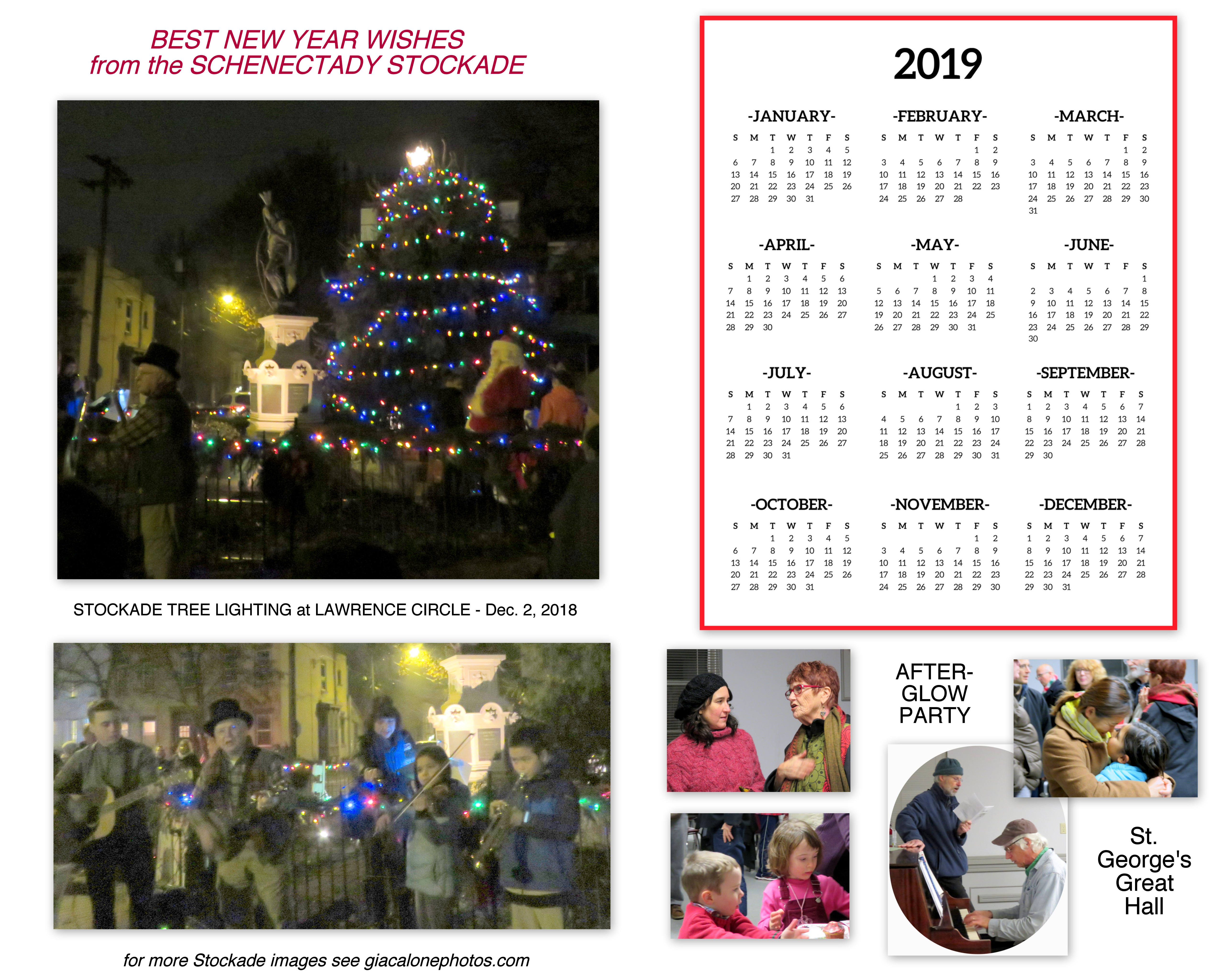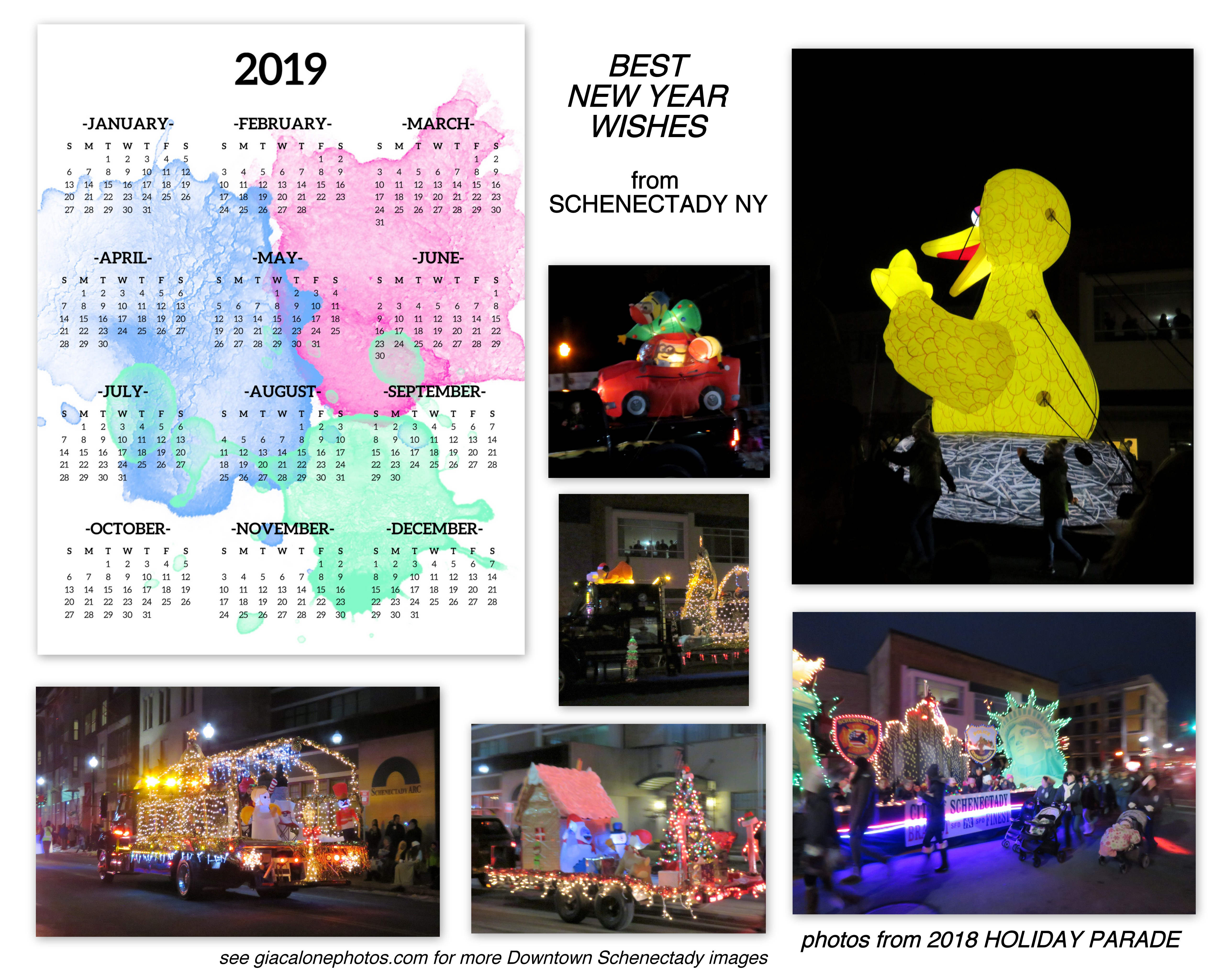 The “team” here at suns along the Mohawk [image to the right] has again put together a collection of one-page calendars to thank our loyal audience and send Holiday Cheer and best New Year Wishes to our neighbors, kith and kin. Each of the calendar photos was taken in 2018 in the Stockade, Riverside Park or Downtown Schenectady.
