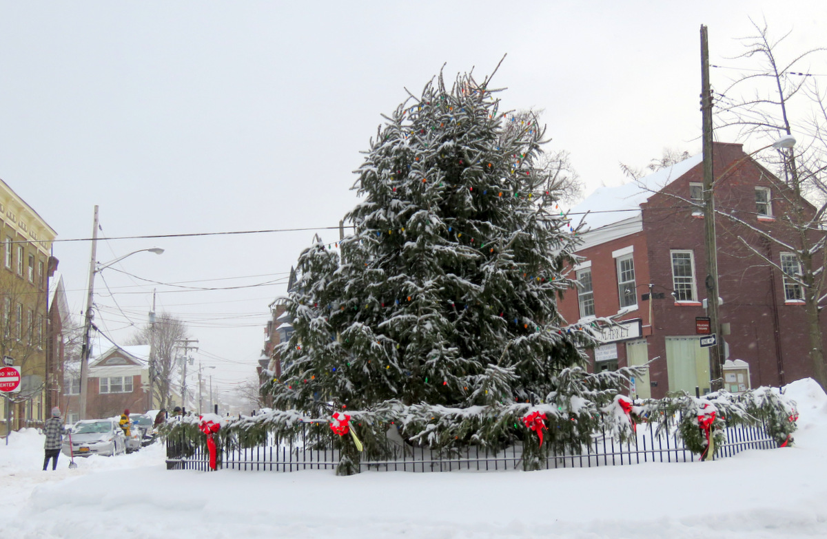 The Capital Region, including Schenectady and its Stockade neighborhood, had its first snow storm of the winter of 2018-2019 this past weekend (January 19-20). Against the advice of my saner friends and family members, I headed out with my camera and monopod (and long-johns) to capture a few images, with”real feel” temperatures heading toward zero degrees. For most of my snow stroll, the sky was low and gray, and blowing snow limited visibility. Also, I had resolved not to climb over tall snowbanks to make special shots, as previously done in my reckless “youthful” exuberance. Thus, to my eye, despite about 14 inches of new snow, I did not capture images quite as gorgeous as those presented by the Mohawk River and the Stockade in previous winter storms. (Such as the first snowy day in December 2006; and a nighttime snow stroll in 2014.)