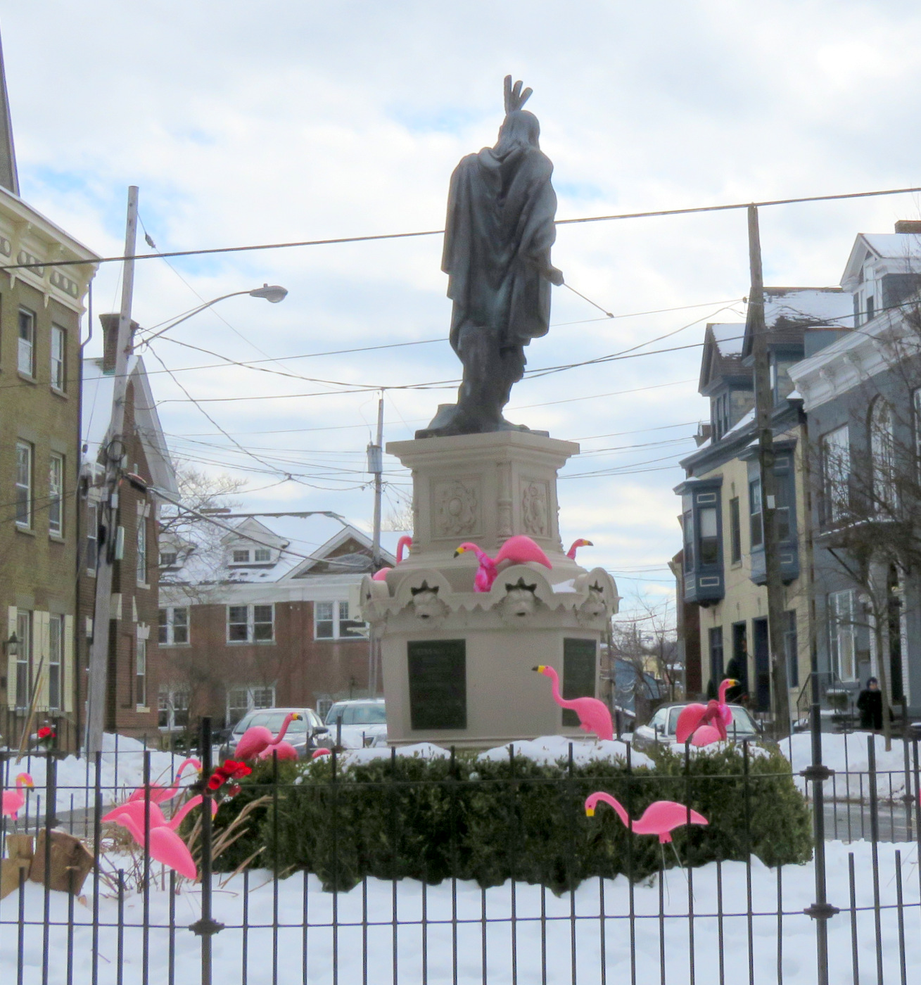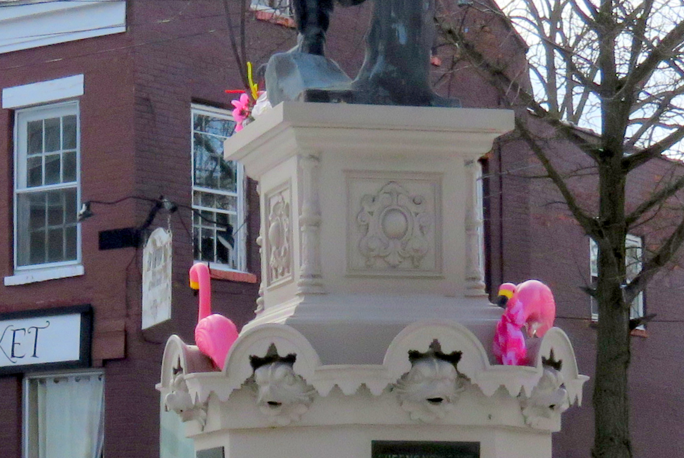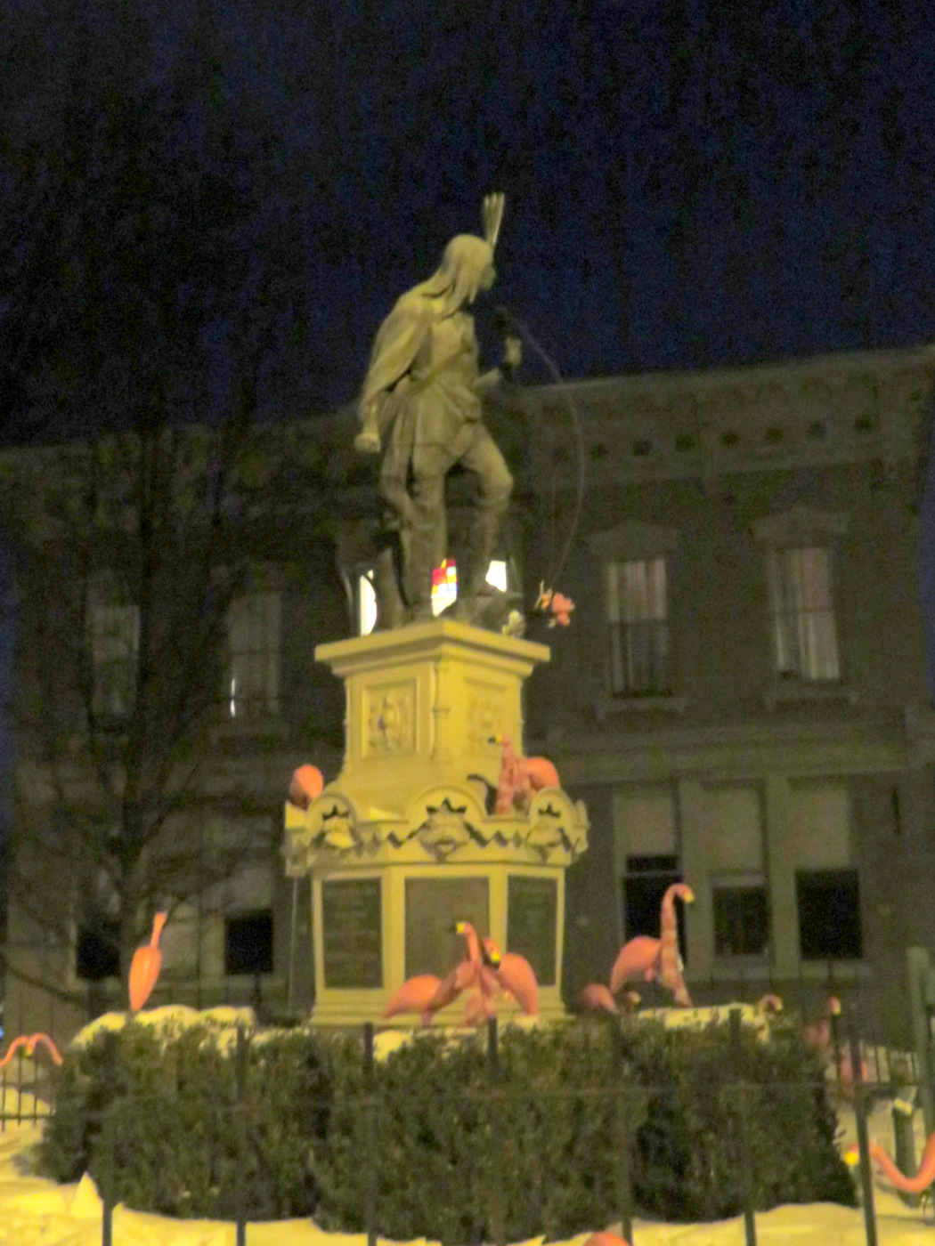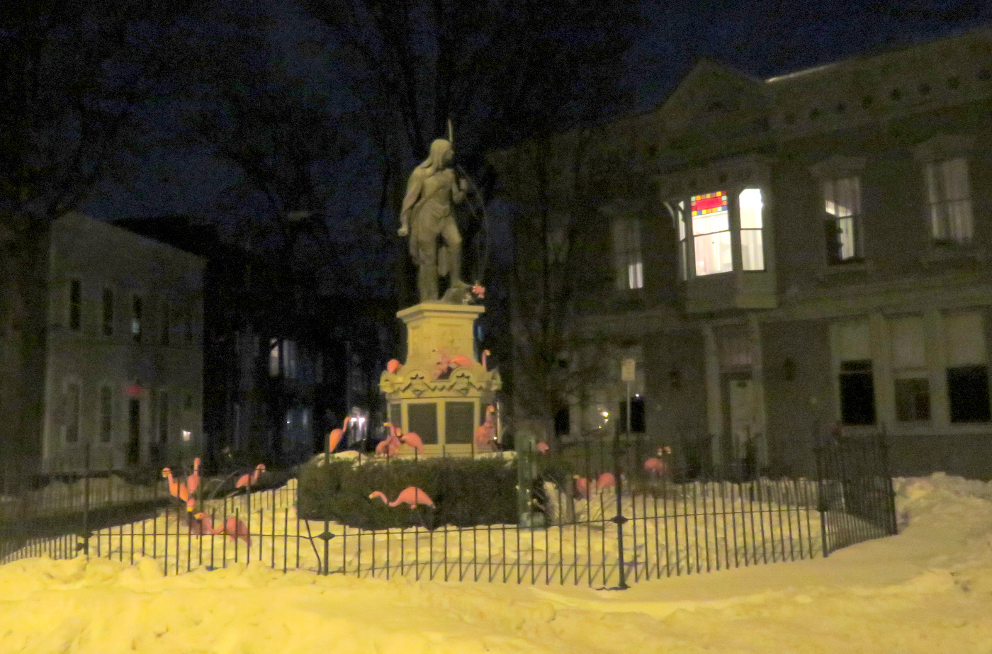 - For a trip into Stockade Flamingo History, see the links on our Valentine Flamingo Category page, or view the 20-page photobook “Valentine Flamingos in the Schenectady Stockade: whimsy and mystery at Lawrence Circle” (3rd Edition, 2016).