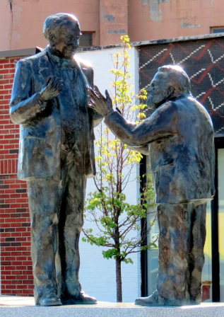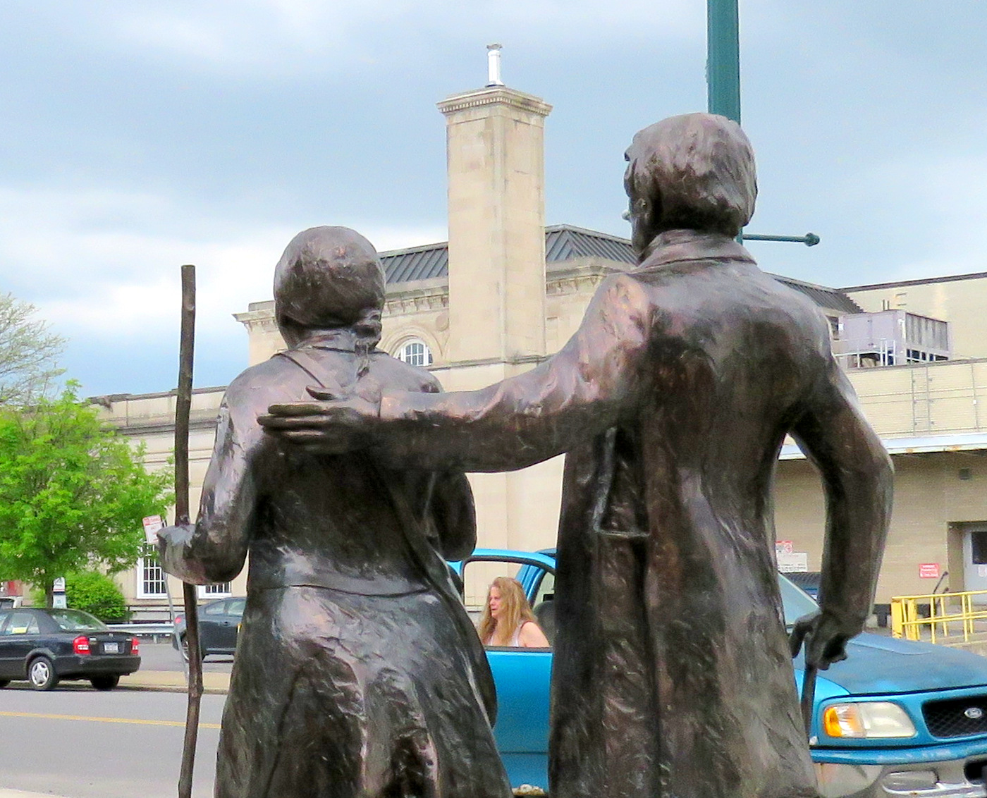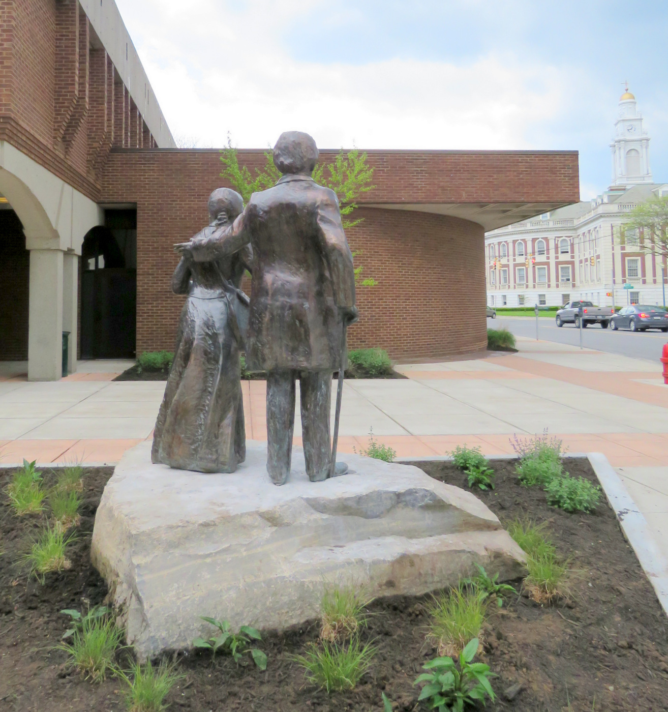 A brass statue of Harriet Tubman and William Seward, by sculptor Dexter Benedict, was dedicated and unveiled today at the Schenectady County Central Library, 99 Clinton Street. It stands along Clinton Street, between the Library parking lot and Liberty Street.