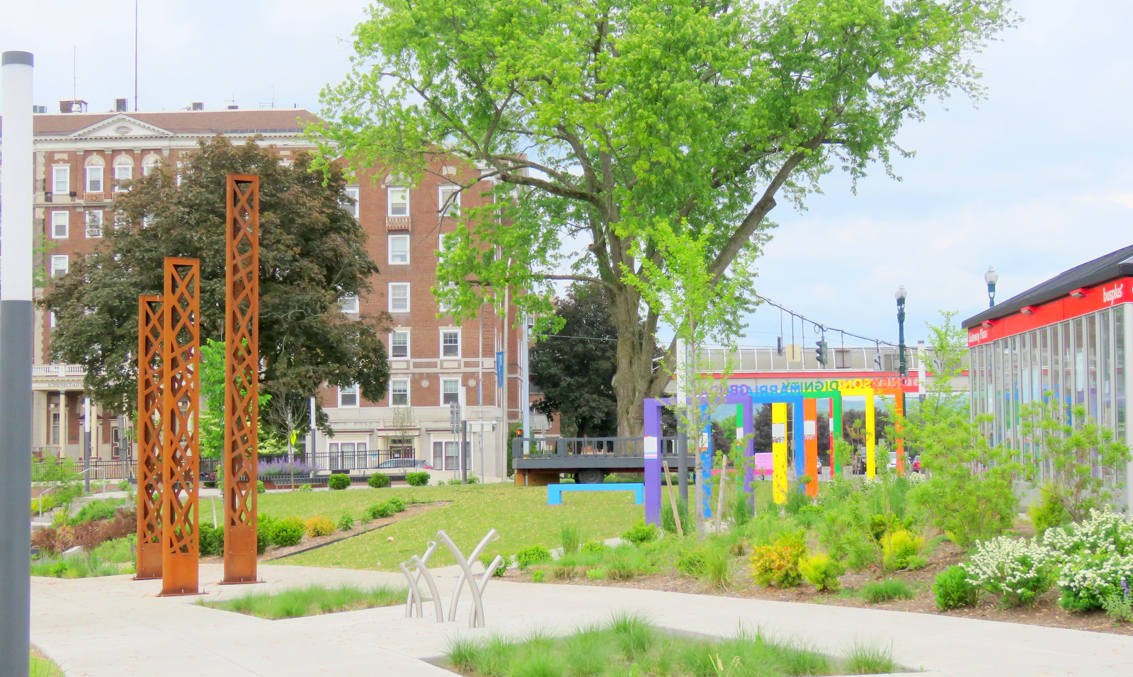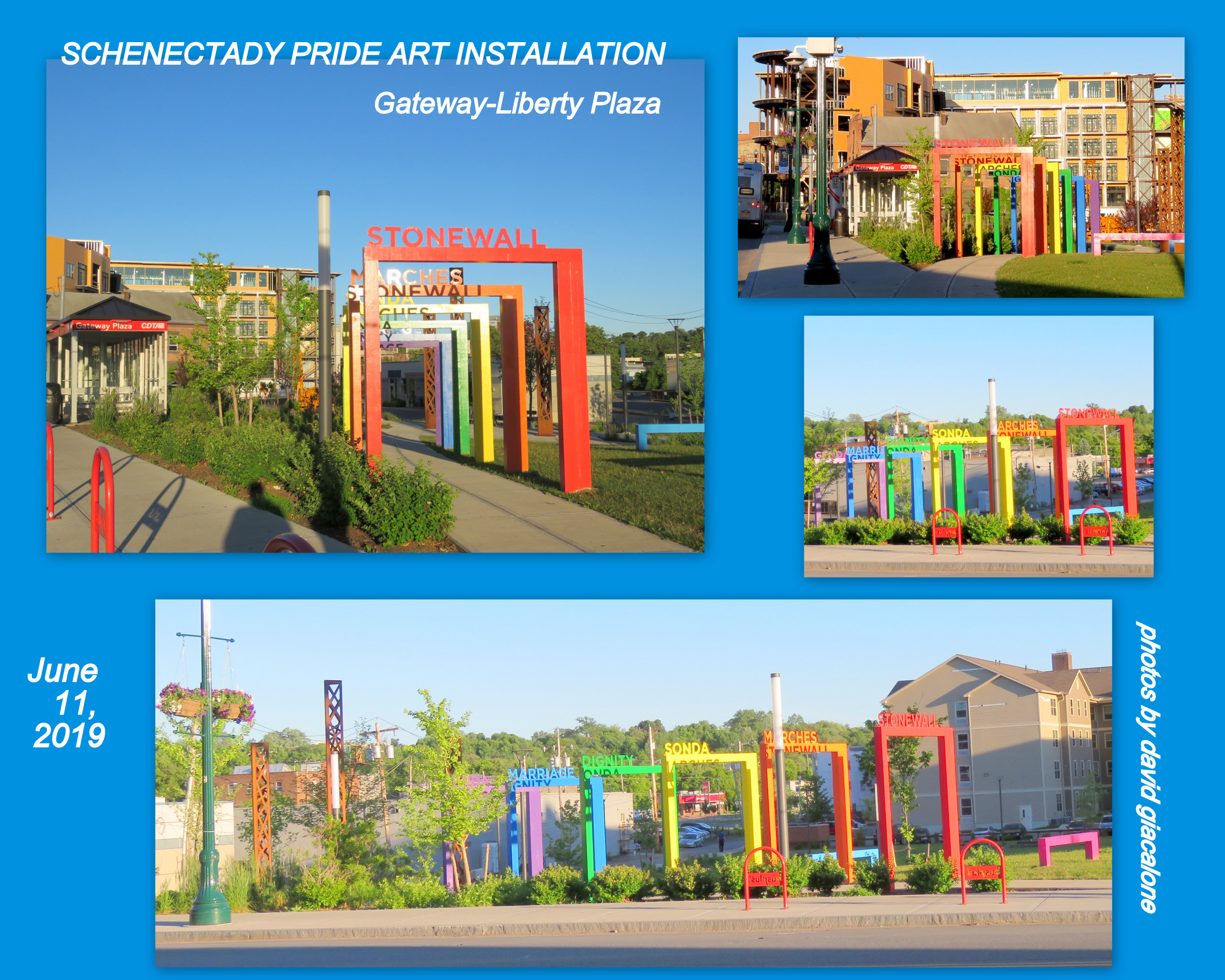 p.s. First Afterthoughts. The Rainbow Pride Project turned out better than I had expected, and is a plus for our City. Congratulations to Schenectady Pride and designer Mary Wallinger, with special thanks to The Schenectady Foundation and its Thriving Neighborhood Challenge for funding the project. However, public input and more brainstorming within the Pride organization about the location of the project within the Plaza would have been beneficial. If the public had been able to make recommendations last autumn about the design and location within the Plaza, there might have been many suggestions worth consideration, with the rest of the community feeling more of a stake in the project.