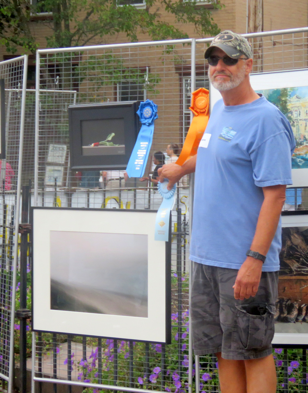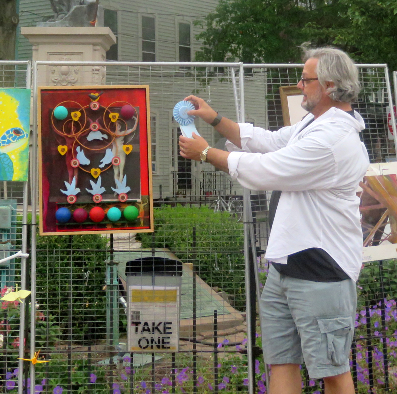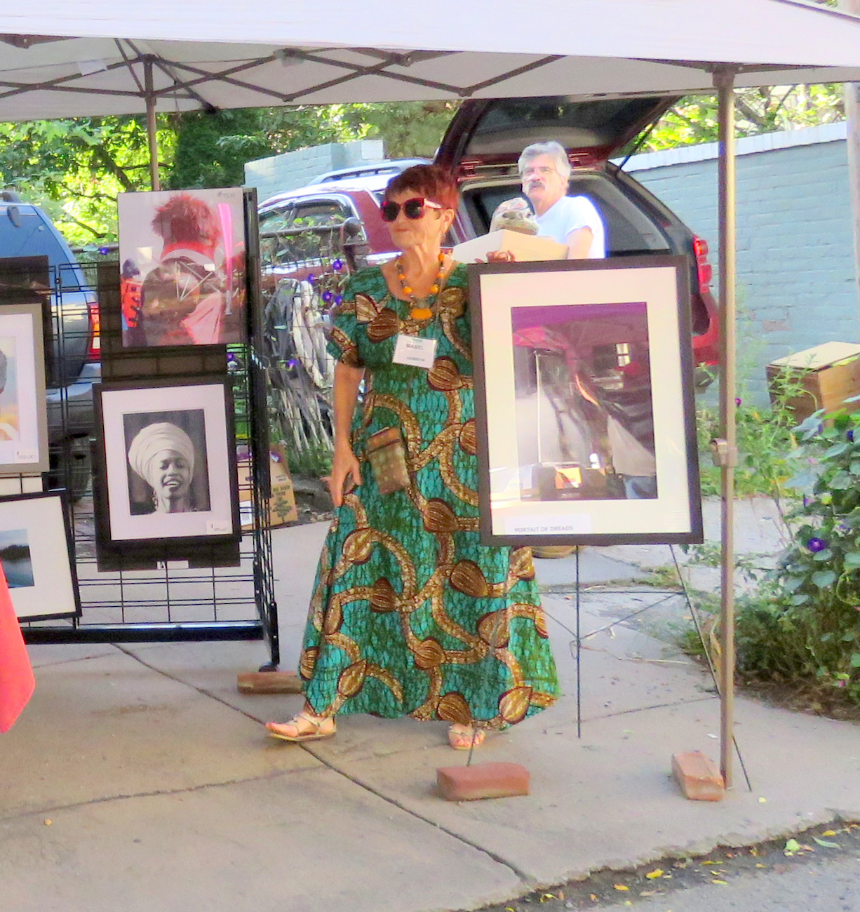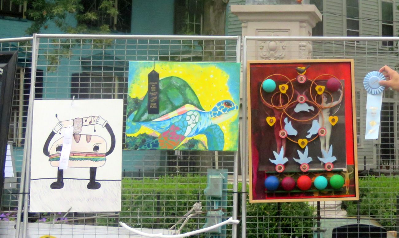 Later tonight and on Sunday morning, I will be adding over a hundred photos taken while strolling along the blocks of the art show, with images of exhibits, individual works, and individuals. [7 PM, Sunday: Done!]