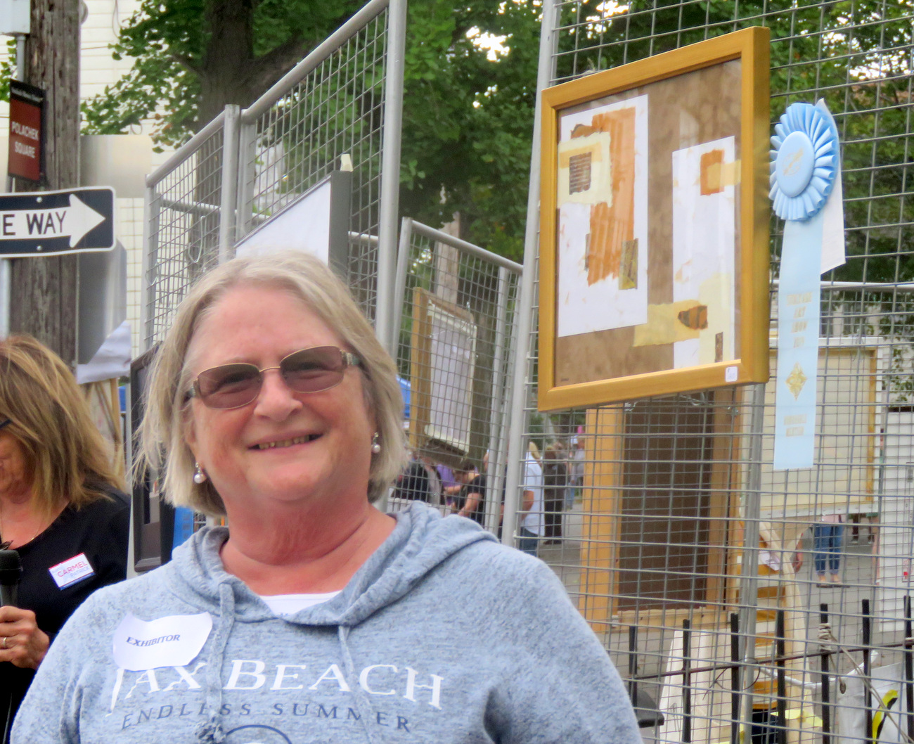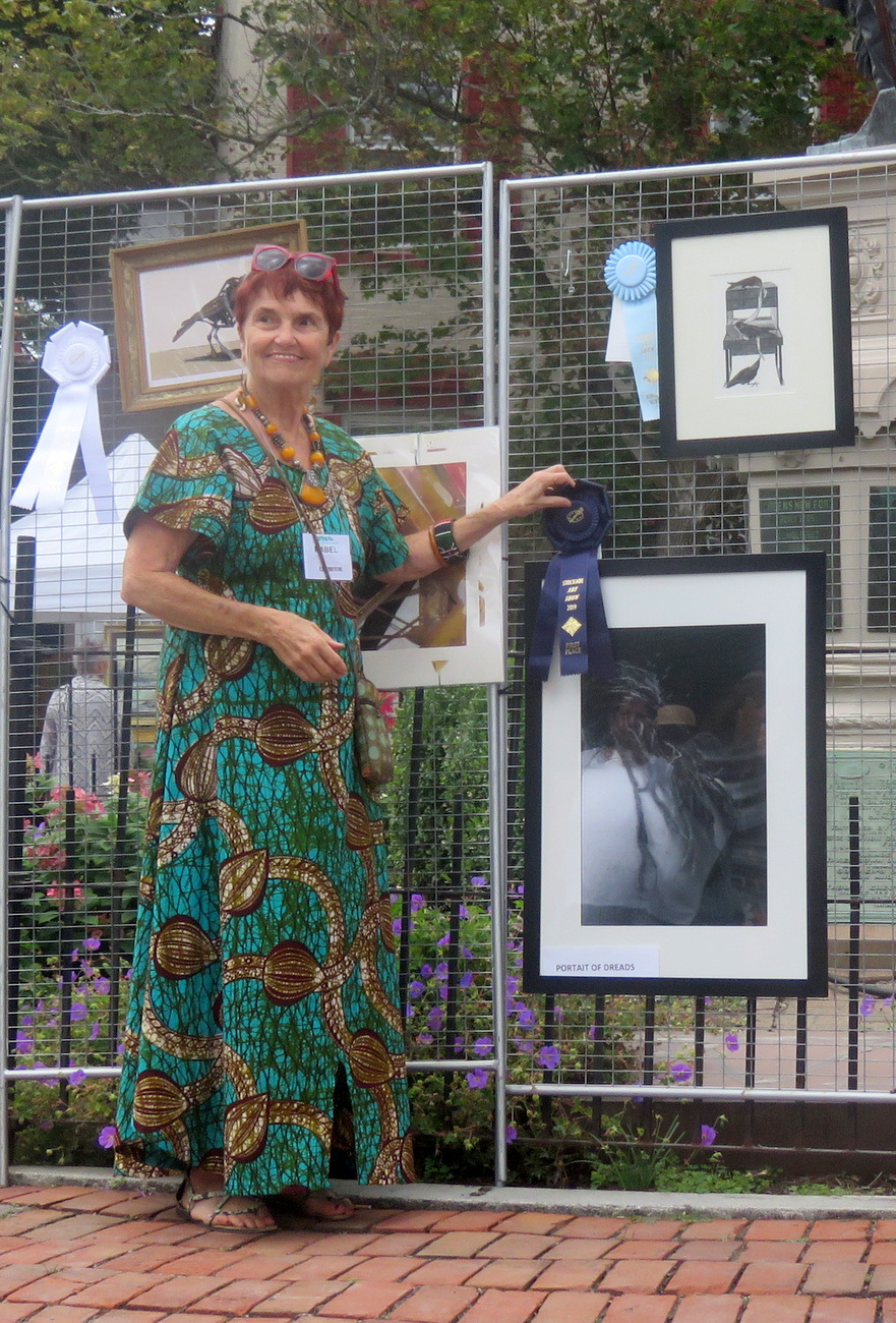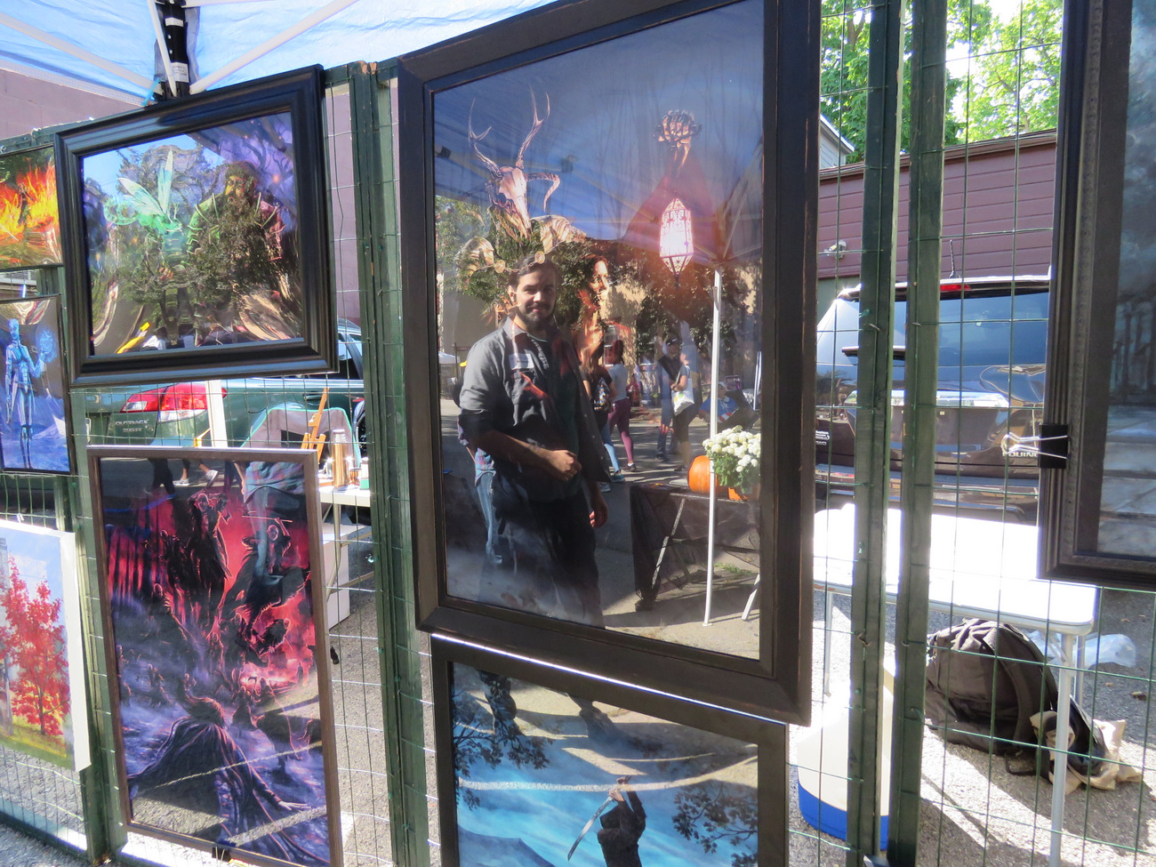 Later tonight and on Sunday morning, I will be adding over a hundred photos taken while strolling along the blocks of the art show, with images of exhibits, individual works, and individuals. [7 PM, Sunday: Done!]