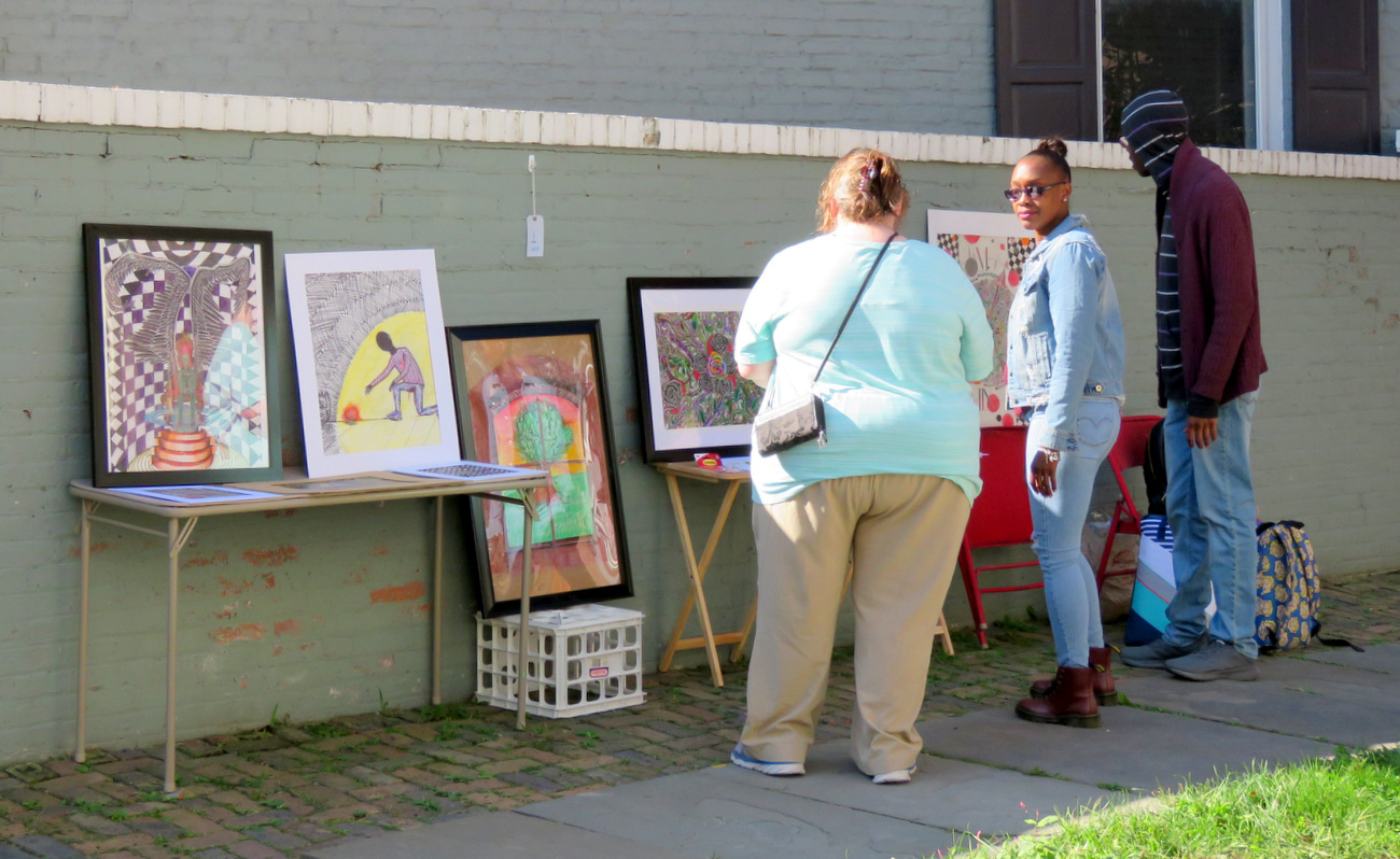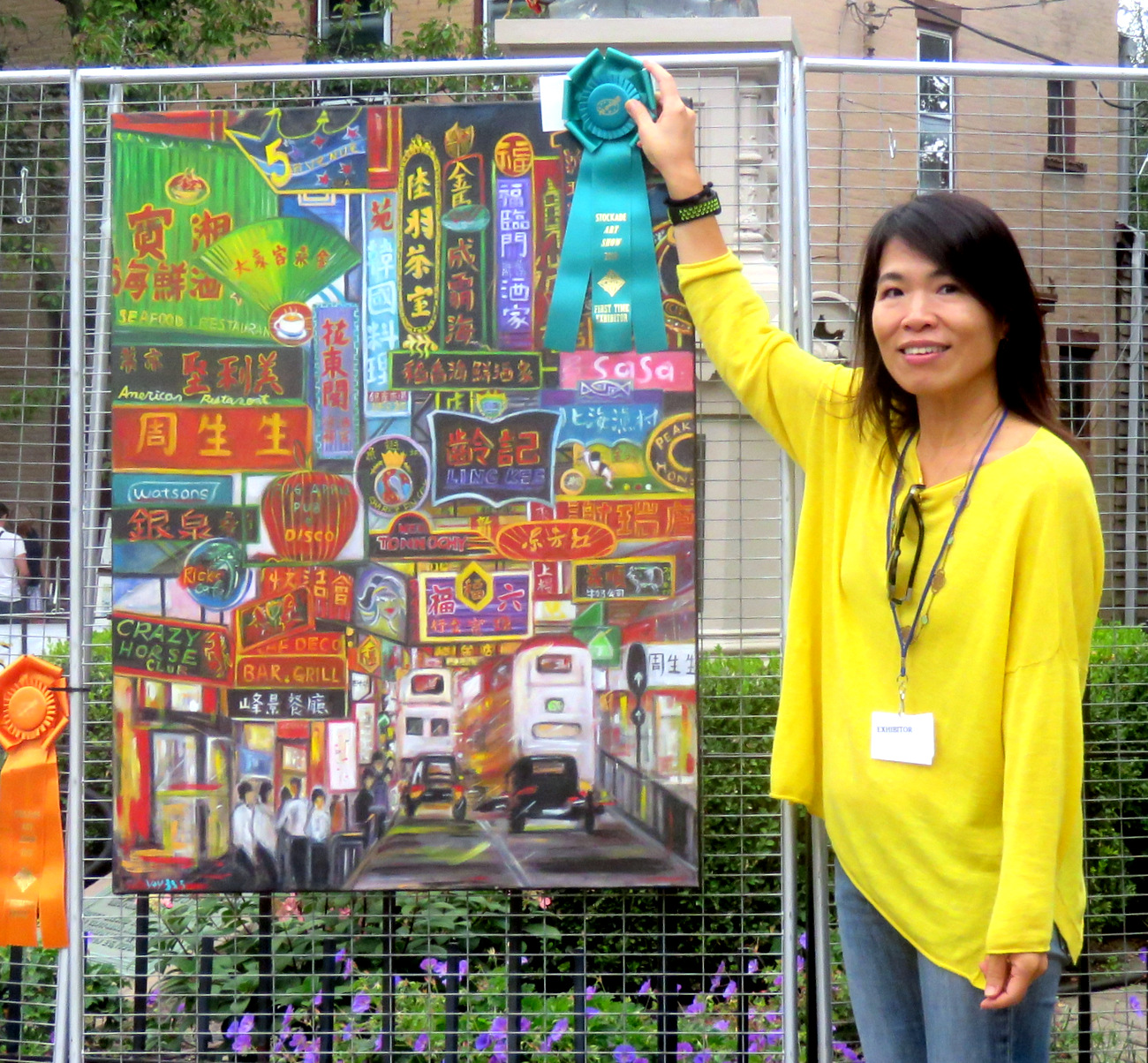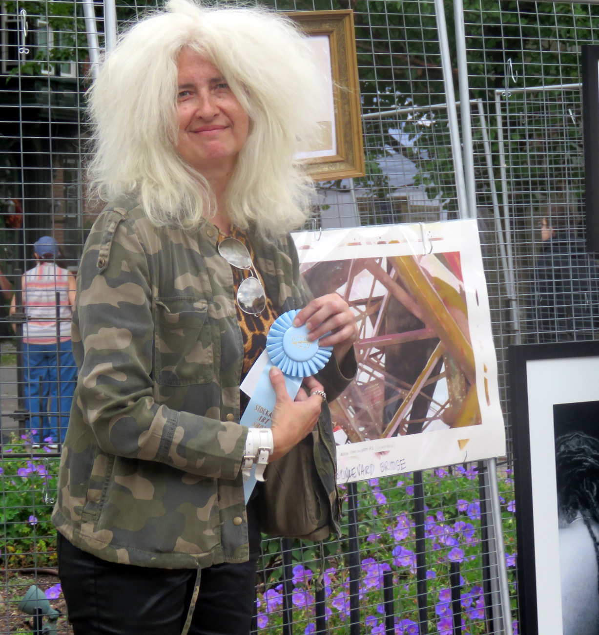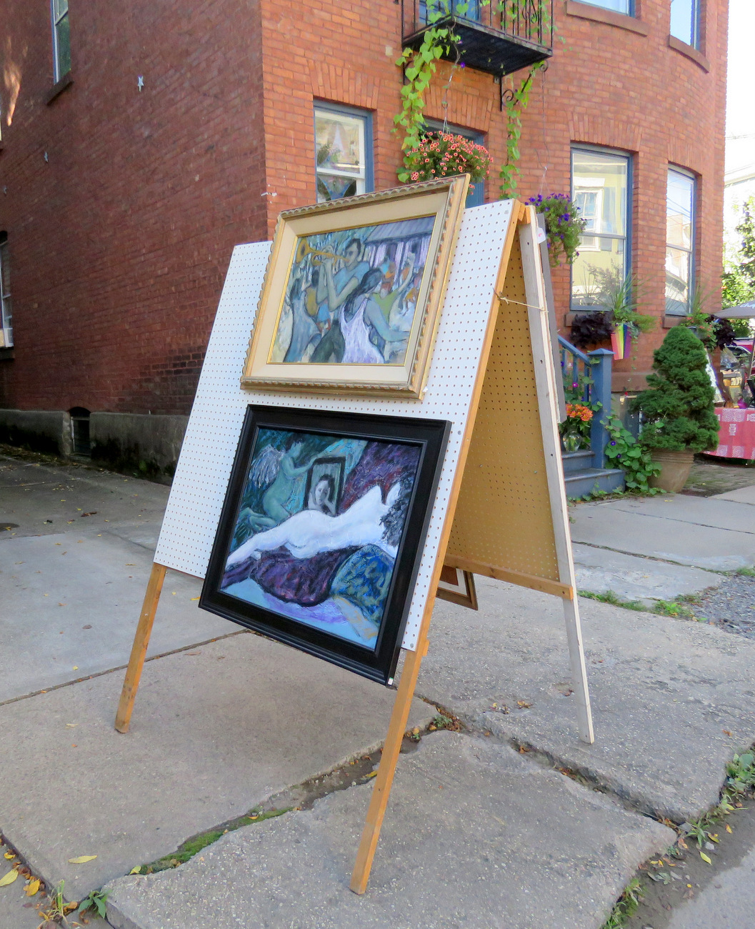 Later tonight and on Sunday morning, I will be adding over a hundred photos taken while strolling along the blocks of the art show, with images of exhibits, individual works, and individuals. [7 PM, Sunday: Done!]