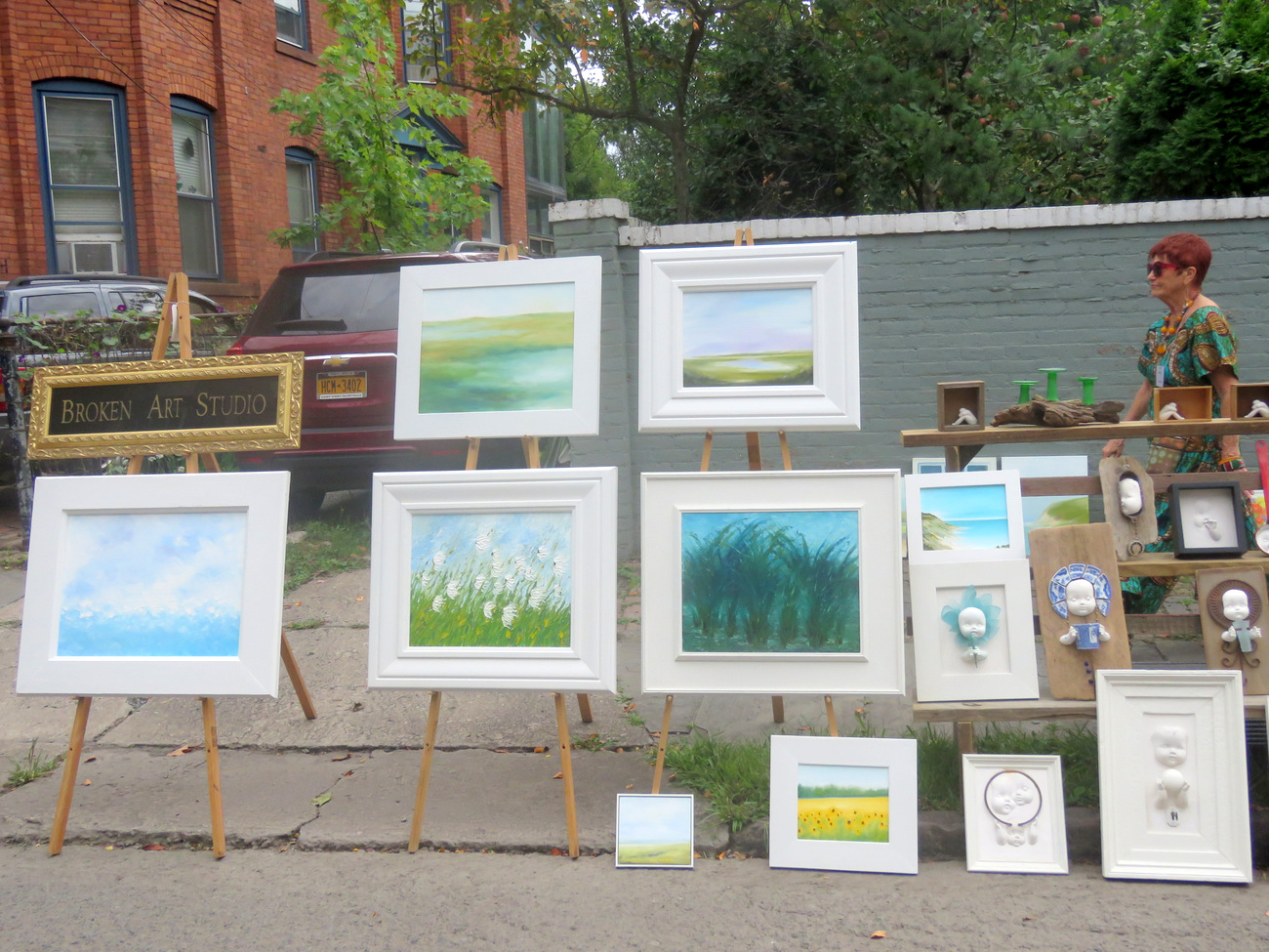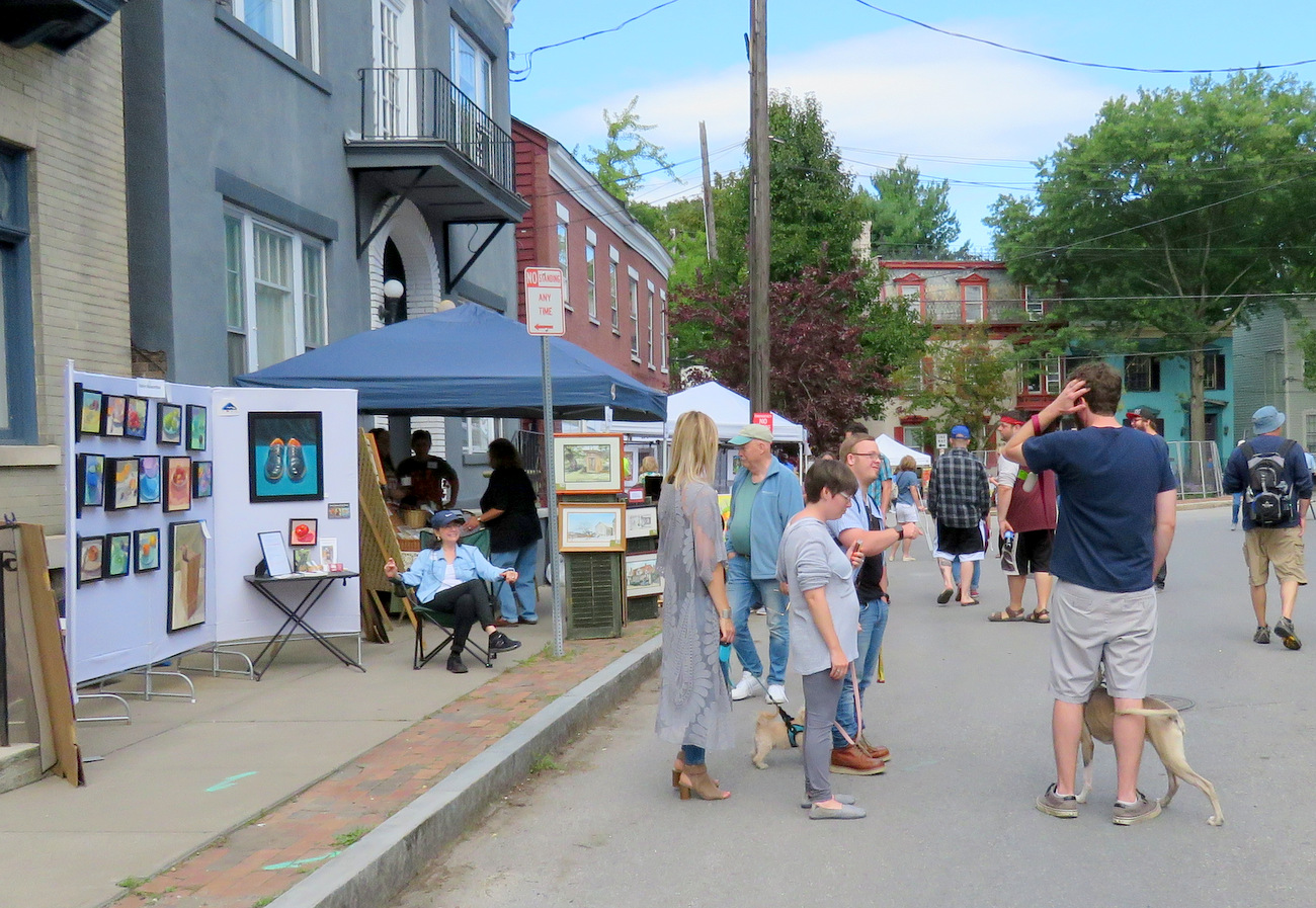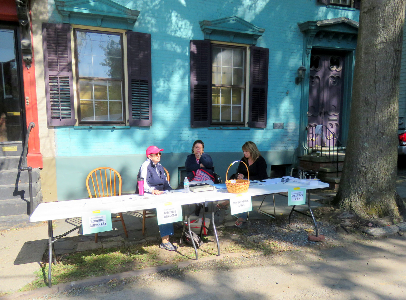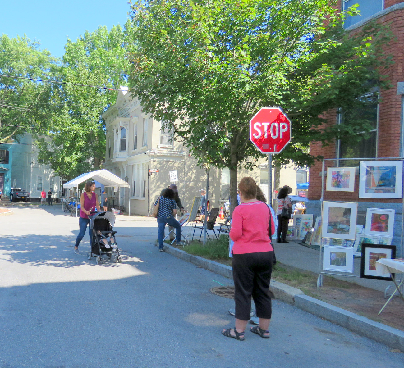 We’re slowly adding images throughout the morning, including slideshows. So, please stop by often. [7 PM Sunday: Only a little fine-tuning left to do; take a stroll around our Stockade’s venerable Outdoor Art Show. Please let me know if I’ve misidentified an artist or misspelled a name.]
