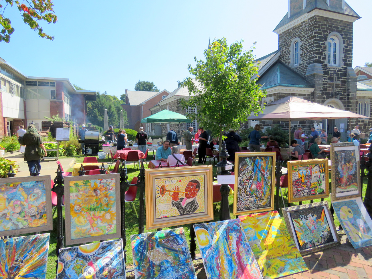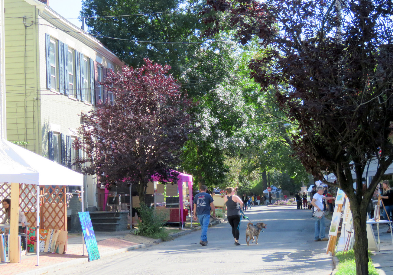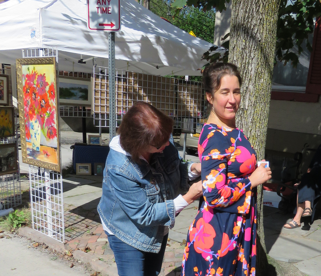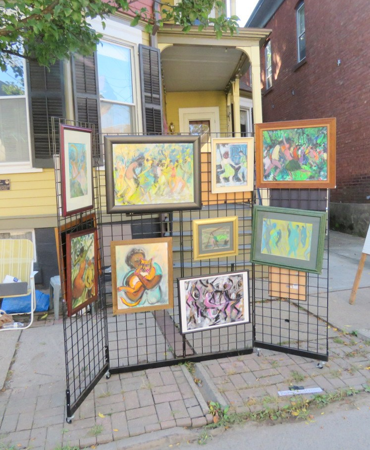 We’re slowly adding images throughout the morning, including slideshows. So, please stop by often. [7 PM Sunday: Only a little fine-tuning left to do; take a stroll around our Stockade’s venerable Outdoor Art Show. Please let me know if I’ve misidentified an artist or misspelled a name.]