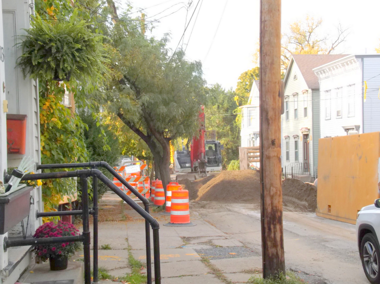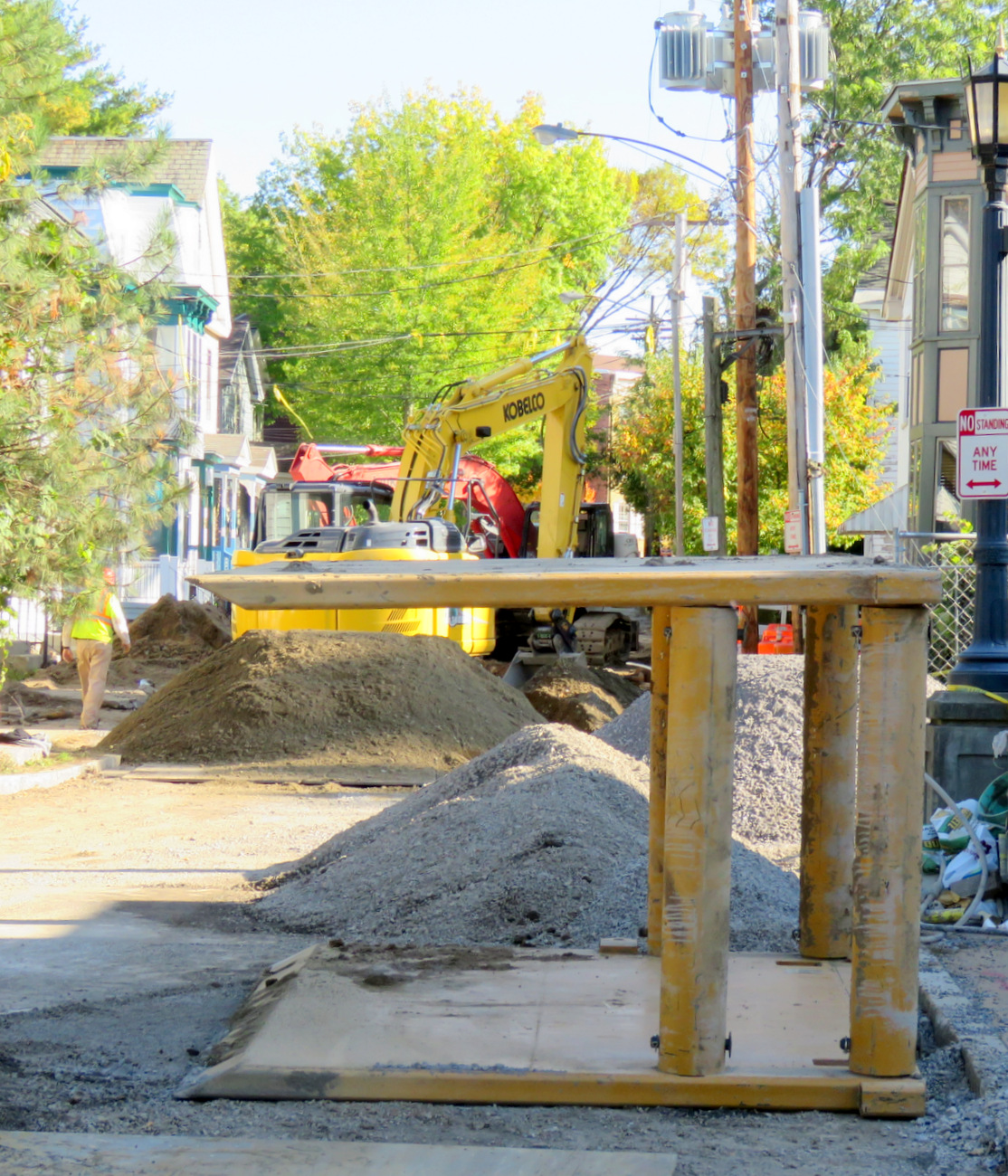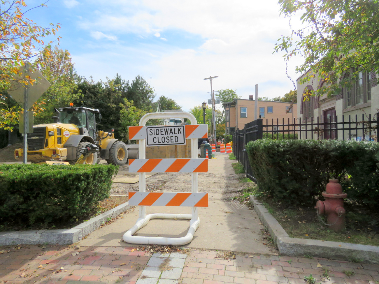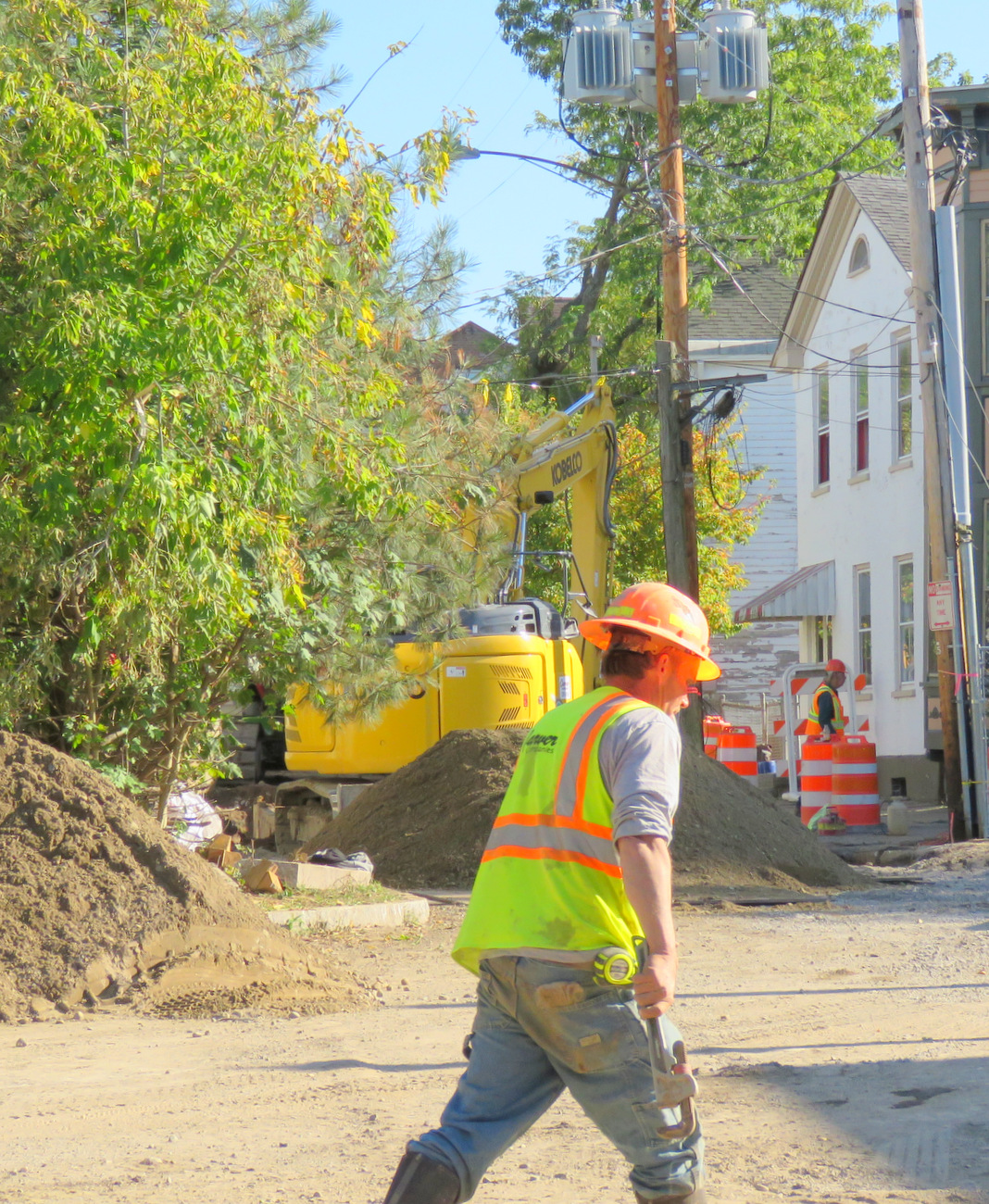 If, like myself, you’ve been wondering what the Big Dig/Disruption looks like at the river-end of North Ferry Street, this posting is for you. On October 10 and 11, I got some shots while construction workers were on site and sidewalks closed on North Ferry Street; and on Saturday, October 12, I came back when sidewalk access had been restored. As usual, a sunny day and big yellow machines made the trip worthwhile photographically.