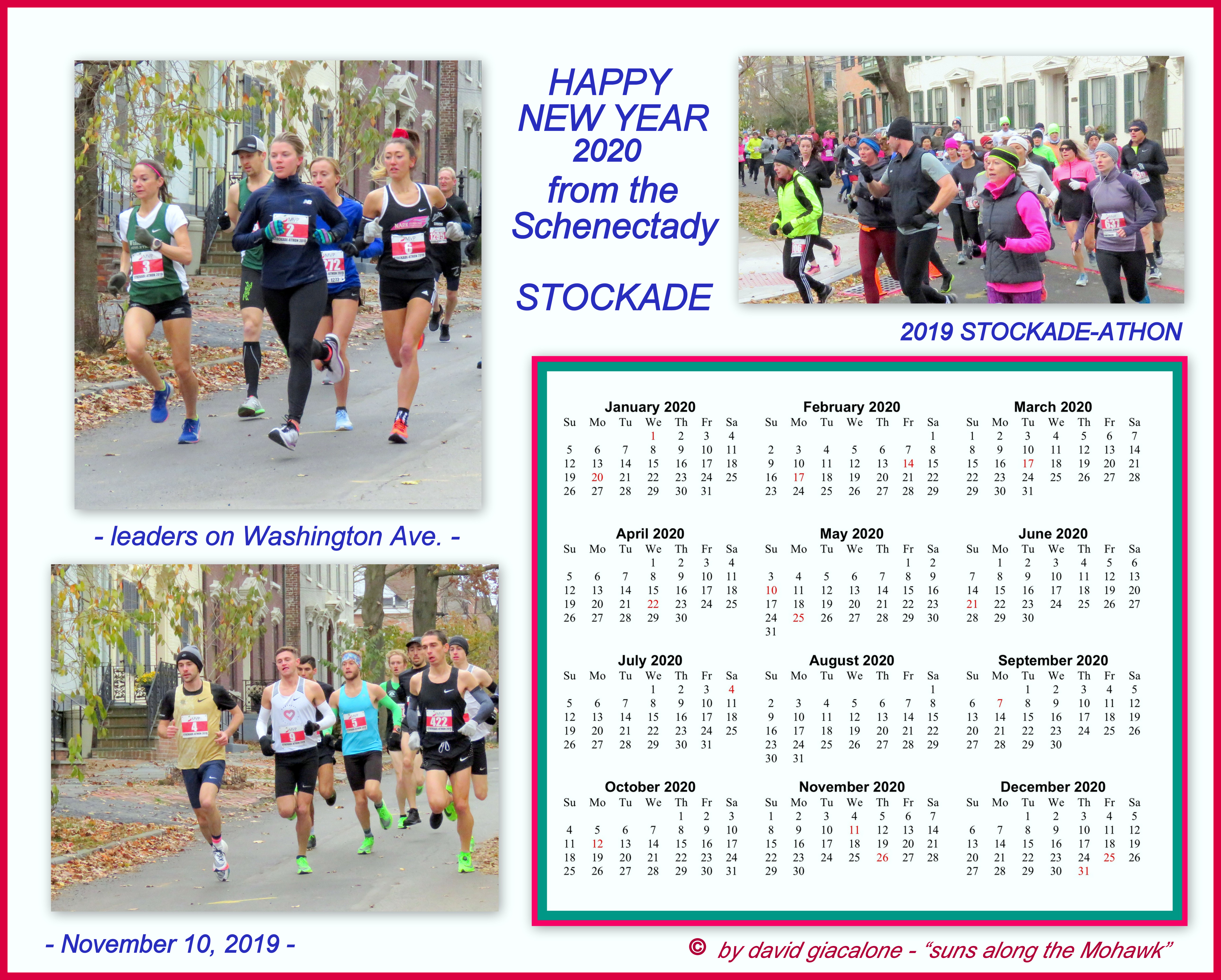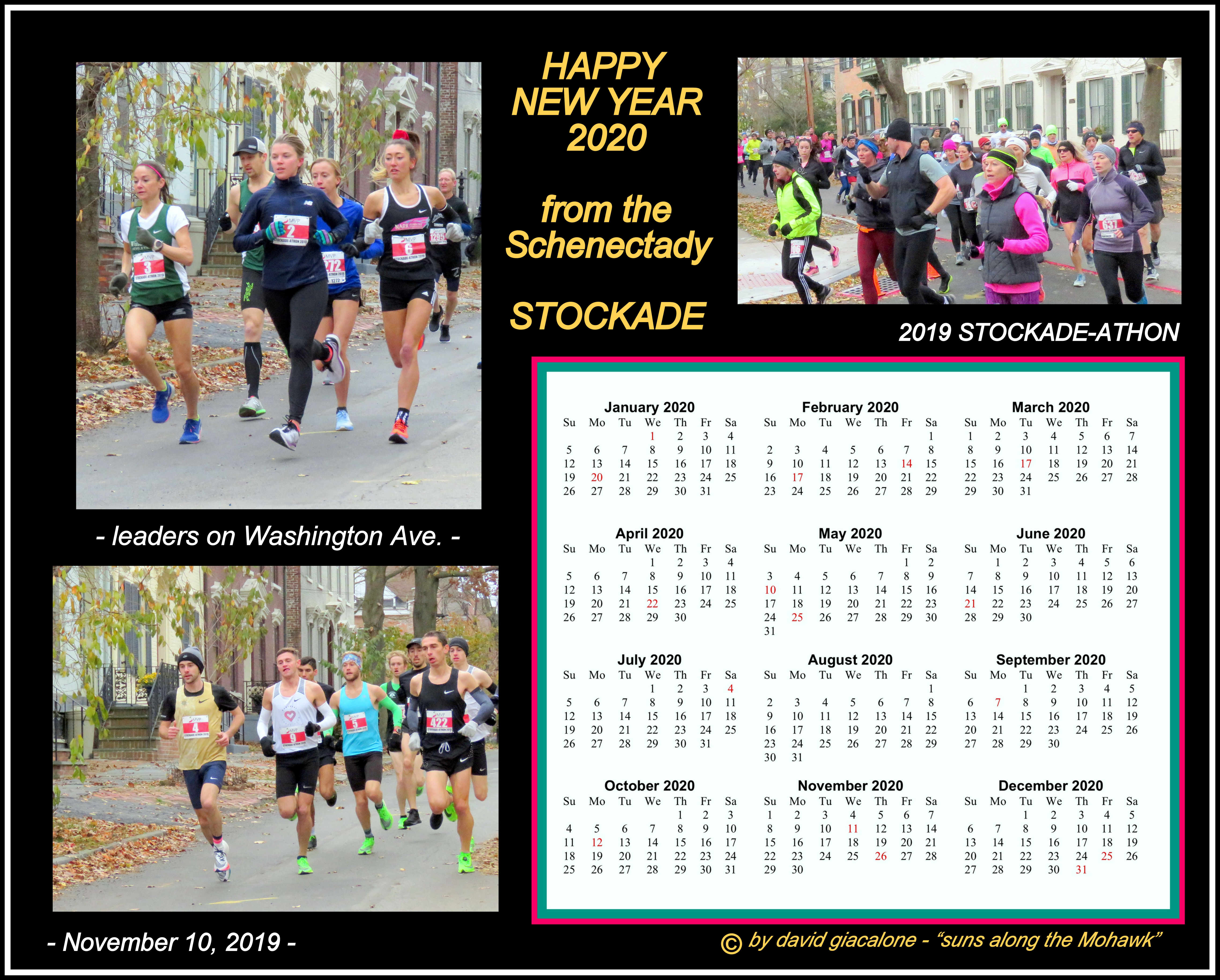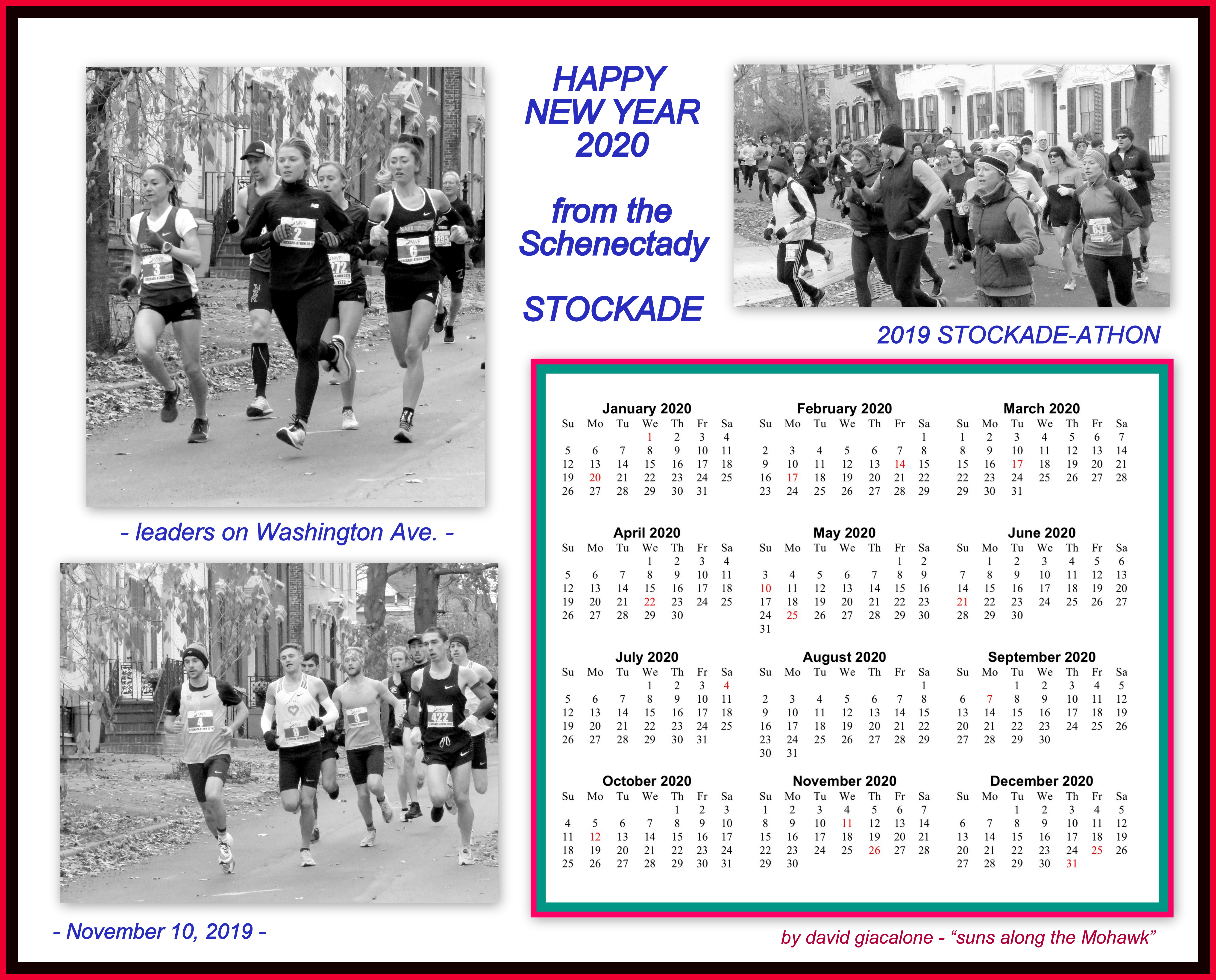 Below is our 2020 Calendar celebrating the Stockade-athon, in a variety of color themes.