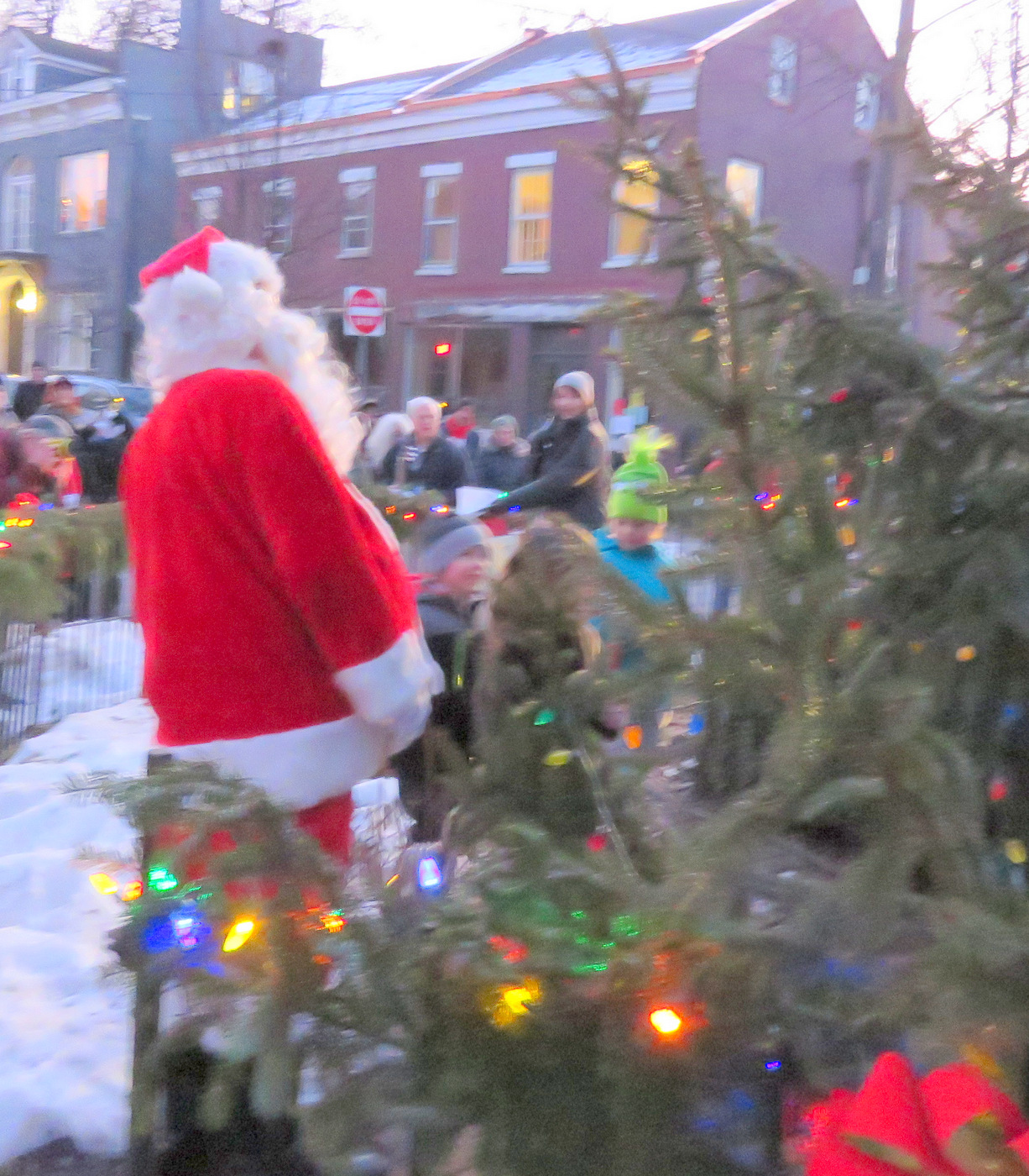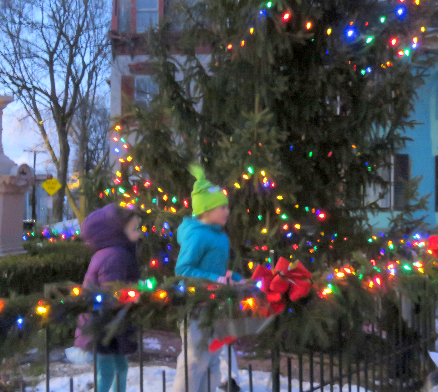 We got an early start today celebrating this year’s Stockade Christmas Tree. It arrived on Wednesday, December 11, as we reported here. Delayed by the big snow storm earlier this month, it was worth the wait.