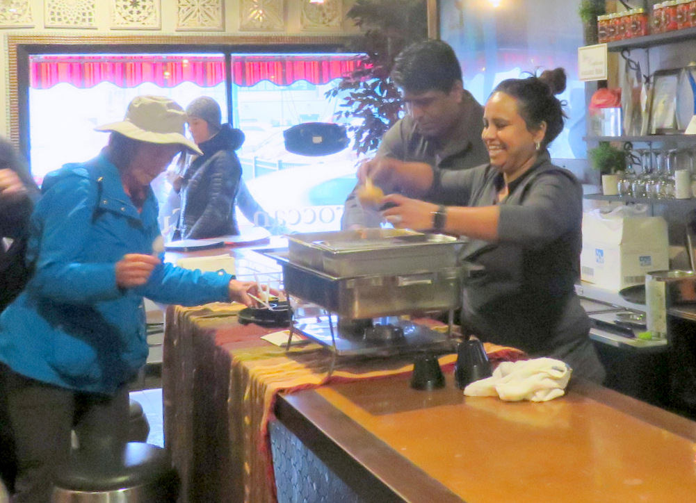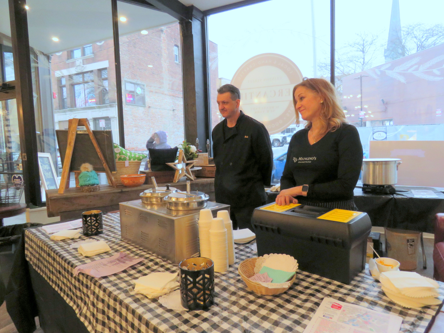 . . Above: Rick & Bonnie of Mangino’s Gourmet Bistro, came a few blocks downtown from 764.5 Eastern Ave. to the Clinton Street Mercantile; [R] while Aneesa and Muntasim at Tara’s Kitchen had a stream of happy Strollers visiting at 431 Liberty Street . .