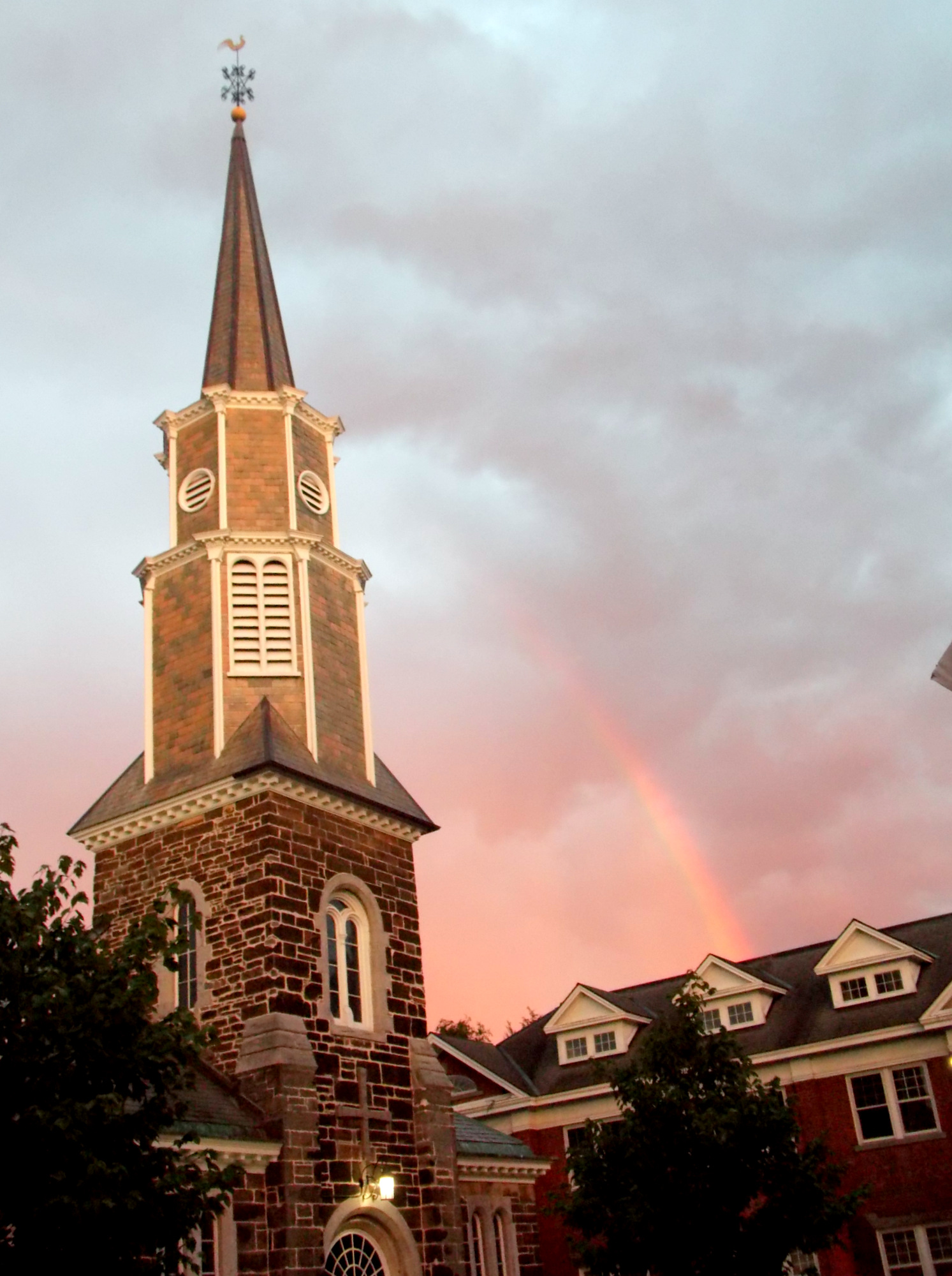 . . St. George’s steeple with rainbow, June 25, 2020. .