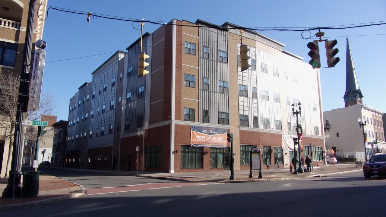 update (December 13, 2022): Residents have started to move into 501 State street, which looks even less impressive than it did back in June. The Planning Commission not only allowed the favorite developer to add a 4th floor, it removed ALL obligation to provide parking spaces for the residents, overturning the City Code’s requirement of 1.5 spaces per unit. Prediction: a parking mess and crisis, plus lots of double-parking as residents unload their vehicles on the very narrow Clinton Street or Barrett St.