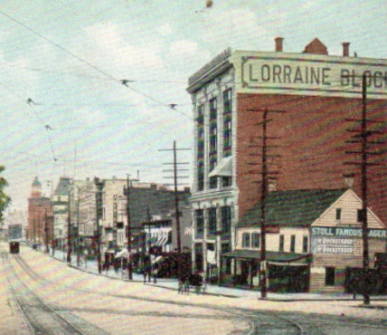 Before the three-story addition was created on the Barrett Street side in 1923, the corner location was graced by the original “Lorraine Block”, which was a source of much civic pride as a symbol of the City’s affluence when built in 1902 by Welton Sanford. Here is a postcard from 1907: