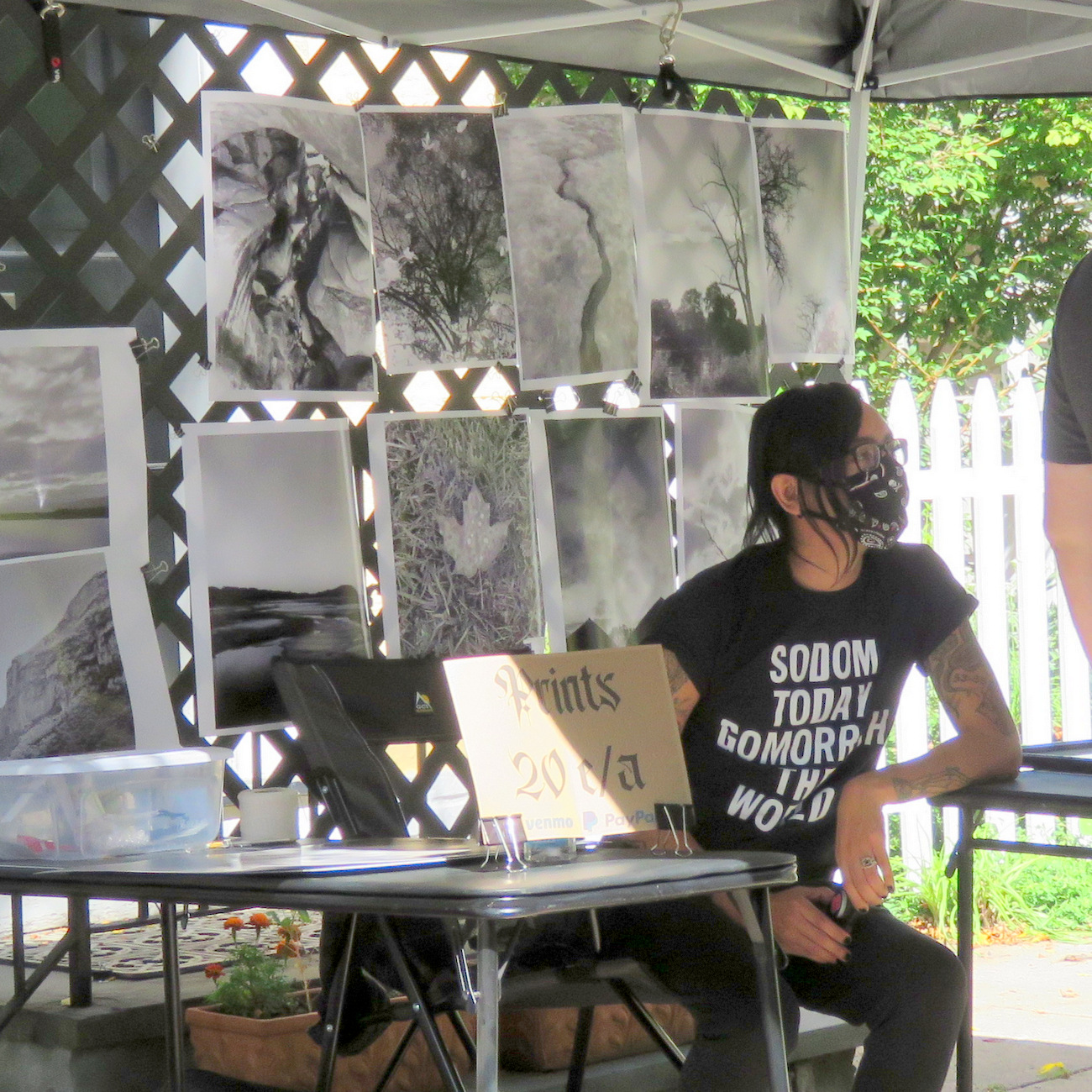 Tireless Art Show organizer Zoe Oxley was visiting Holly’s exhibit when I took this photo: