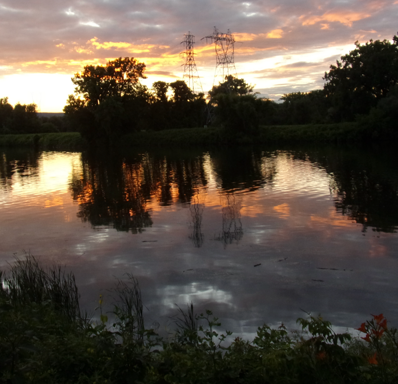 After following Union Street, I arrived back at Cucumber Alley, and was greeted by, and treated to, an inspiring Independence Day sunset along the Mohawk at the Isle of the Cayugas, featuring a swath of colorful clouds above and upon the Mohawk: