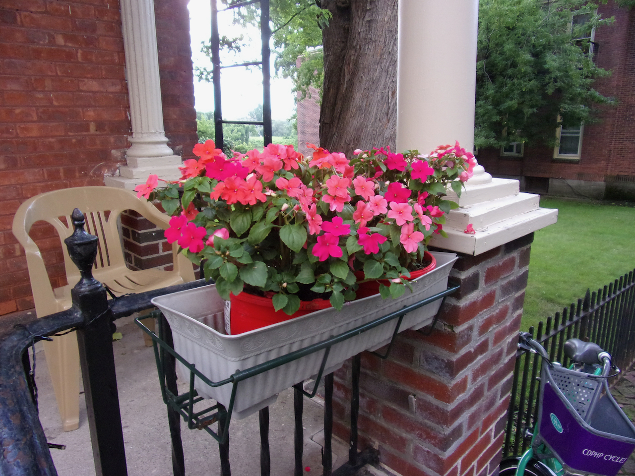 . . and, a flower box of potted impatiens near the corner of Cucumber and Washington Avenue were remarkable for having survived and thrived for two weeks after I put them there.