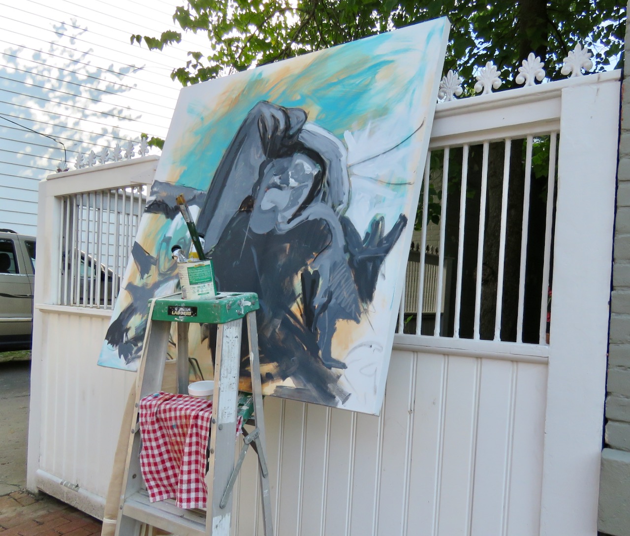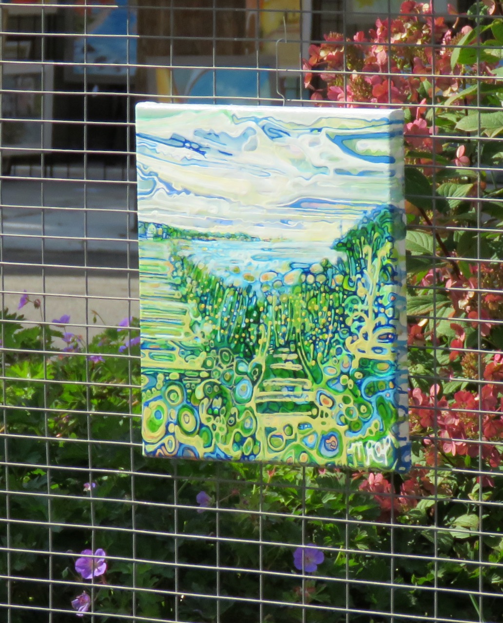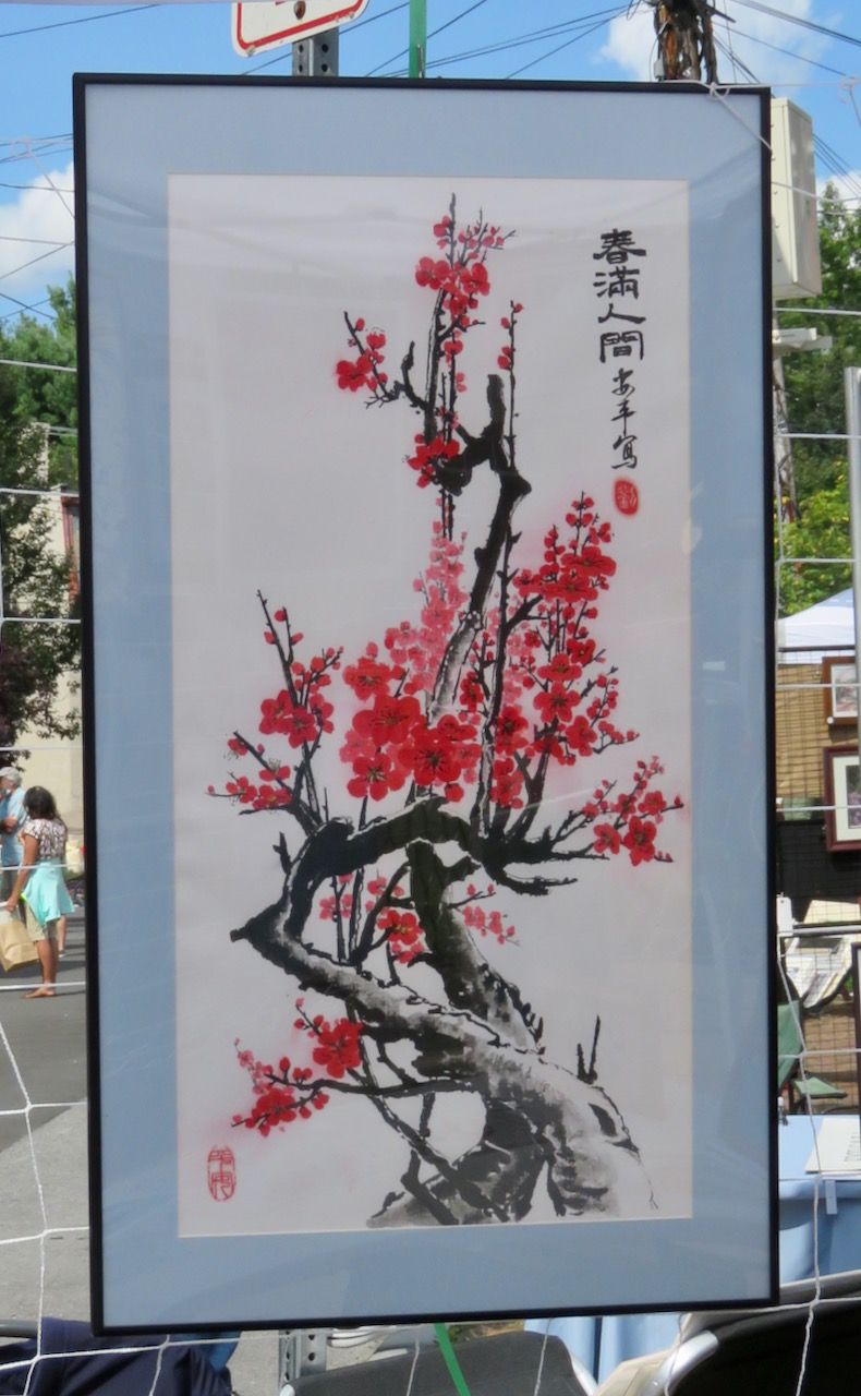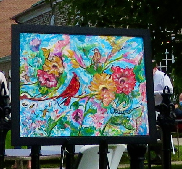 The 70th Annual Stockade Villagers’ Outdoor Art Show once again offered a wide variety of art and artists, nestled in a special streetscape of old homes, with welcoming neighbors and friendly art-browsers and buyers. Add in perfect weather (marred only by a batch of mosquitos early in the day), and the event was once again enjoyable and inspiring. With many returning artists, along with talented newcomers [like Xiaoping (Sherry) Xu, whose painting is shown on the left].