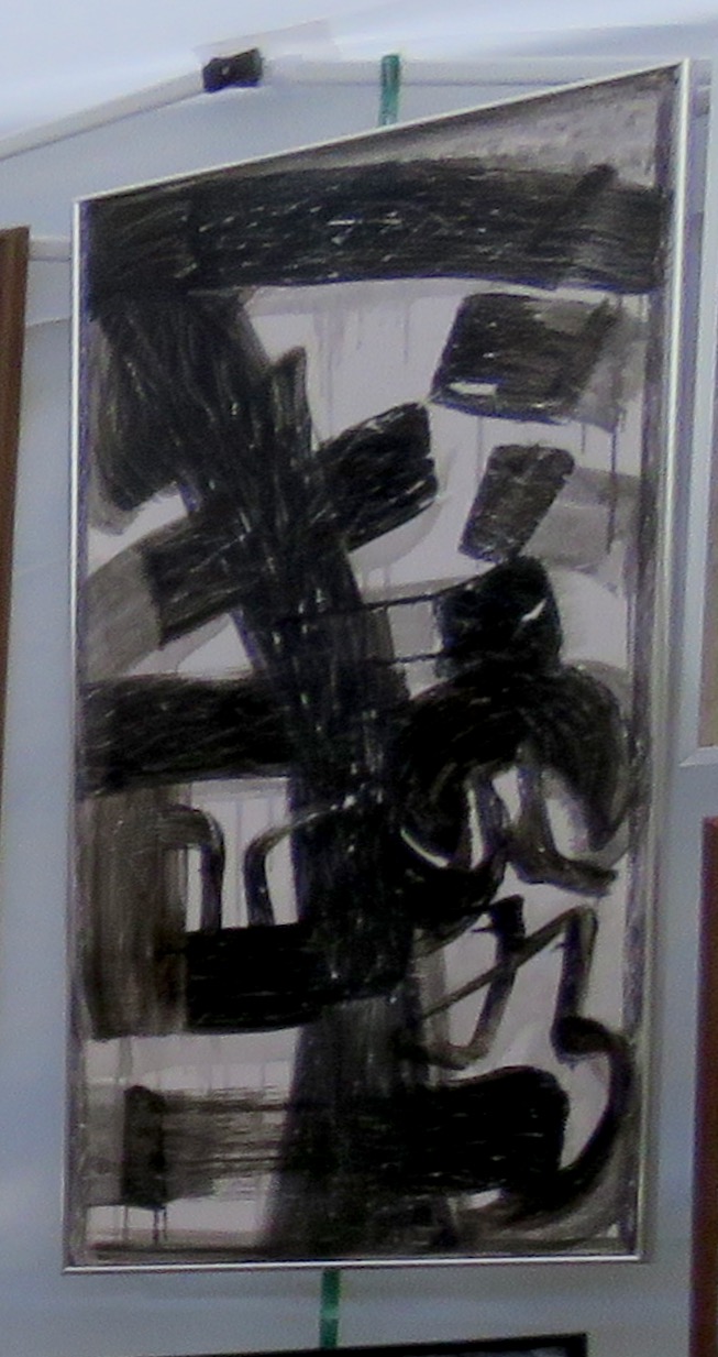. . [above Left] I found Rev. Matt feeling very much at home at the Heroux exhibit with its black and white theme. And, [R] I also found Erik Rutnik once again working on a painting while he tended to his exhibit. .