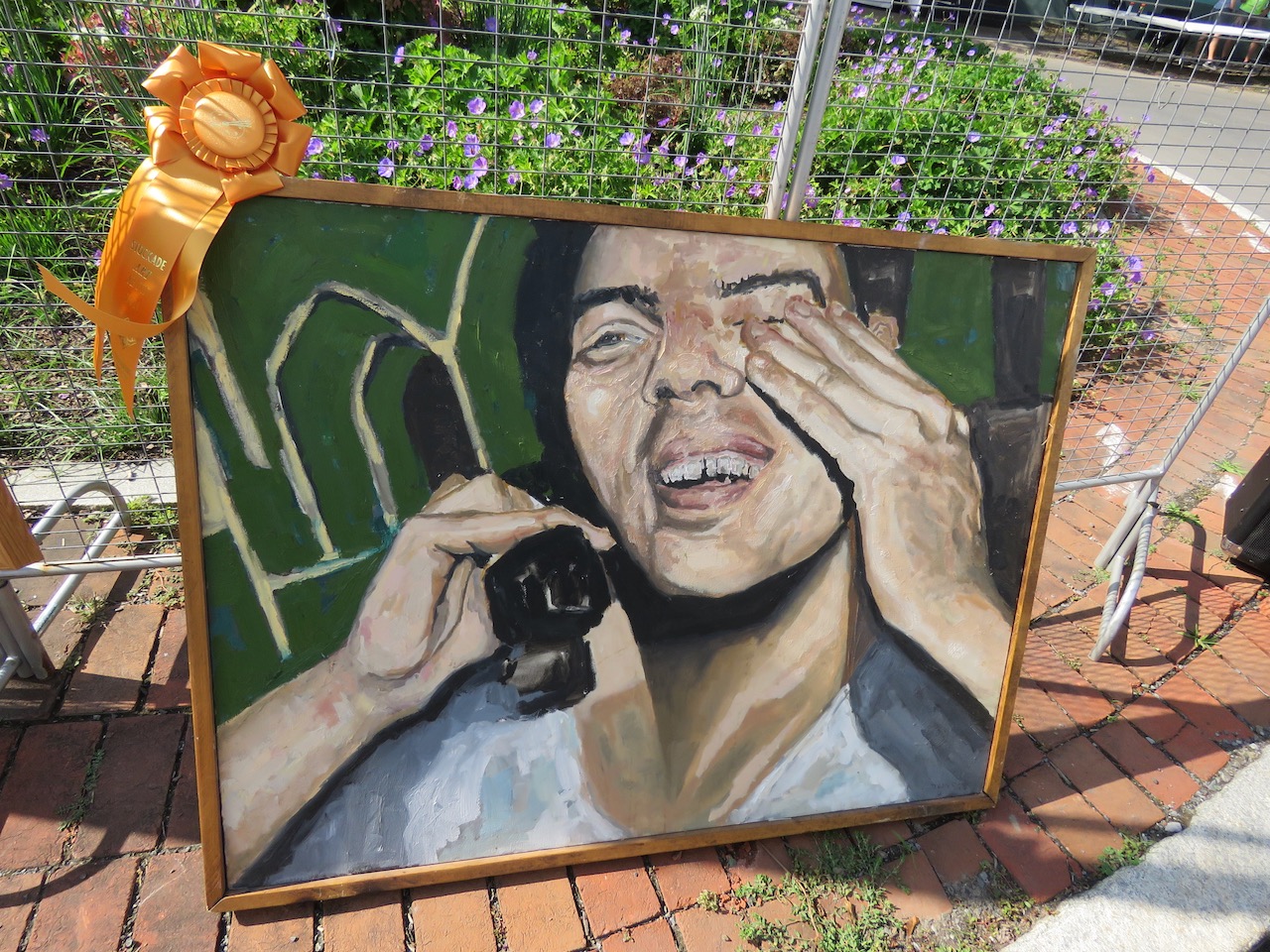 Thanks for your patience. Honorable Mention and Young Artist Award art and artists will be added early Sunday morning, with much more thereafter from the many exhibitions and street scenes.. [on the Right is a piece by Paul Sacchetti]