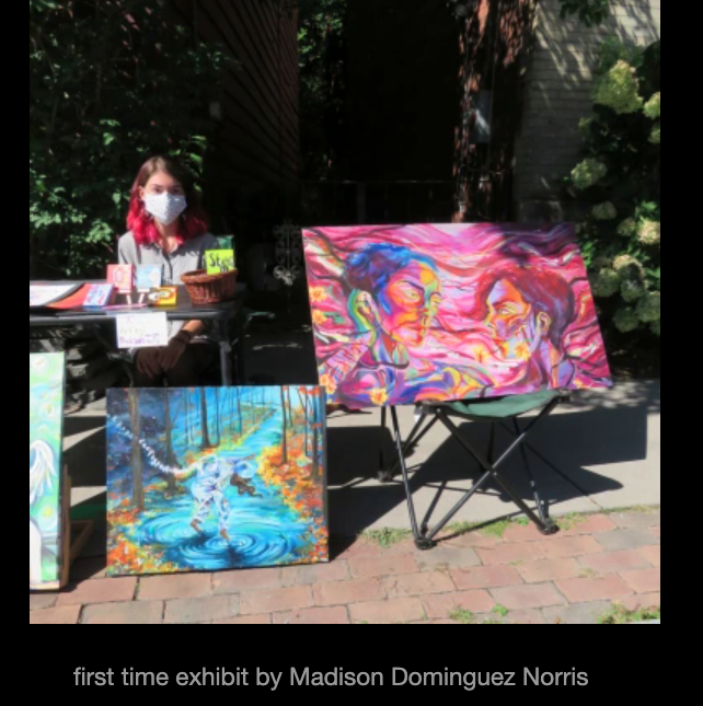 BTW: I was surprised when Madison told me she also exhibited in the 2020 Outdoor Art Show. Looking at last year’s posting, I discovered a very good reason Madison did not look familiar. See image at the right, which hopefully could only have happened in the pandemic year of 2020. Click on it to see the full photo and caption.