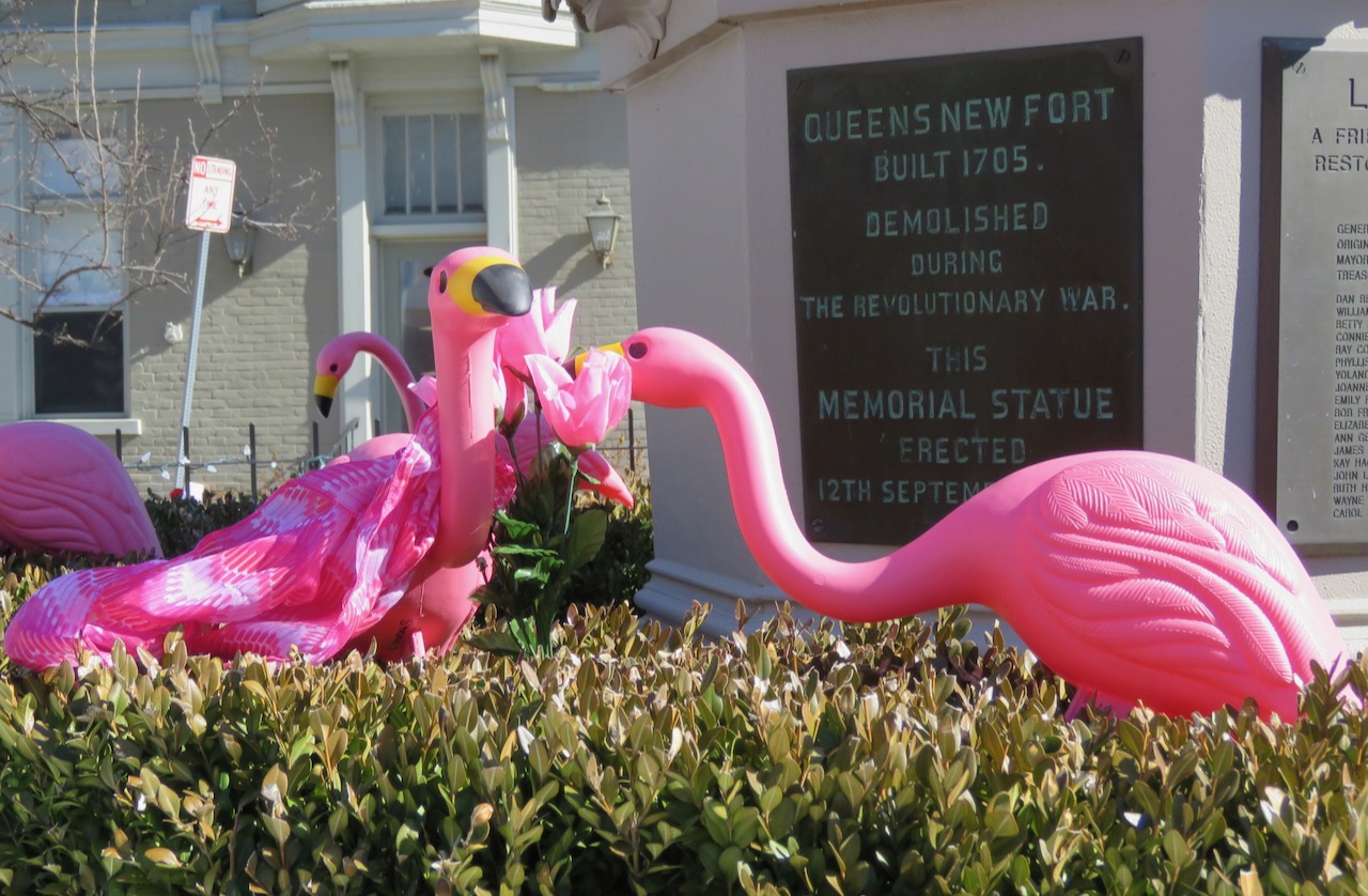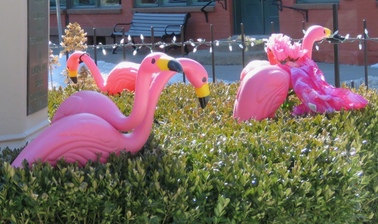 . . thank you for continuing are Stockade Valentine tradition. The Flock of Flamingos will be here until after dark tonight, February 14.