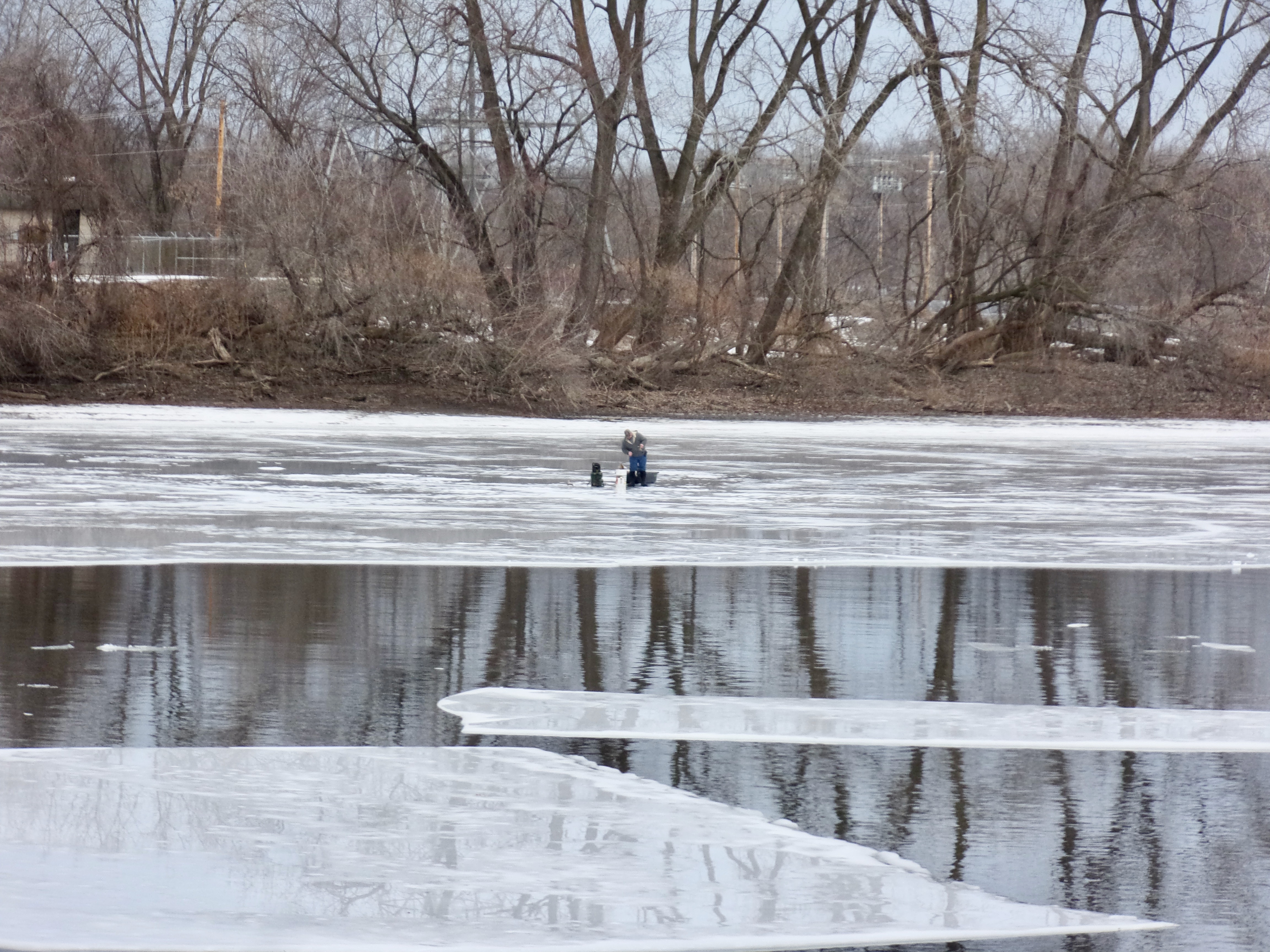 Below: Ice fisherman on the thicker ice along the north (Scotia) bank of the Mohawk River, on Febrary 17.
