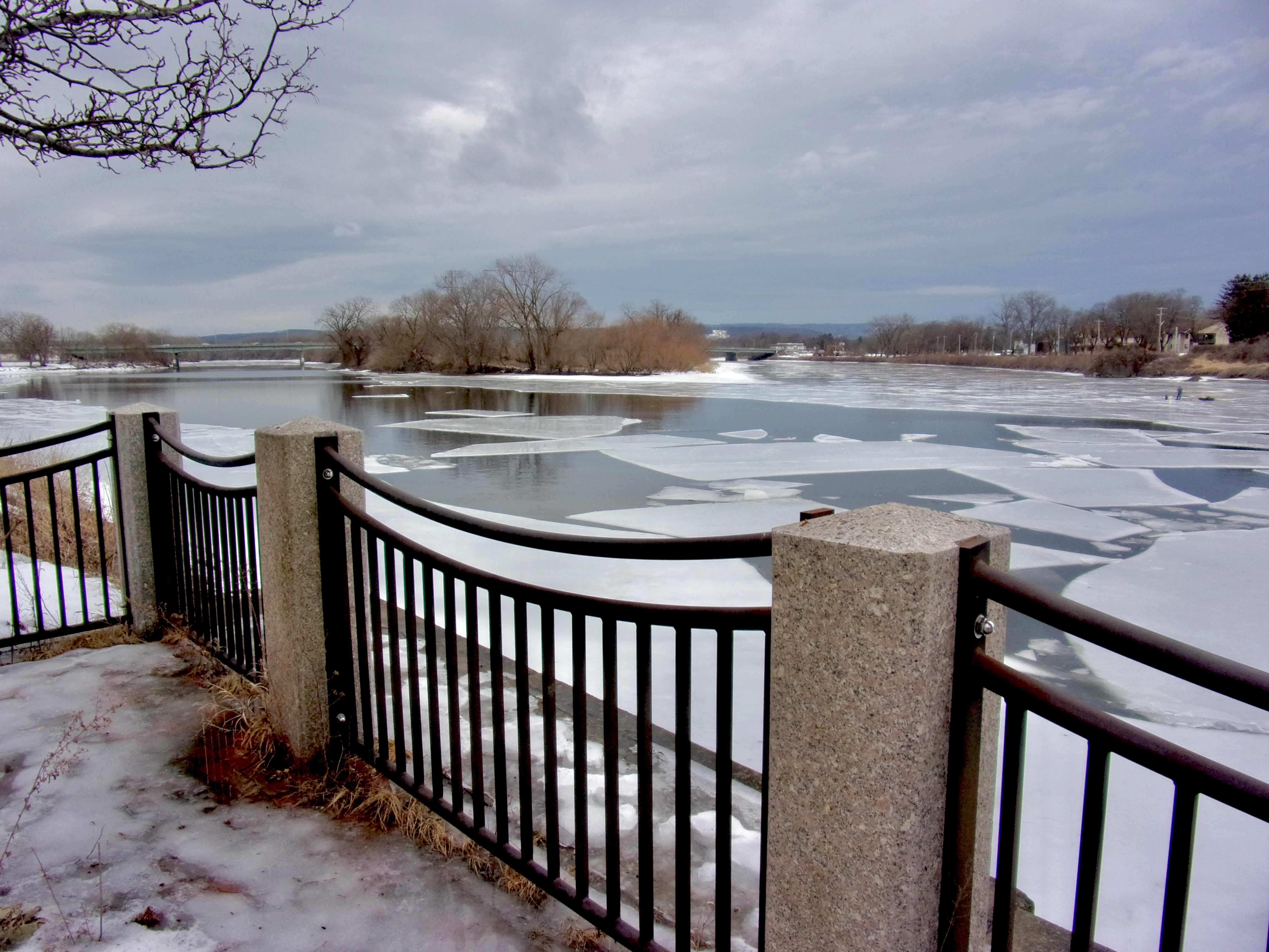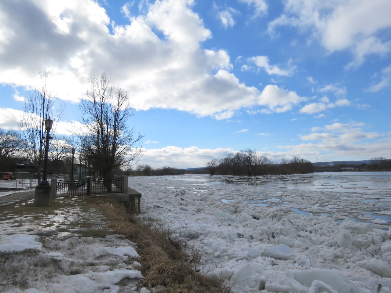 Ice floes and concern over possible jamming and flooding had me outside the past three days observing (quickly) and snapping pictures in a jumble of weather conditions, including unseasonably warm air, blustery winds, and frigid air. The artic blast slowed snow-melting before we had ice jams or flooding along the Schenectady Stockade banks of the Mohawk River.