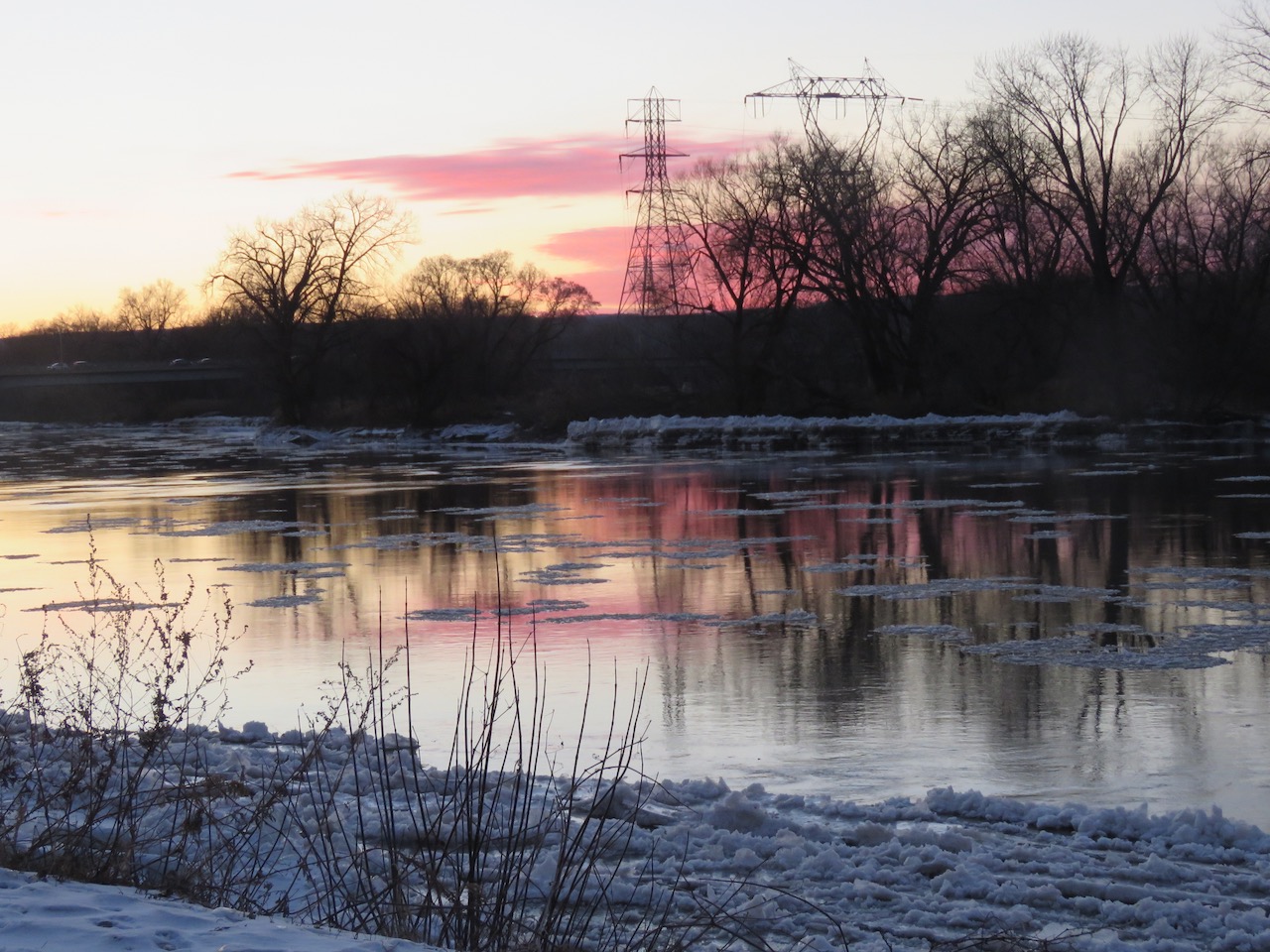 Pulling back on the view of that stretch of the Mohawk, you could also see floes and glows looking west from the end of Washington Avenue toward the Great West Gateway Bridge.