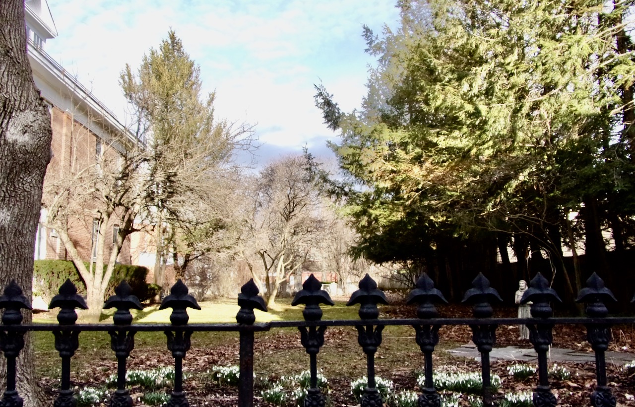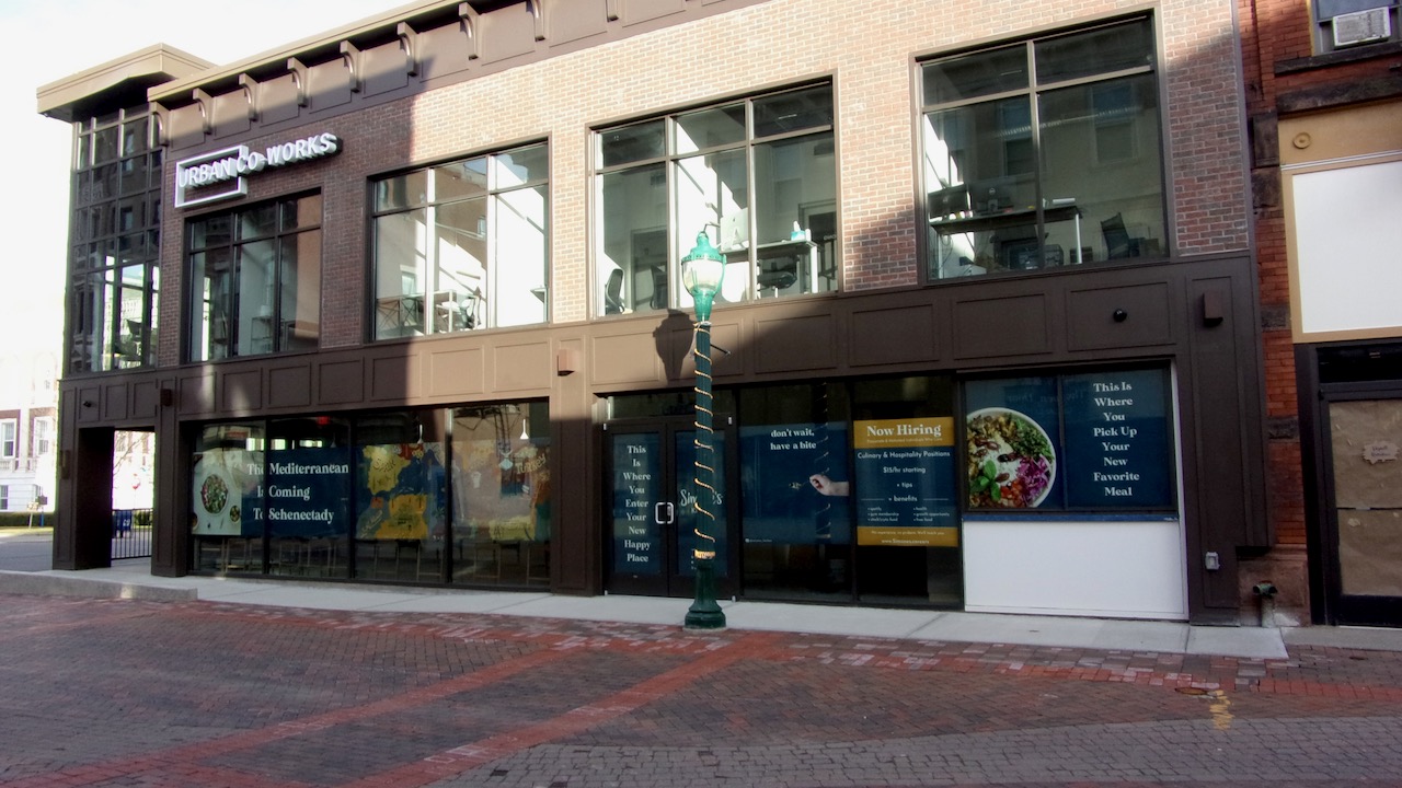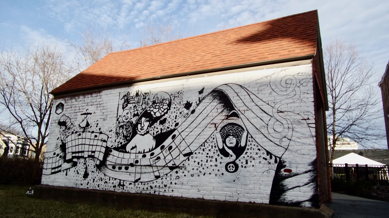 I came home with images of the N. Ferry St. Pump Station, my first sighting of crocuses (along the south lawn fence at St. George’s Church), my discovery of an enjoyable mural behind Schenectady Light Opera Company (near its parking lot and Franklin St.; if you know its history and the artist, please let me know), and a view of City Hall and the new Urban Co-Works from the Jay Street Pedestrian Walkway. The half dozen shots are sprinkled above and below.