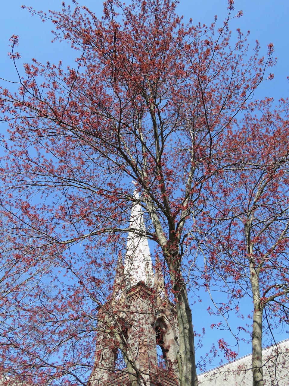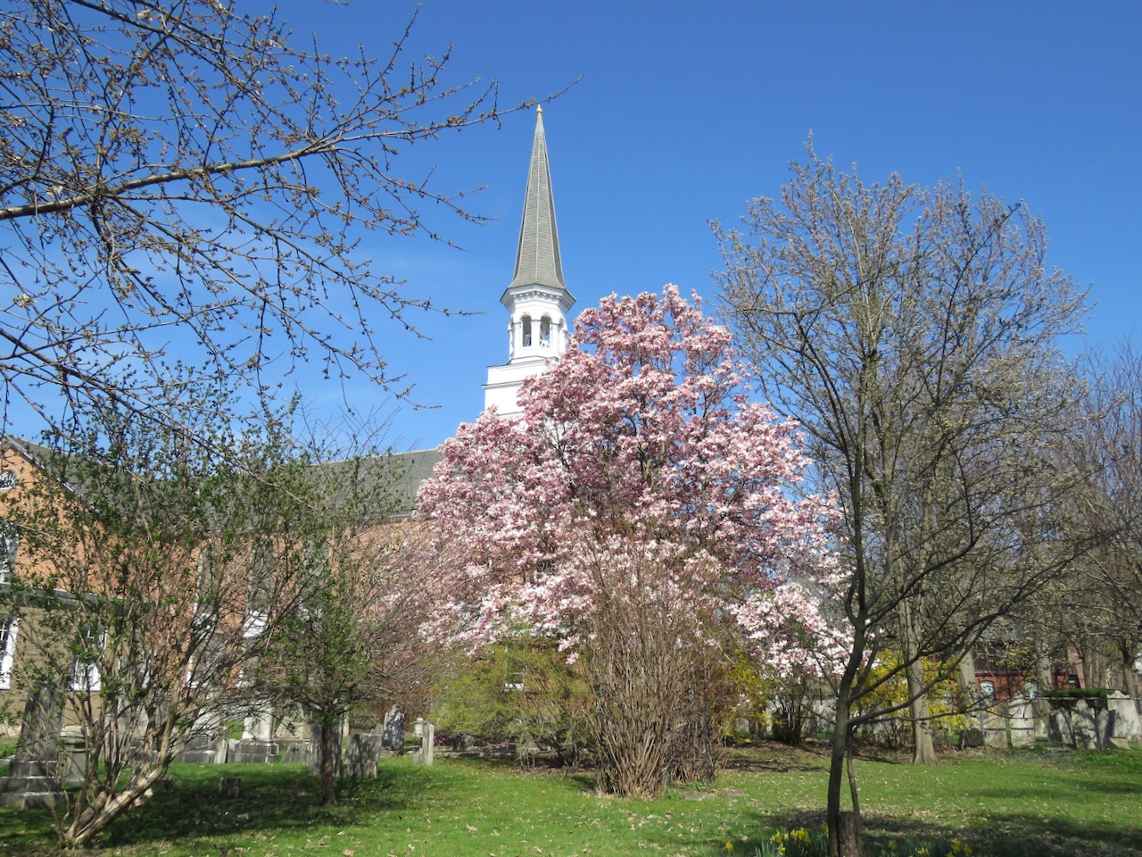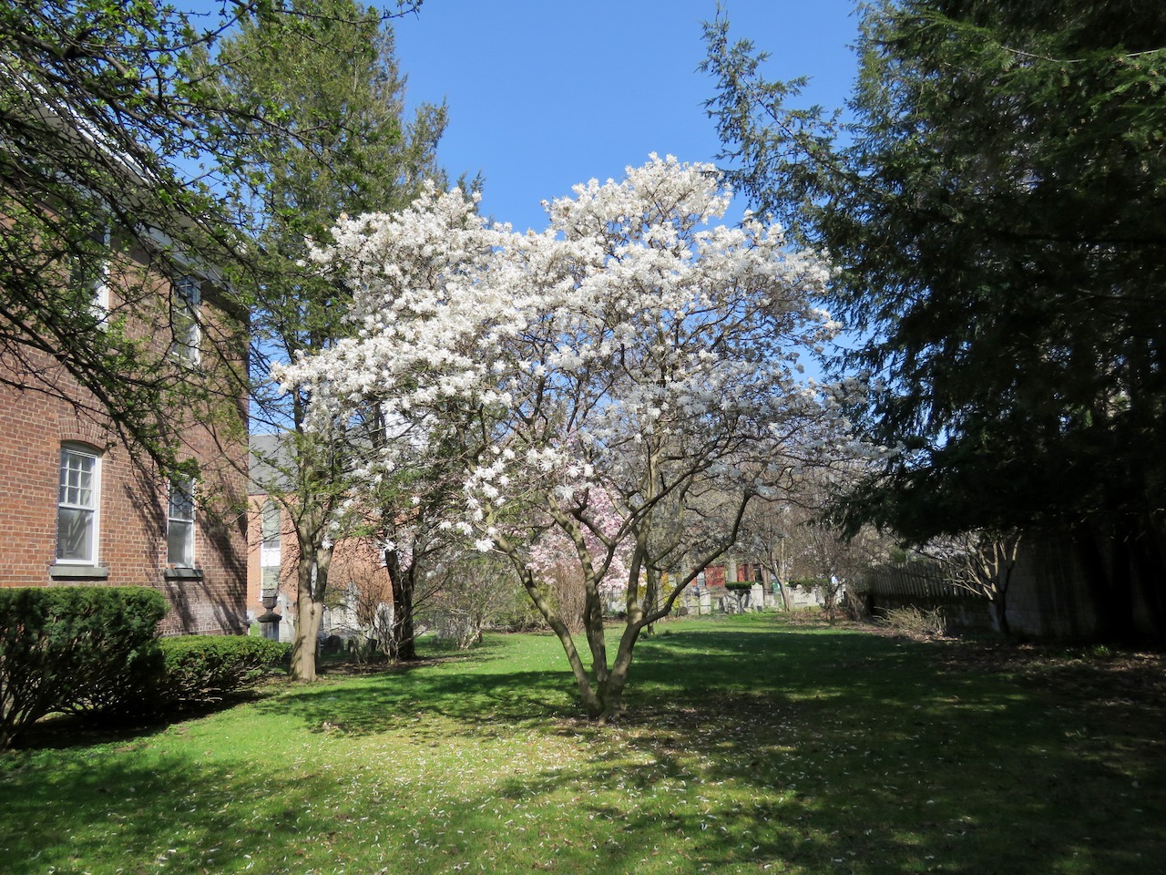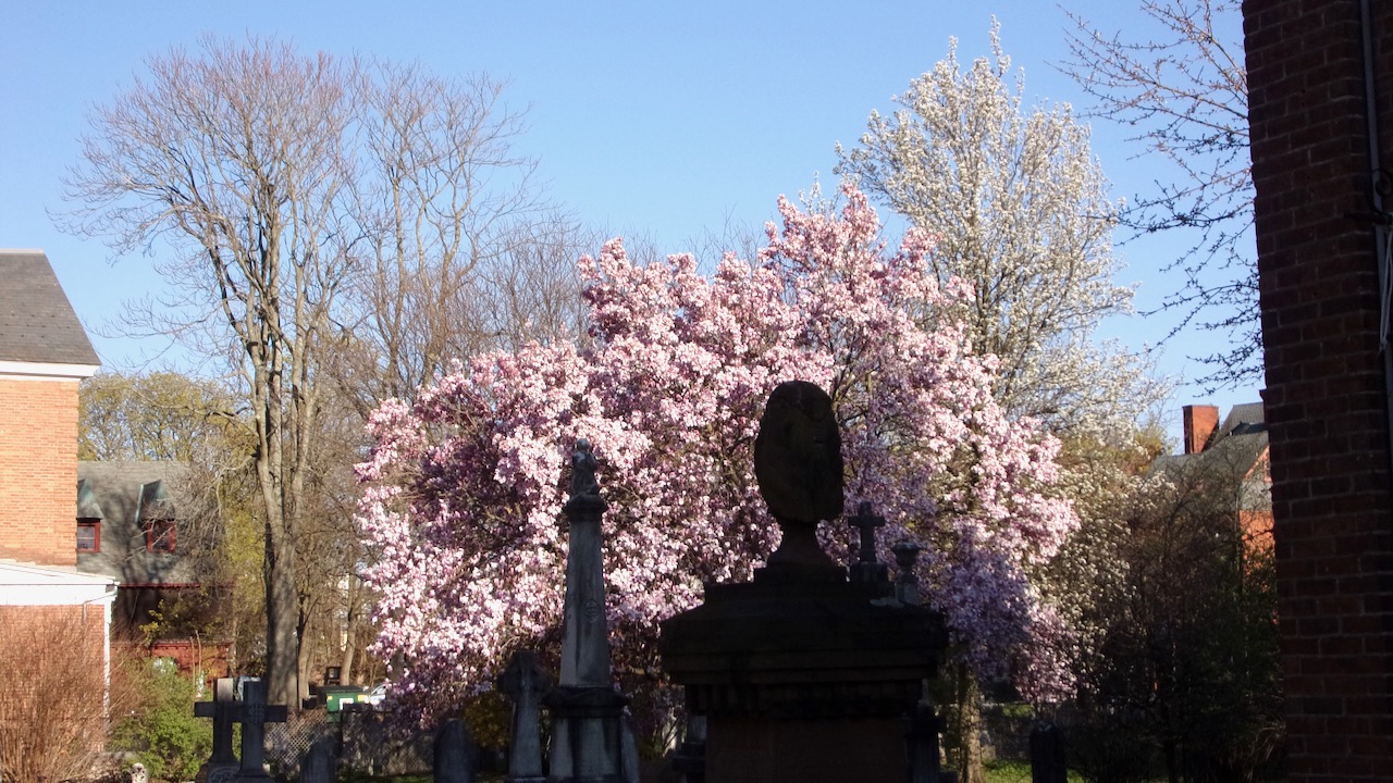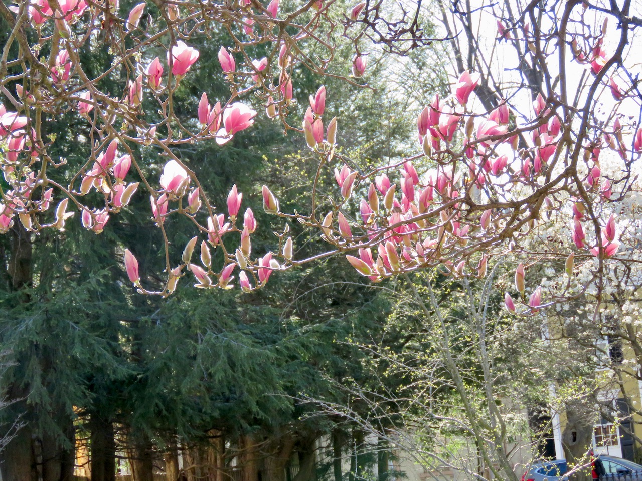 . . magnolia trees bloomed more fully than our cherry trees; above at St. George’s Cemetery . .