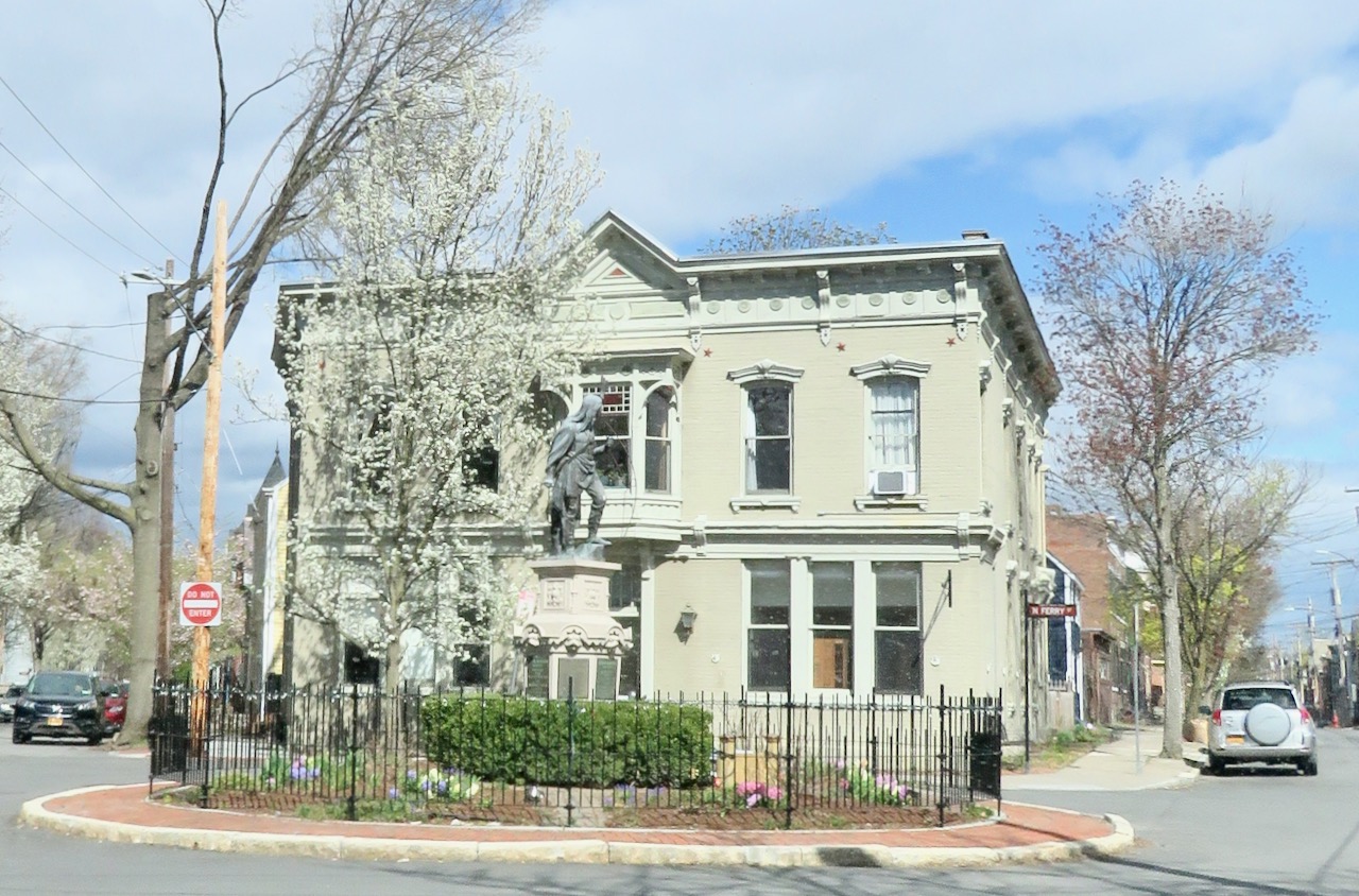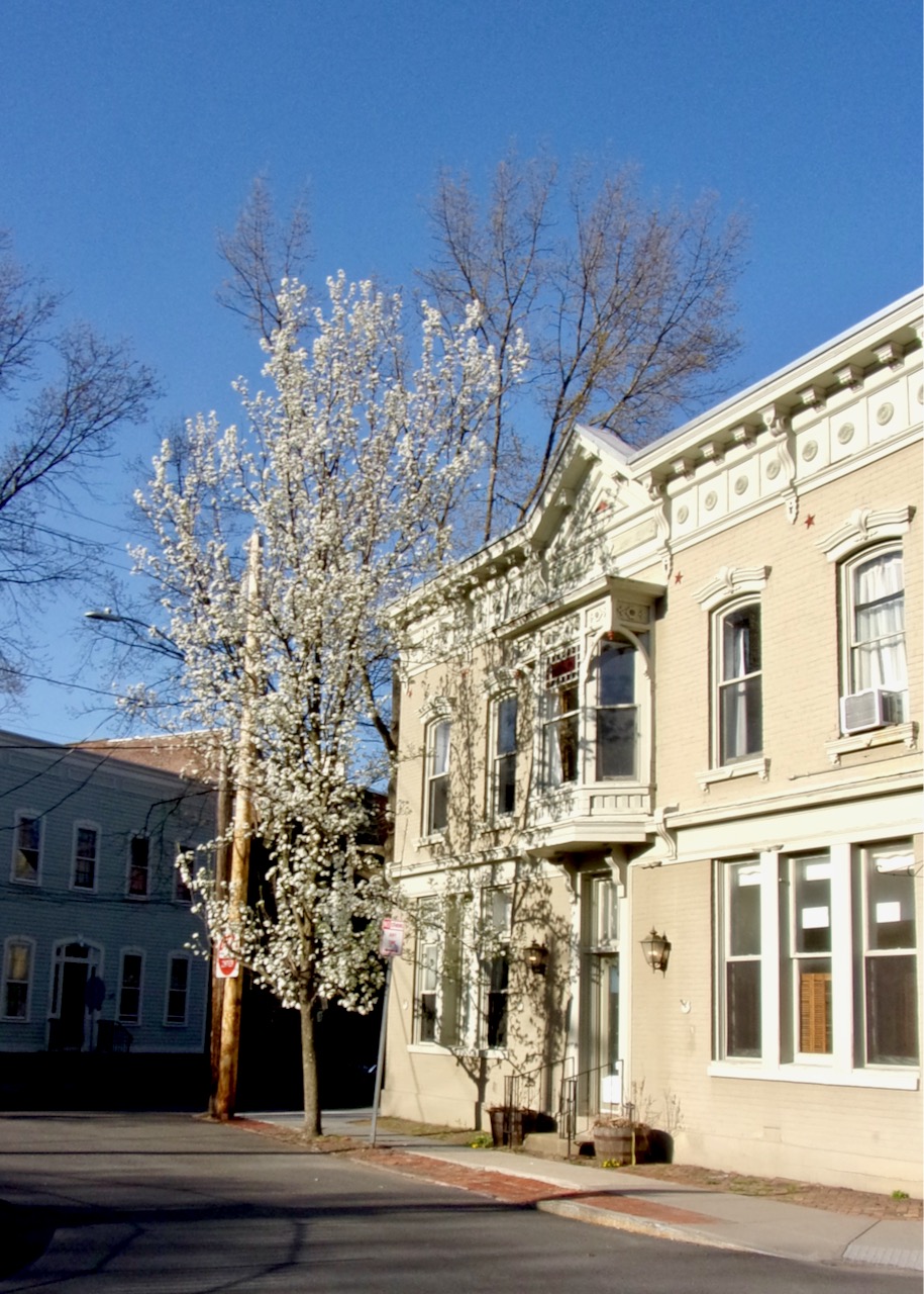 . . and, on April 28, lovely white blossoms were brightening the lot between the 20 North Broadway Tavern and the Swift Building, which developer John Samatulski is helping to bloom again.