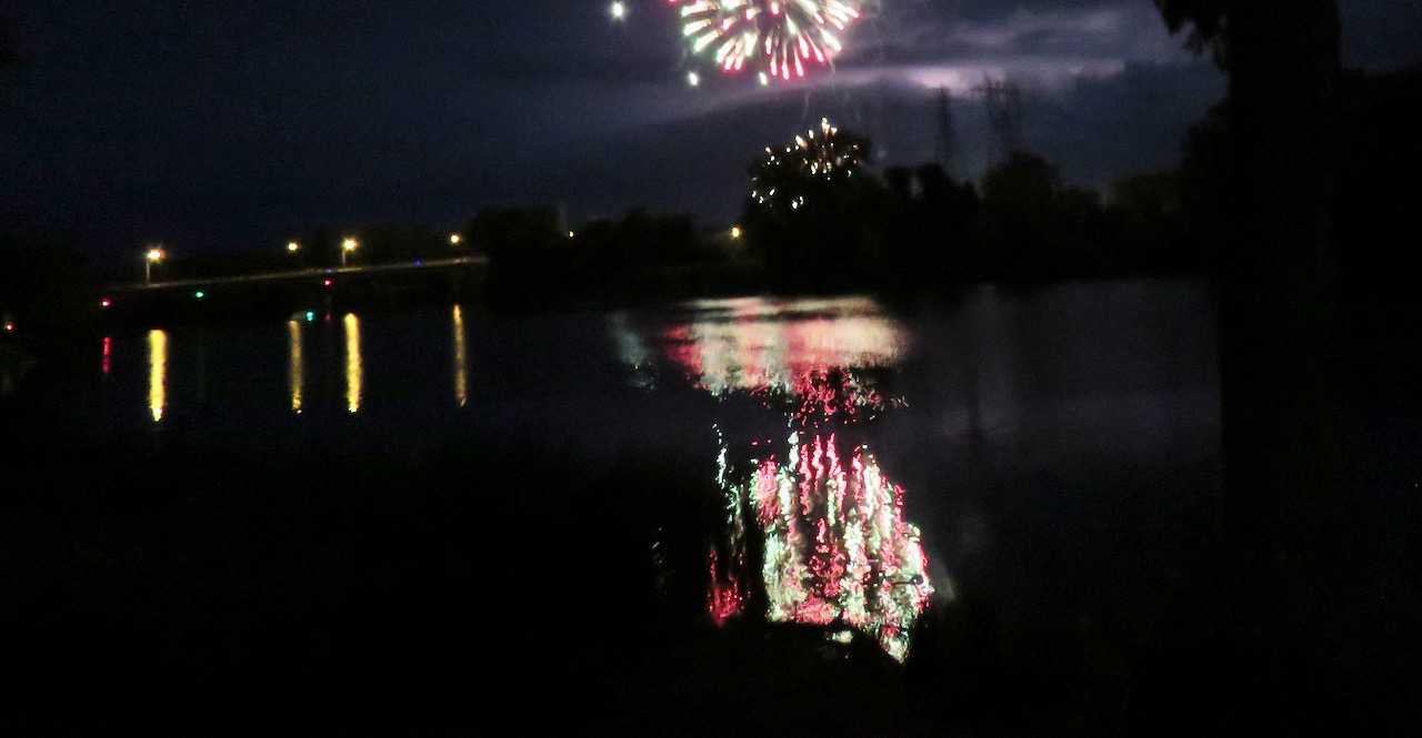 It felt normal and nostalgic last night, as we viewed the Jumpin’ Jack’s Independence fireworks celebration from across the Mohawk River along the rear of Washington Ave. and Cucumber Alley. The two-year Pandemic Pause was a mere memory. As has become my tradition over the years, I’m embracing the results of shaky hands and premature shutter clicking for the beautiful, surprising serenpidity of colors and shapes they produced, in the sky and reflected on the River.