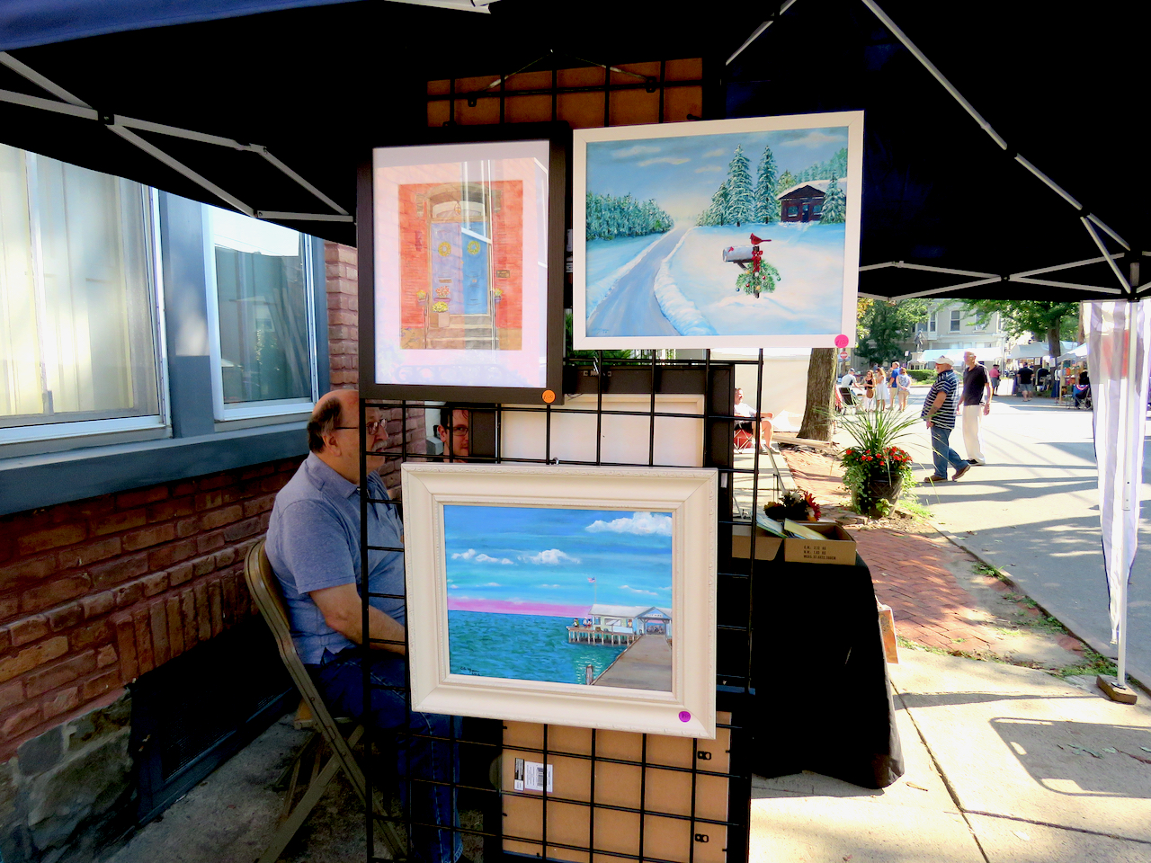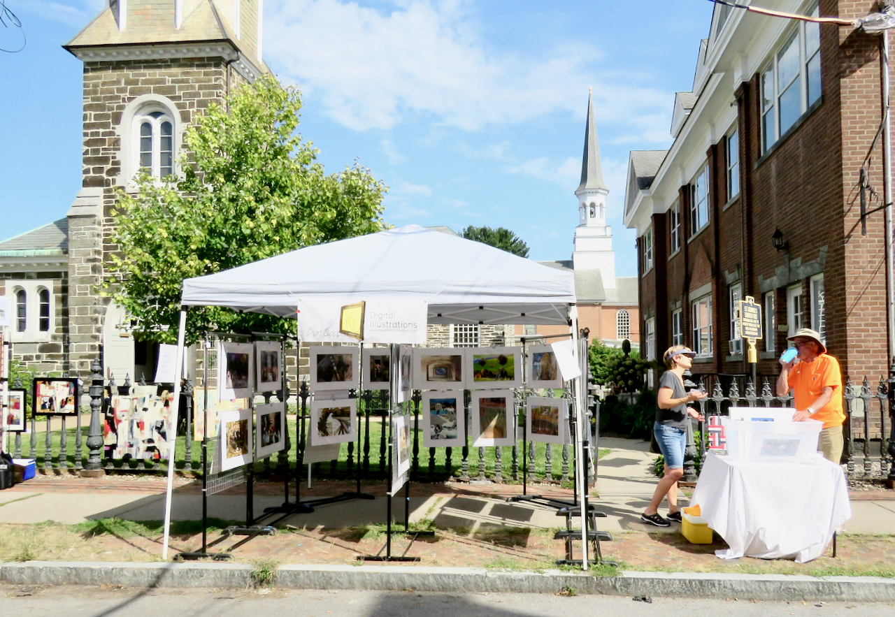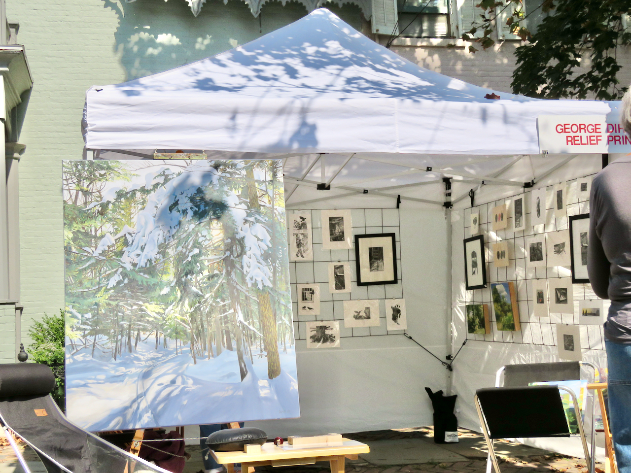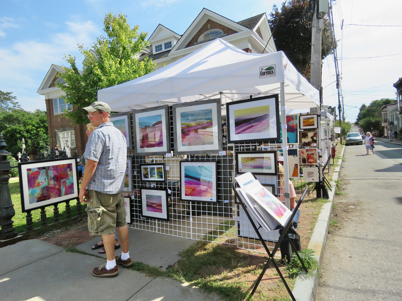 MARK POHL got to the Show early enough to grab the coveted spot right under the St. George’s steeple, and as a bonus got a blue sky and gauzy clouds. [Maybe I’m just projecting, ’cause I love photos with that steeple and cloudy blue skies.] His good fortune continued, with an Honorble Mention for his digital painting “October Sunday.”