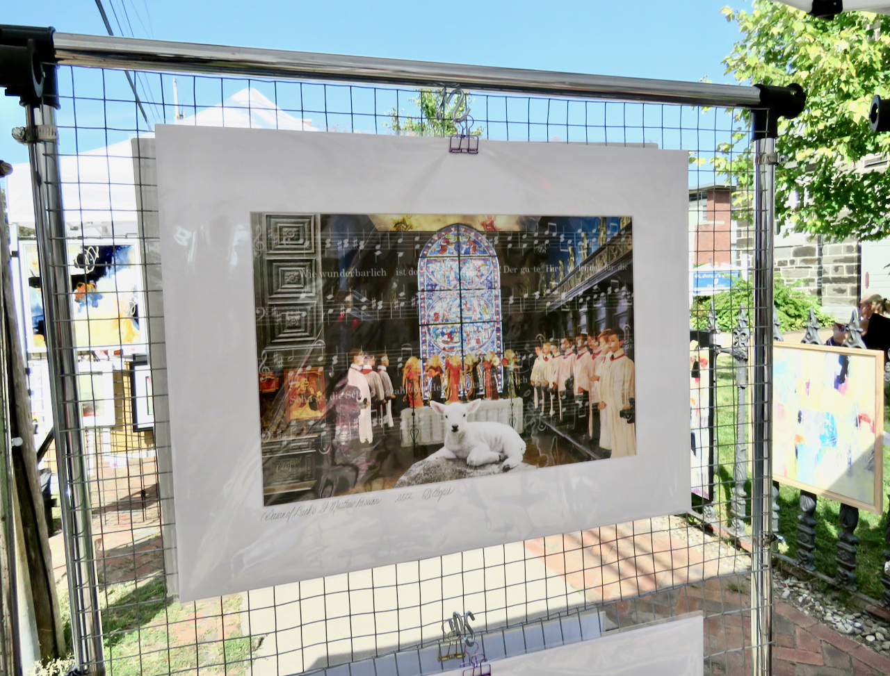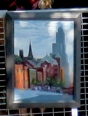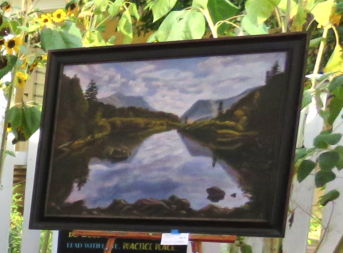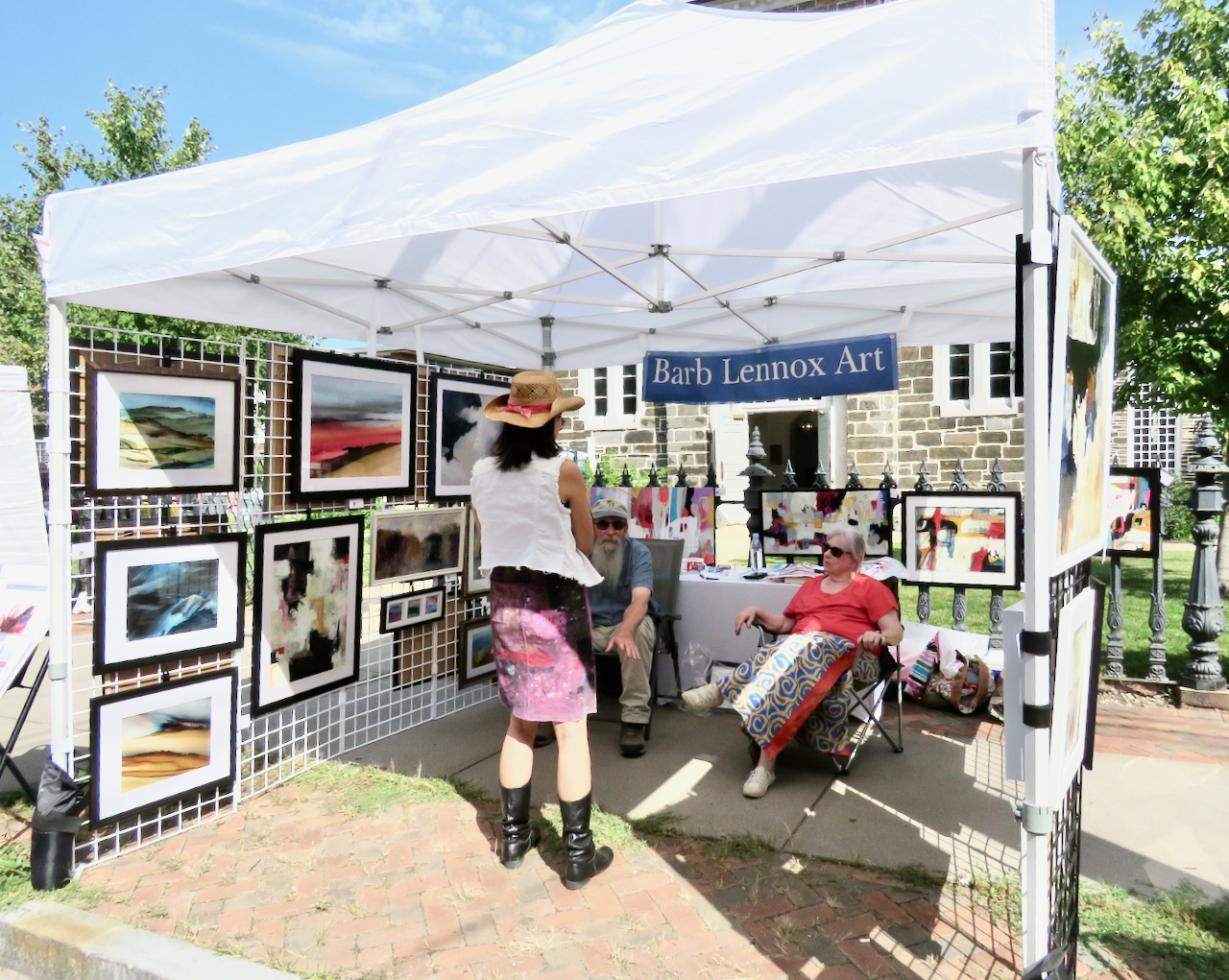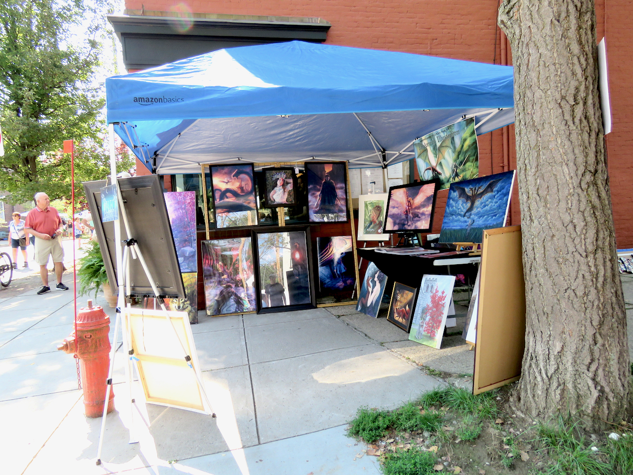 MARK POHL got to the Show early enough to grab the coveted spot right under the St. George’s steeple, and as a bonus got a blue sky and gauzy clouds. [Maybe I’m just projecting, ’cause I love photos with that steeple and cloudy blue skies.] His good fortune continued, with an Honorble Mention for his digital painting “October Sunday.”