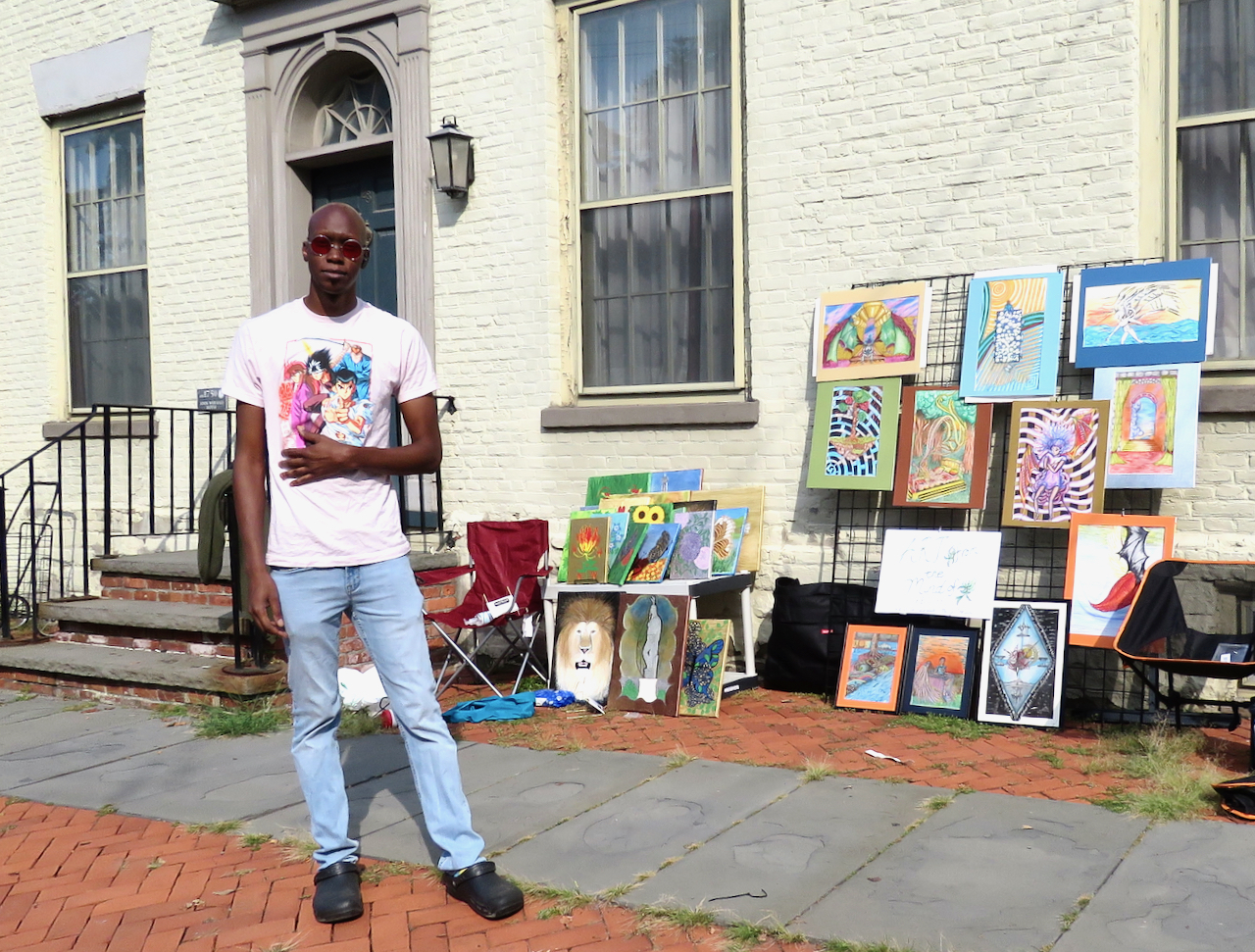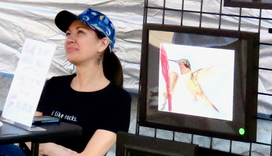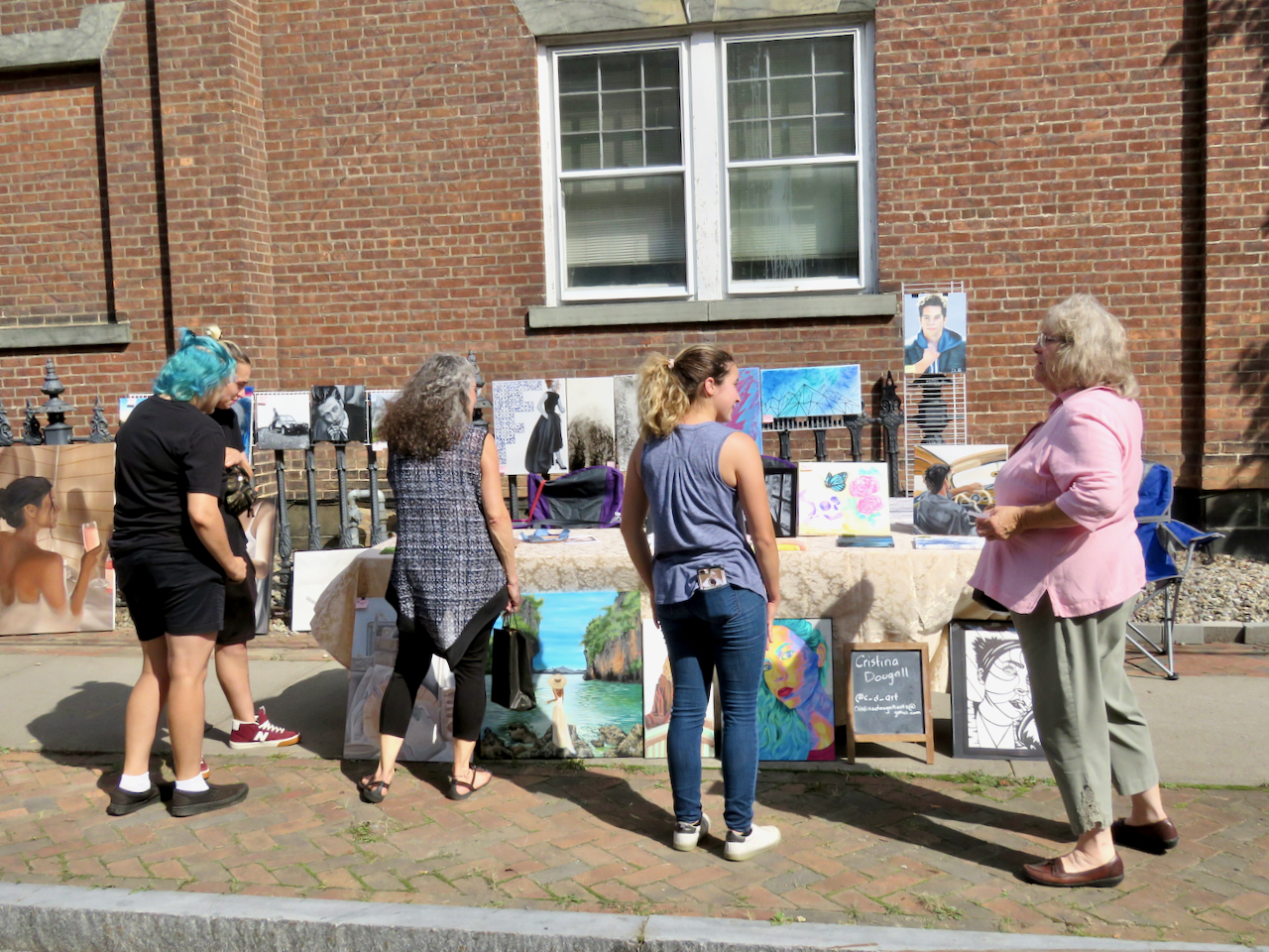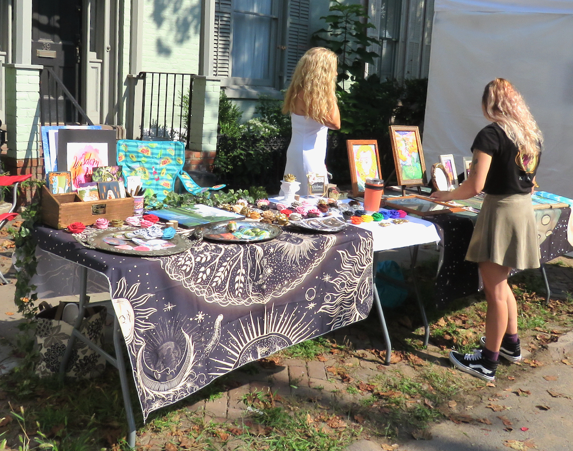 CINDY SINOR, a first-time exhibitor, had her tidy display on the southside corner of Green Street. It was clear that Cindy “likes rocks”, expecially smooth ones that she can paint. Stroll down her Instagram homepage to see her extensive, palm-size, portraiture painted rock collection, and much more.