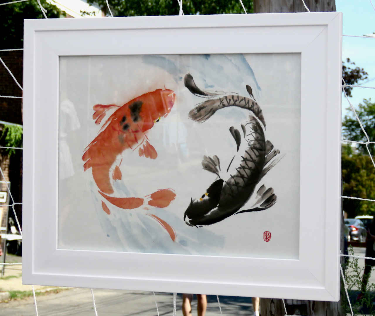 Unlike his spouse, ANPING LIU (above at his display) again brought Ink Brush Paintings to the Stockade Outdoor Art Show. Here are three examples: