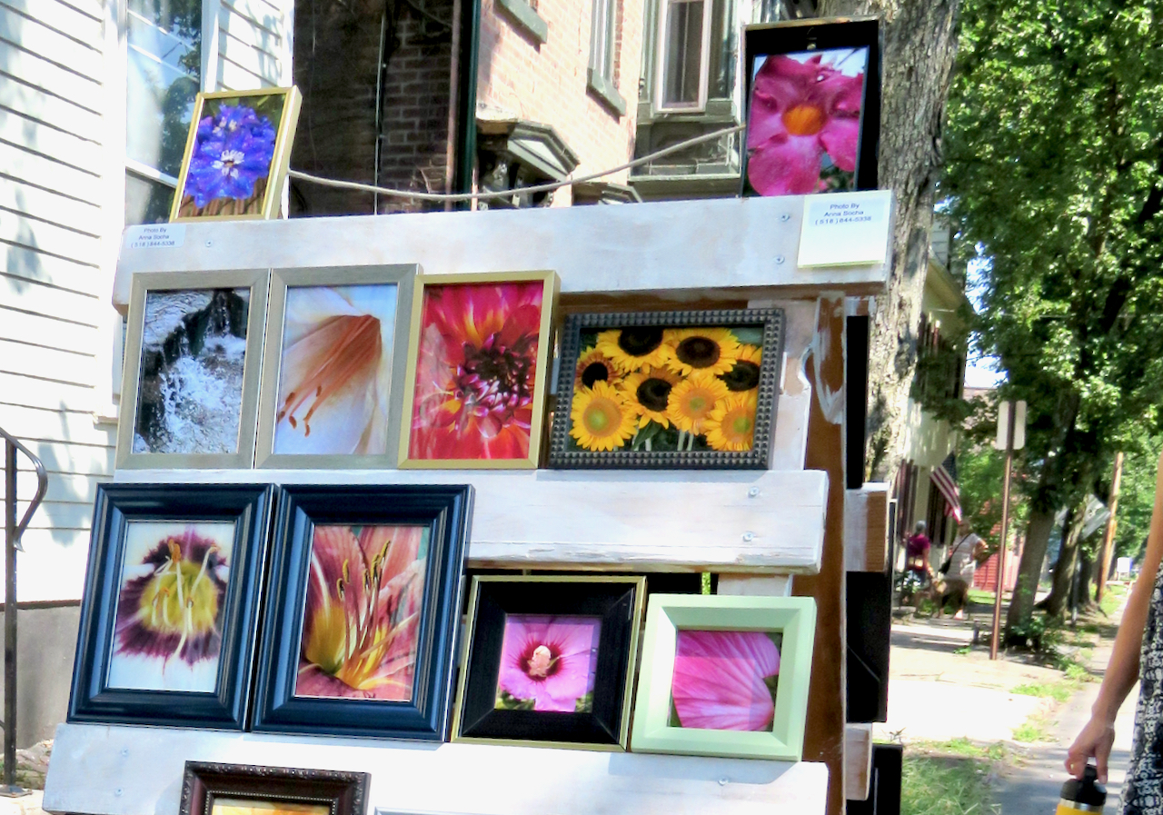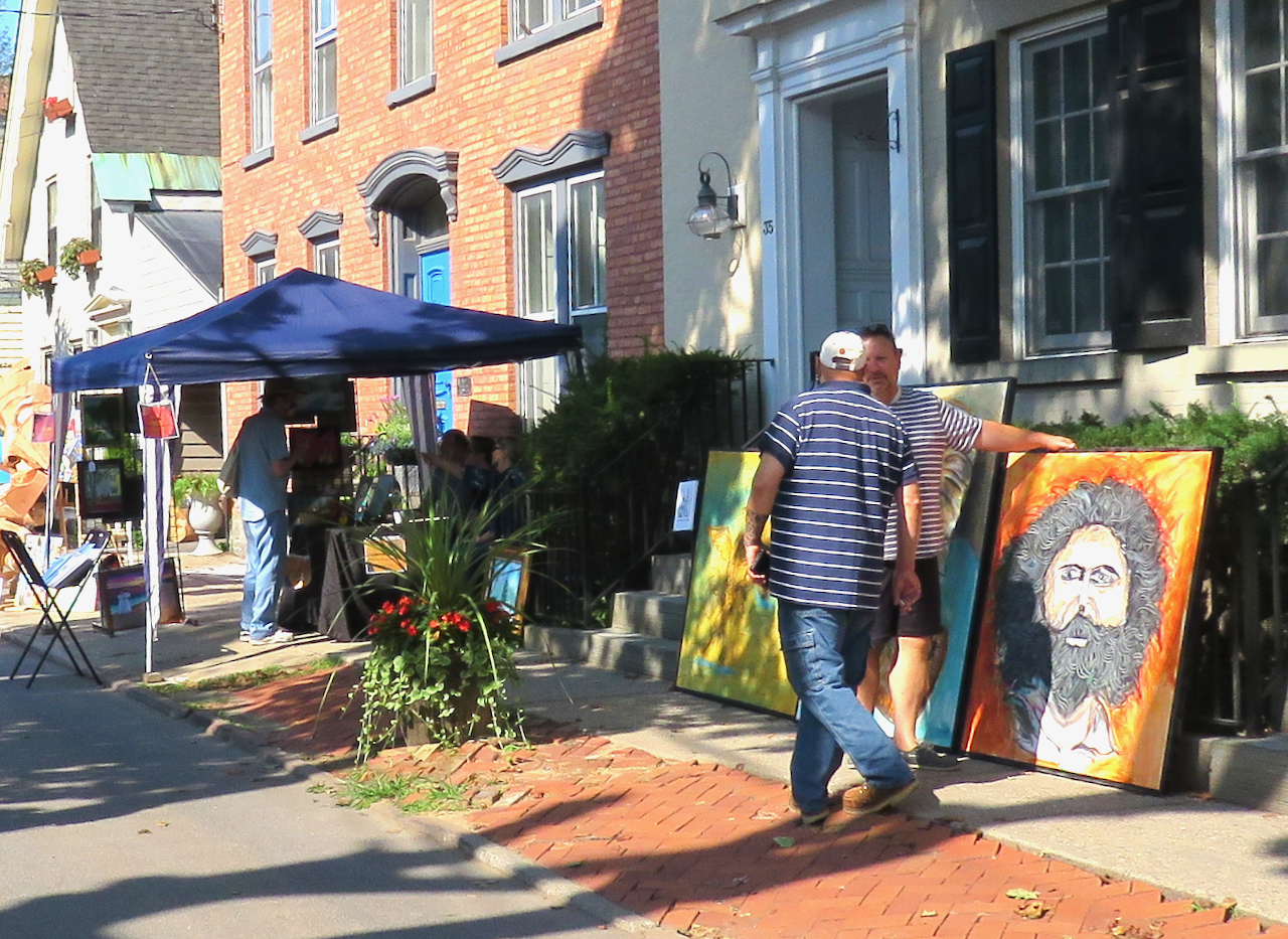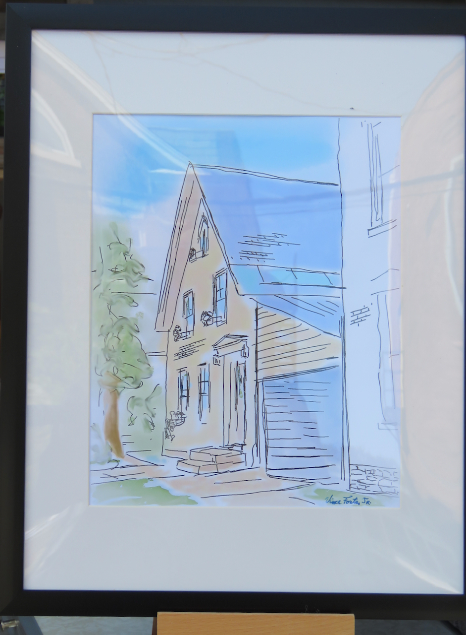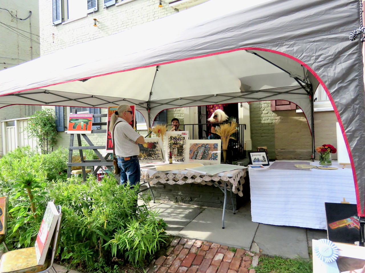 The Destefano Exhibit was back at the southeast corner of N. Ferry and Green Streets this year (above photo, Joanne in green top). My brain was too weary (after about 4 hours of nonstop snapping and schmoozing) to say how much I liked their straw hats when they complimented mine. Well, I do like their straw hats. And, Joanne’s watercolors, too.