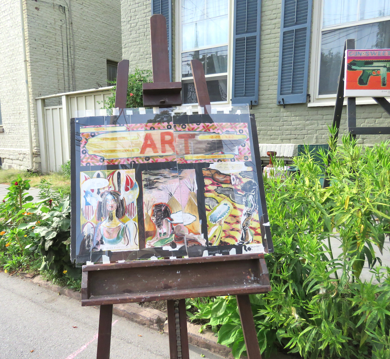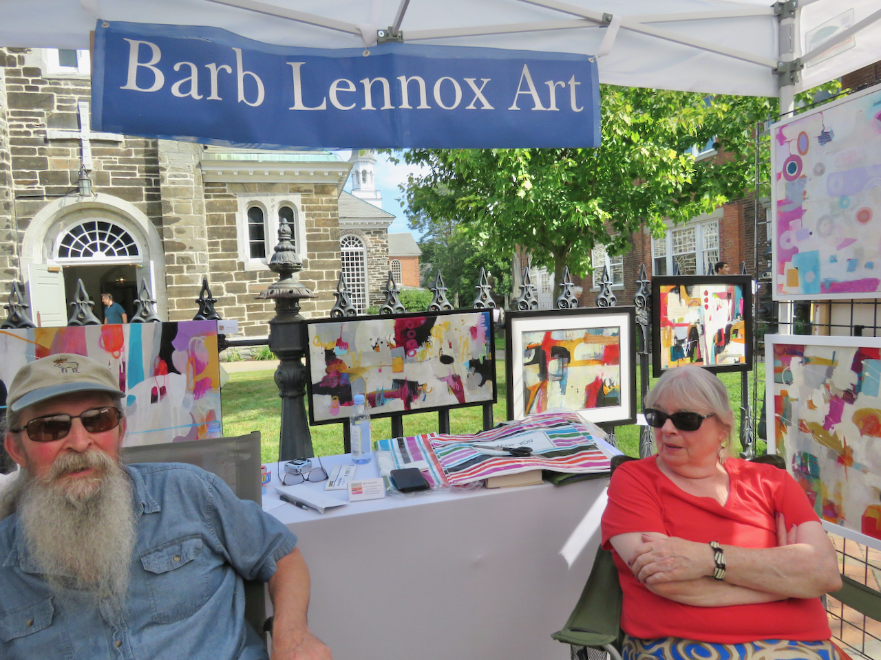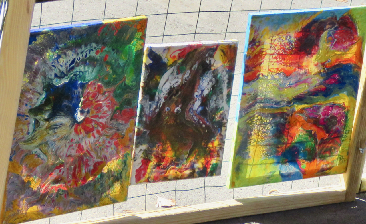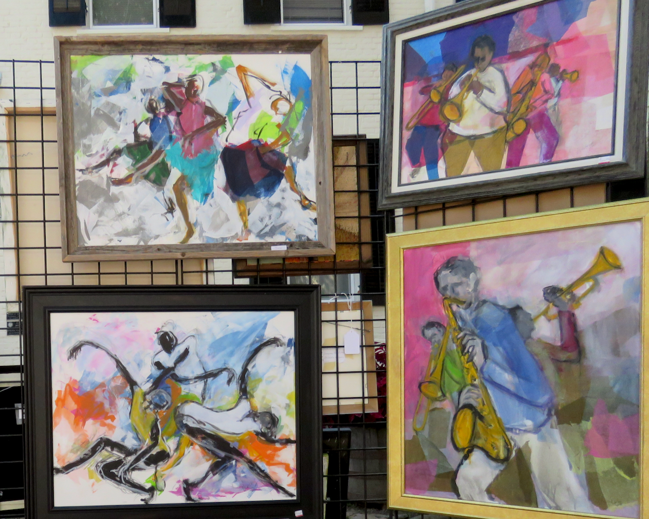 At first, on the sidewalk, I mentioned that Joanne had not brought her large paintings as in prior years. Well, this was the scene when I stepped out into the street: