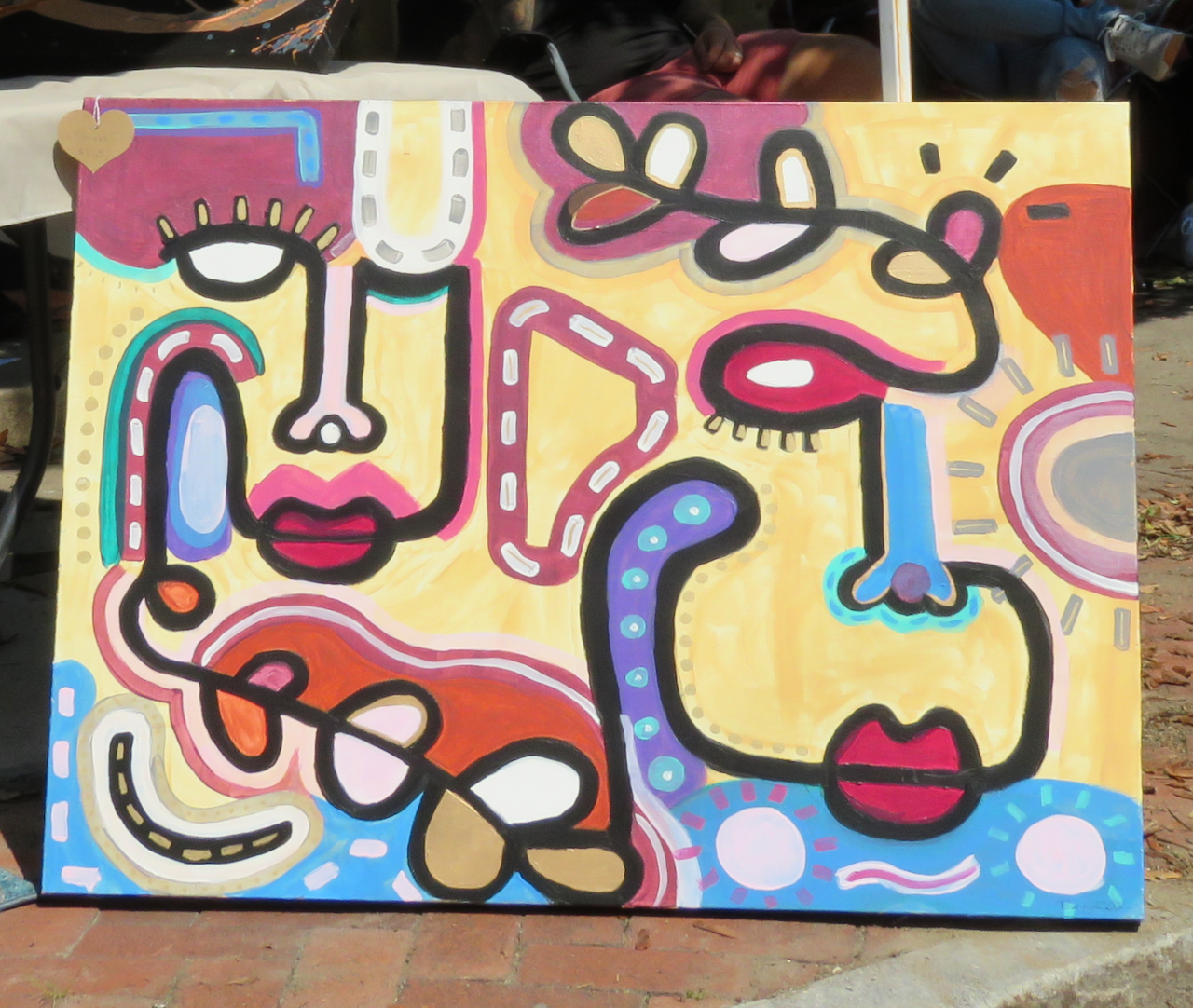 The last exhibit I reached before rushing back to Lawrence Circle was CRISTINA DOUGALL’s display. I snapped one photo. There were many styles and subjects, but I did not have a chance to linger or chat with Cristina. It was only this evening (Sept. 15) that I discovered Cristina was the 1st Place winner of the Young Artist award in 2018. Checking my 2018 post on the Art Show, I recalled how much I was impressed with her work, chatted with her and her exhibit-mate for quite awhile, and wrote that I hoped she’d be back. It’s good to see Cristina still loves painting and is honing her skills. Next time she’s at SOAS, I hope to have a conversation again with Cristina.