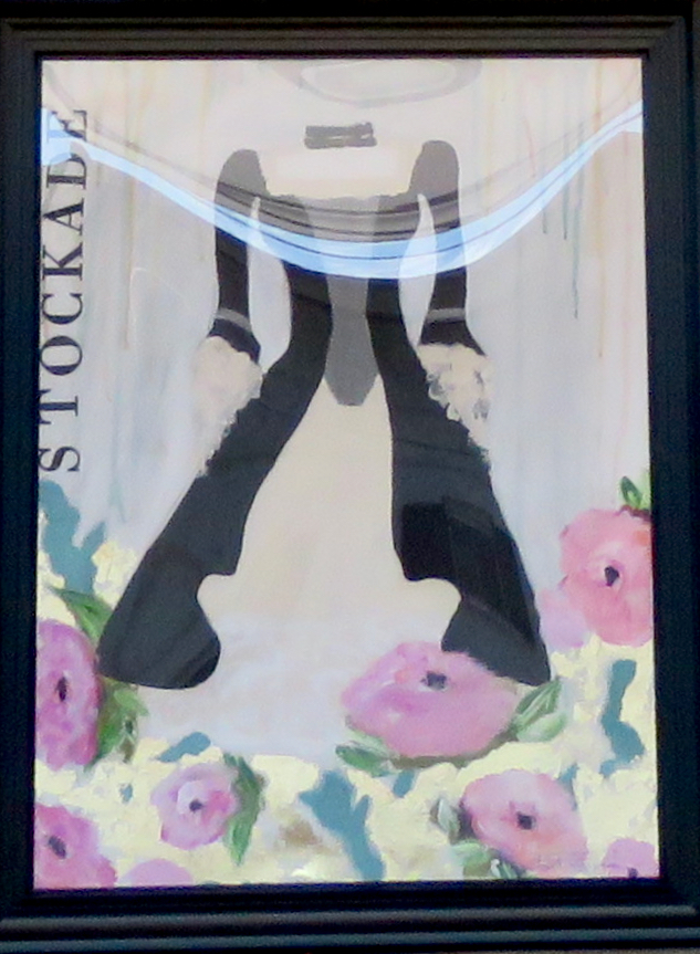You met BRITNEY PRIME (a/k/a Britney Knudsen), and her joyous balloon painting, near the top of this posting, as the People’s Choice winner. A first-time exhibitor this year, her Stockade painting on the left is a refreshingly different depiction of our historic district.