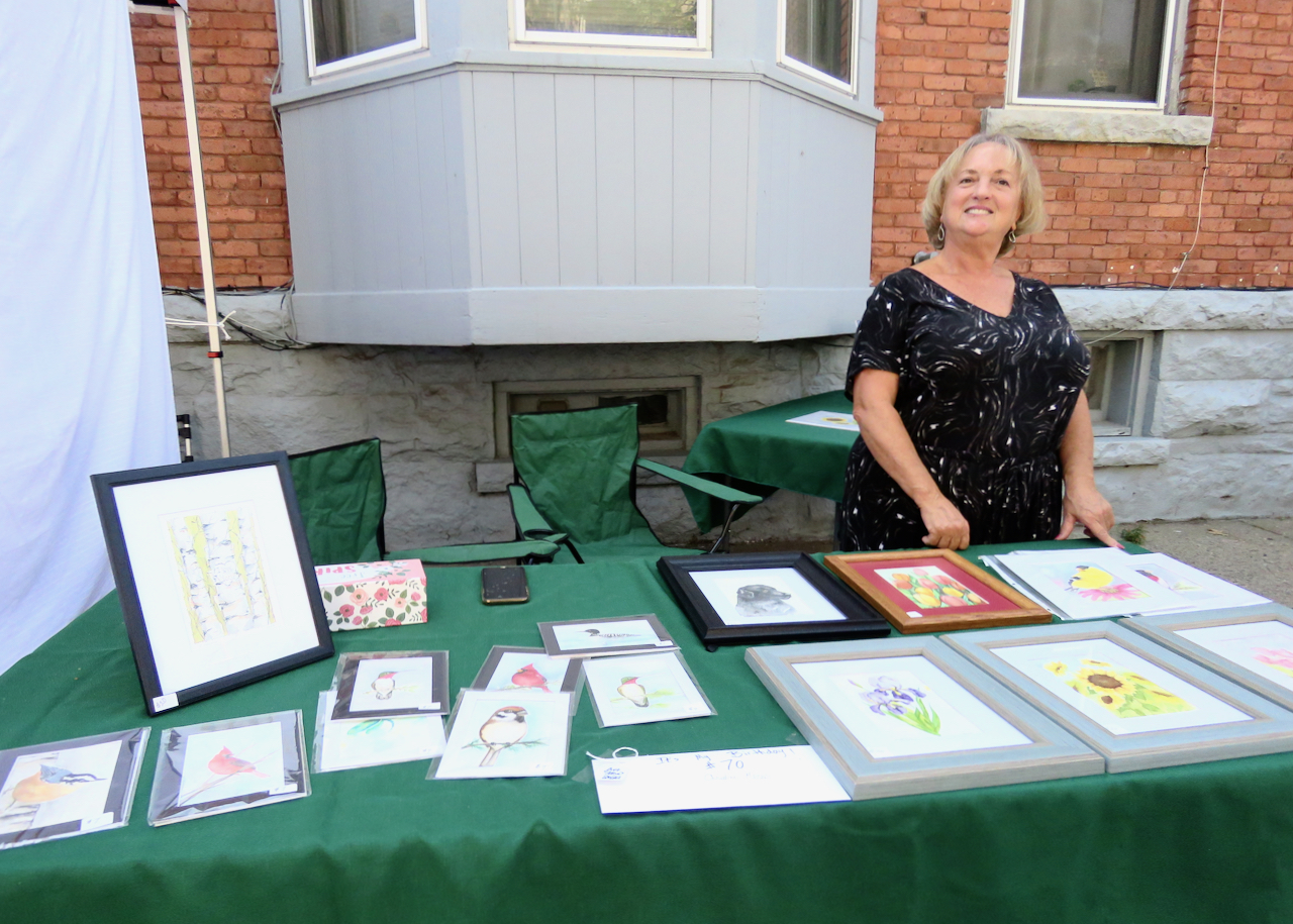 LINDA STARR has spread an extensive exhibit in front of 29 Front Street the past couple of years. The sun glowing in the foliage behind her helps make the display special.