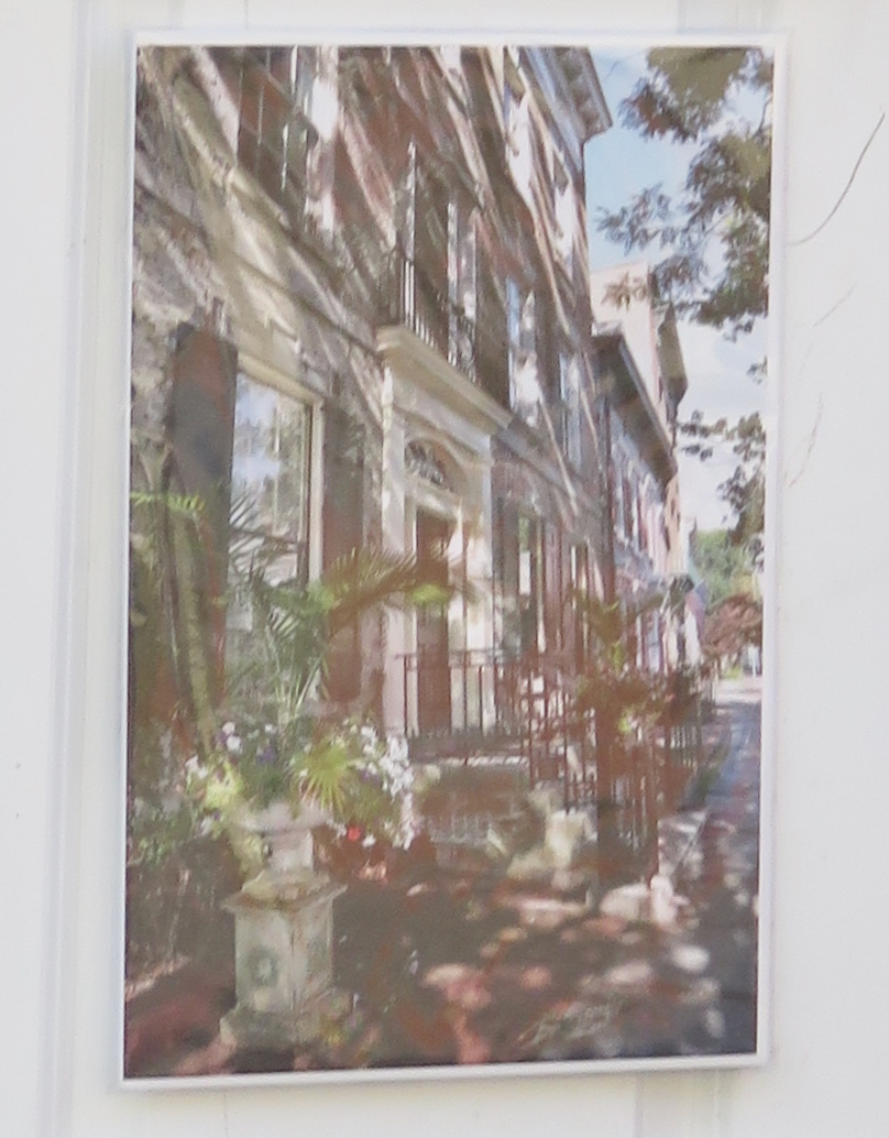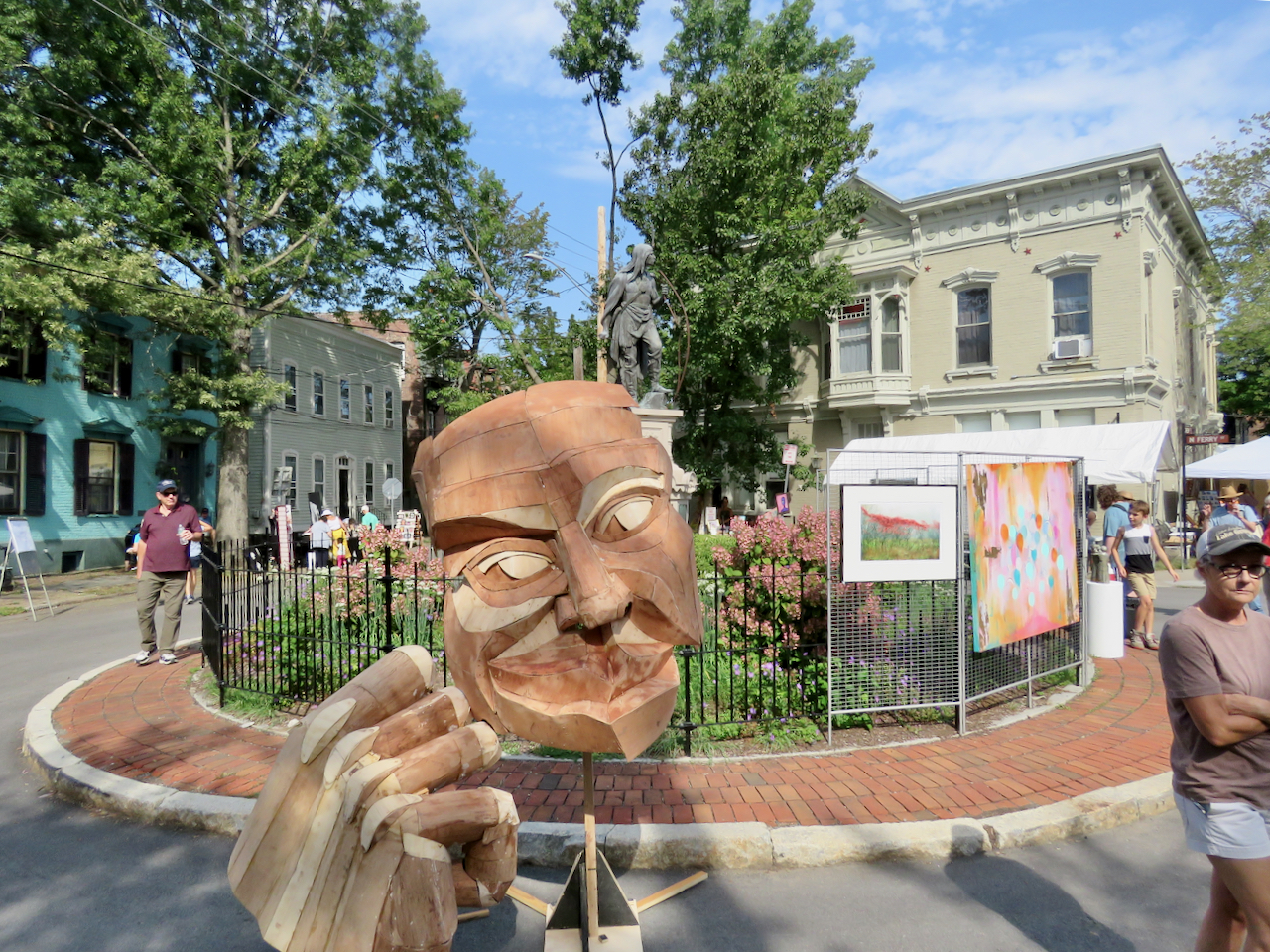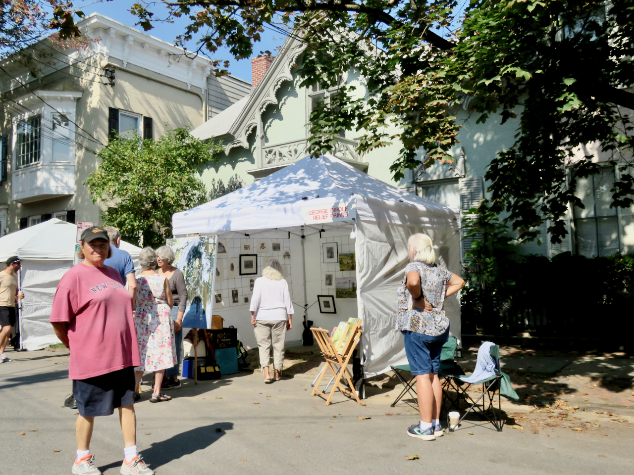 Crossing back to the north side of Front Street from the Watrous display, I passed a tent that deserved more attention than I gave it. Had i known GEORGE DIROLF was going to win the First in Show ribbon at the awards ceremony a couple hours later (for this piece), I would have come home with more than just two shots from the outside of the tent. I’m sorry, George, but at least I know now you don’t need my help for success at the Stockade Outdoor Art Show. I’m glad the location of the Dirolf exhibit gave me the urge to take one more photo of one of my favorite Stockade homes, 39 Front Street, which is also a favorite backdrop for artists: